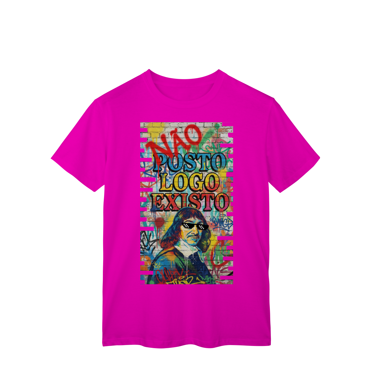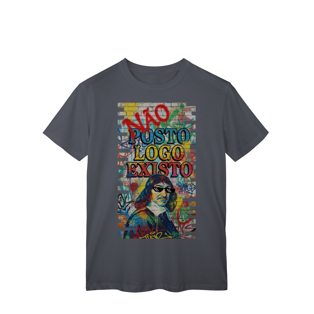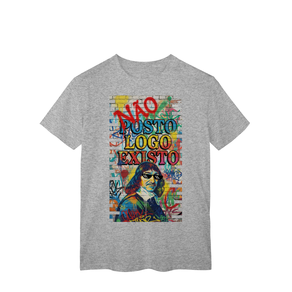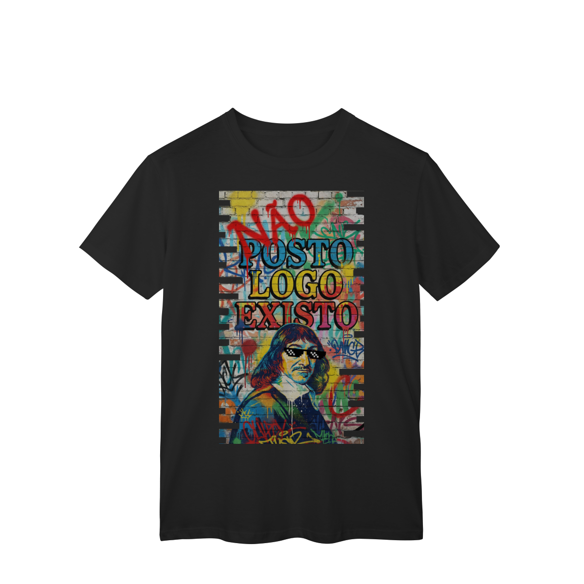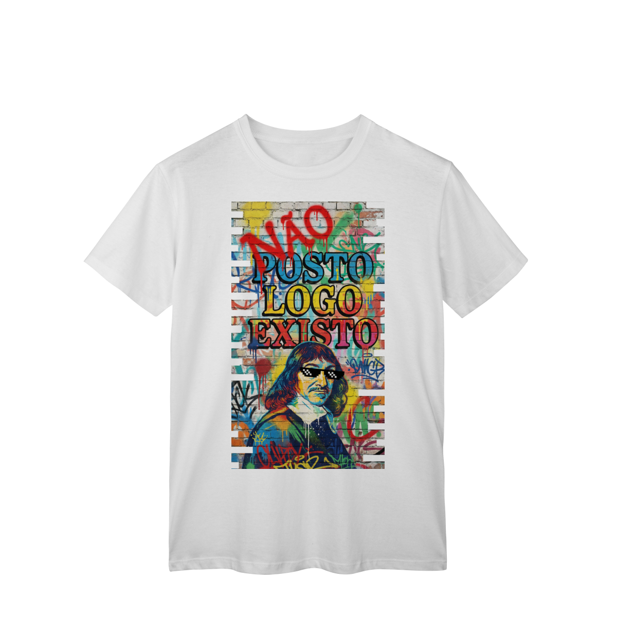 “NÃO POSTO, LOGO EXISTO.” Esta estampa é uma provocação para tempos em que a validação virou métrica e o silêncio virou resistência. Inspirada em Descartes, essa estampa questiona a ideia de que existir depende de ser visto — e lembra que presença não se mede em likes. Vestir essa frase é escolher consciência em um mundo que confunde exposição com identidade.