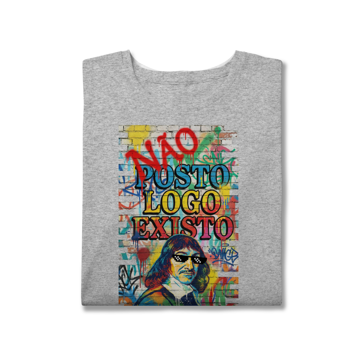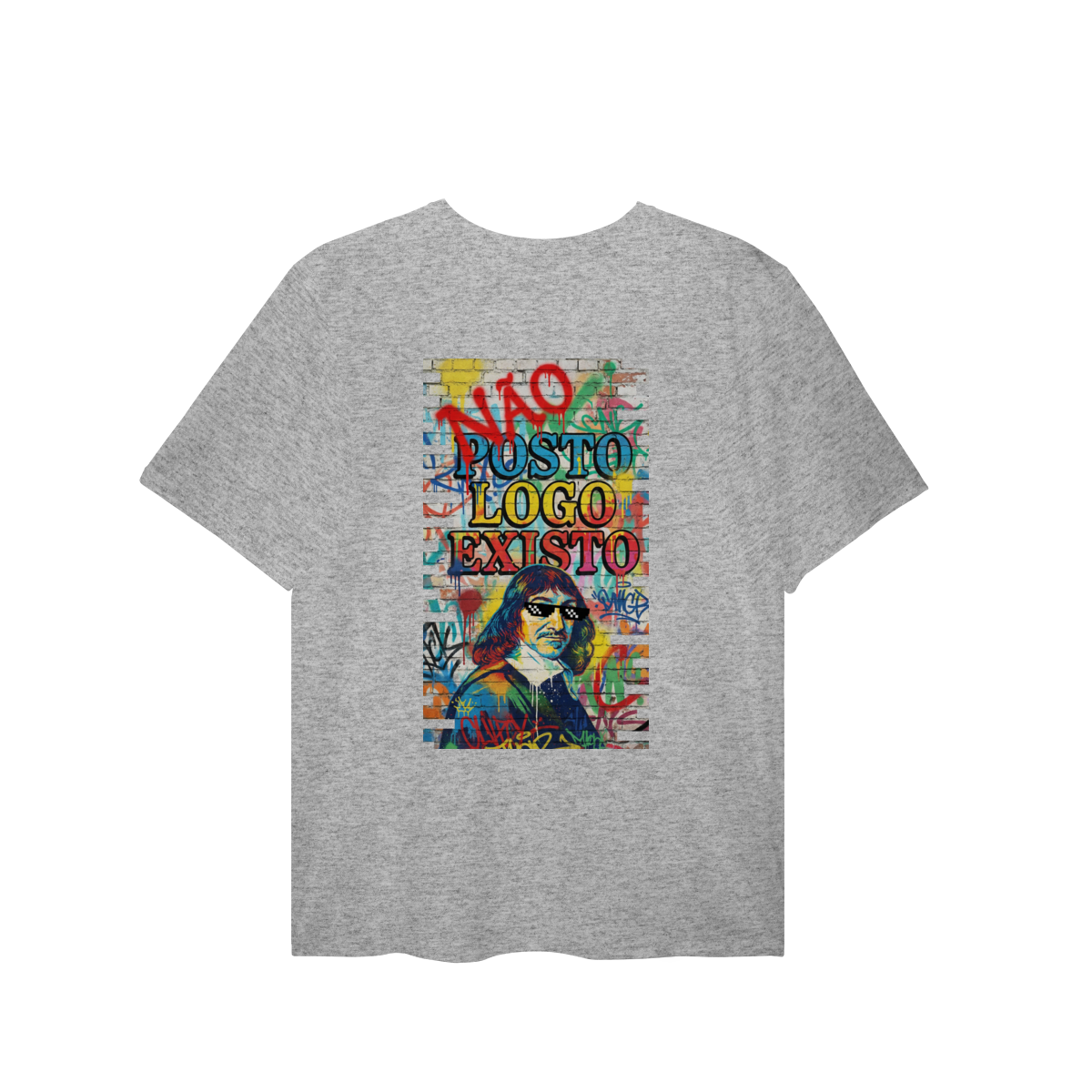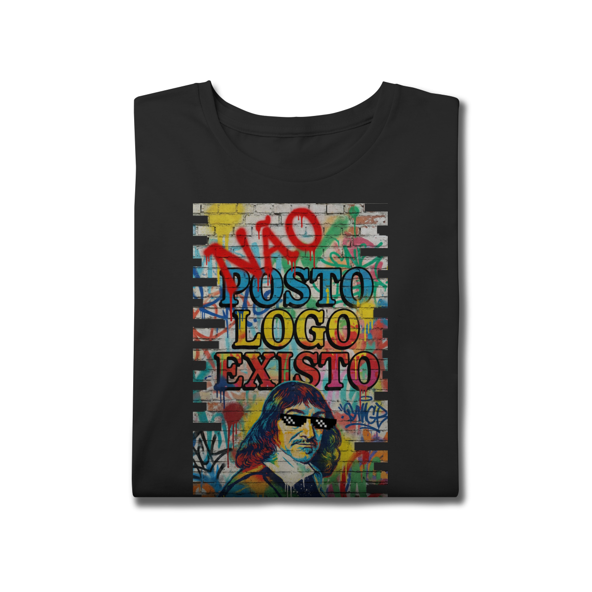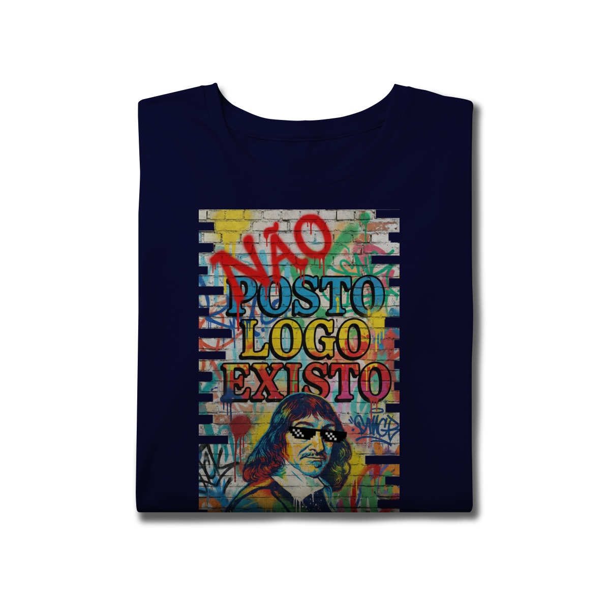 “NÃO POSTO, LOGO EXISTO.” Esta estampa é uma provocação para tempos em que a validação virou métrica e o silêncio virou resistência. Inspirada em Descartes, essa estampa questiona a ideia de que existir depende de ser visto — e lembra que presença não se mede em likes. Vestir essa frase é escolher consciência em um mundo que confunde exposição com identidade.
