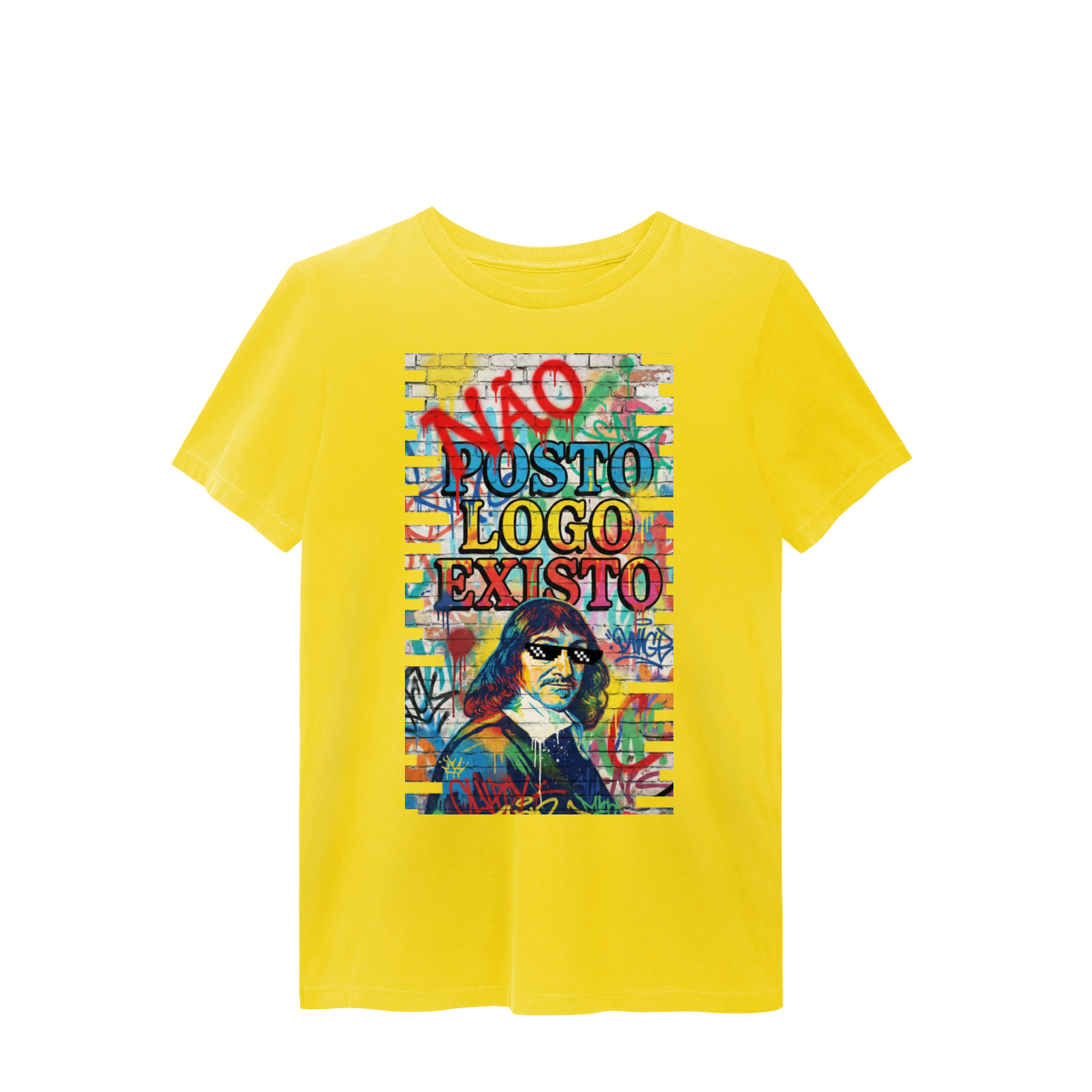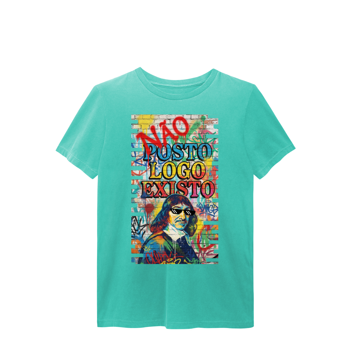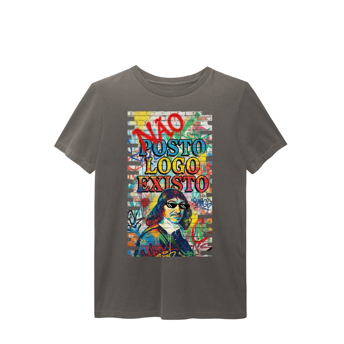 “NÃO POSTO, LOGO EXISTO.” Esta estampa é uma provocação para tempos em que a validação virou métrica e o silêncio virou resistência. Inspirada em Descartes, essa estampa questiona a ideia de que existir depende de ser visto — e lembra que presença não se mede em likes. Vestir essa frase é escolher consciência em um mundo que confunde exposição com identidade.