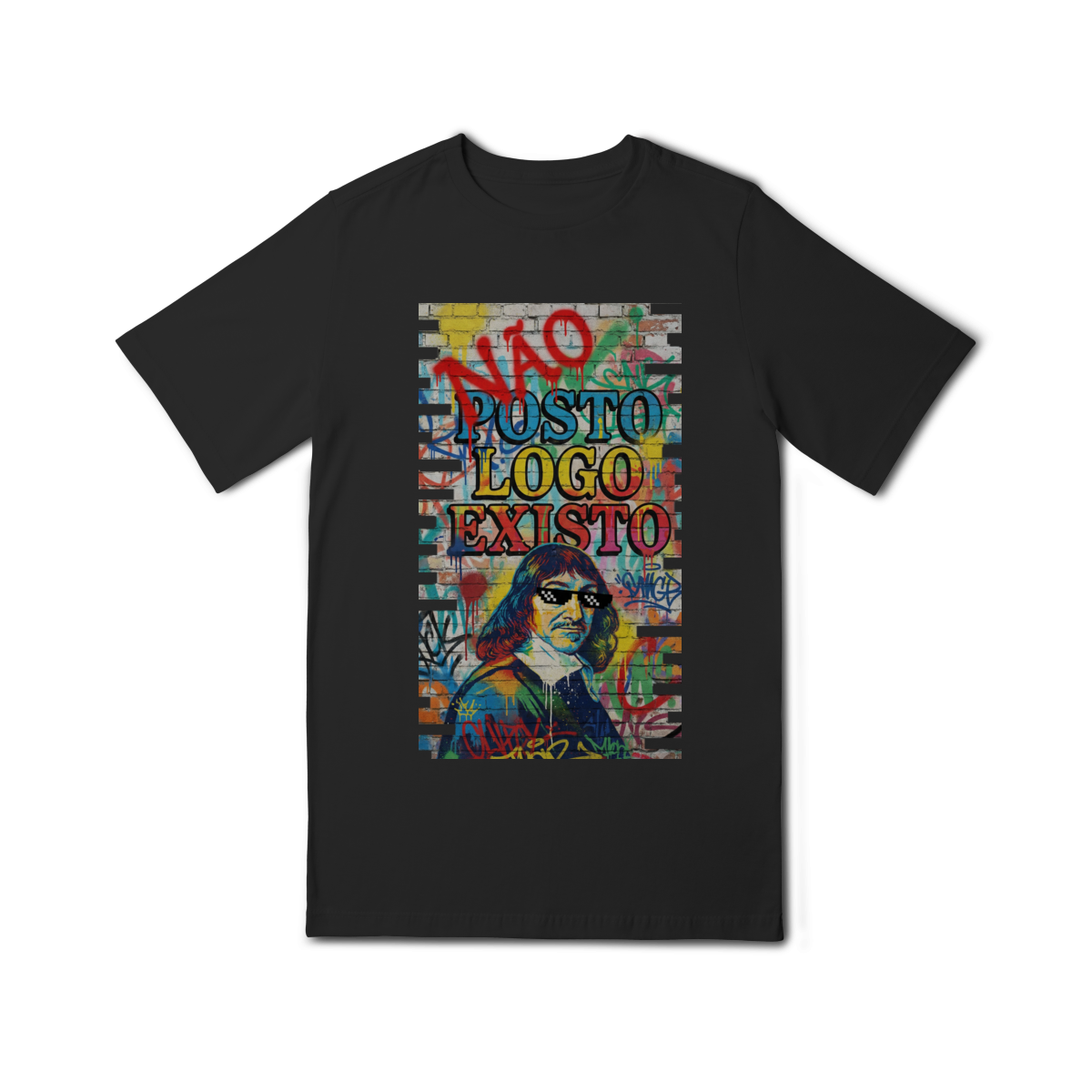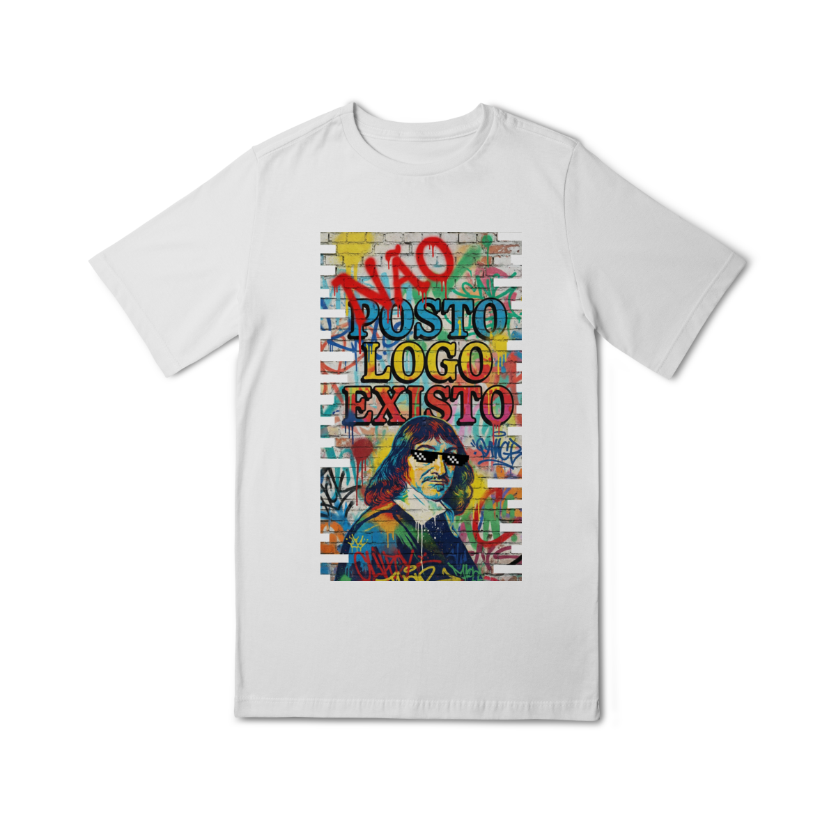“NÃO POSTO, LOGO EXISTO.” Esta estampa é uma provocação para tempos em que a validação virou métrica e o silêncio virou resistência. Inspirada em Descartes, essa estampa questiona a ideia de que existir depende de ser visto — e lembra que presença não se mede em likes. Vestir essa frase é escolher consciência em um mundo que confunde exposição com identidade.