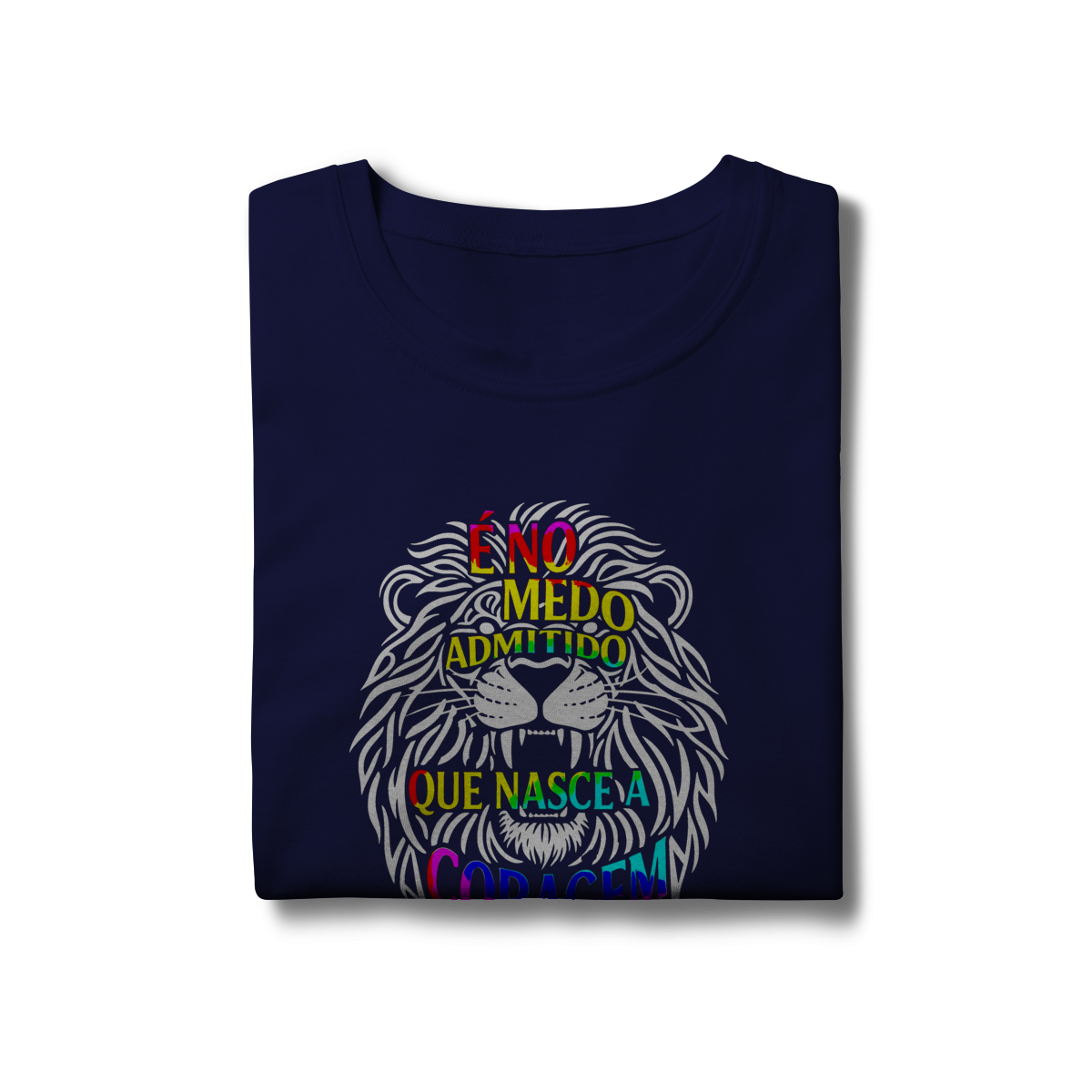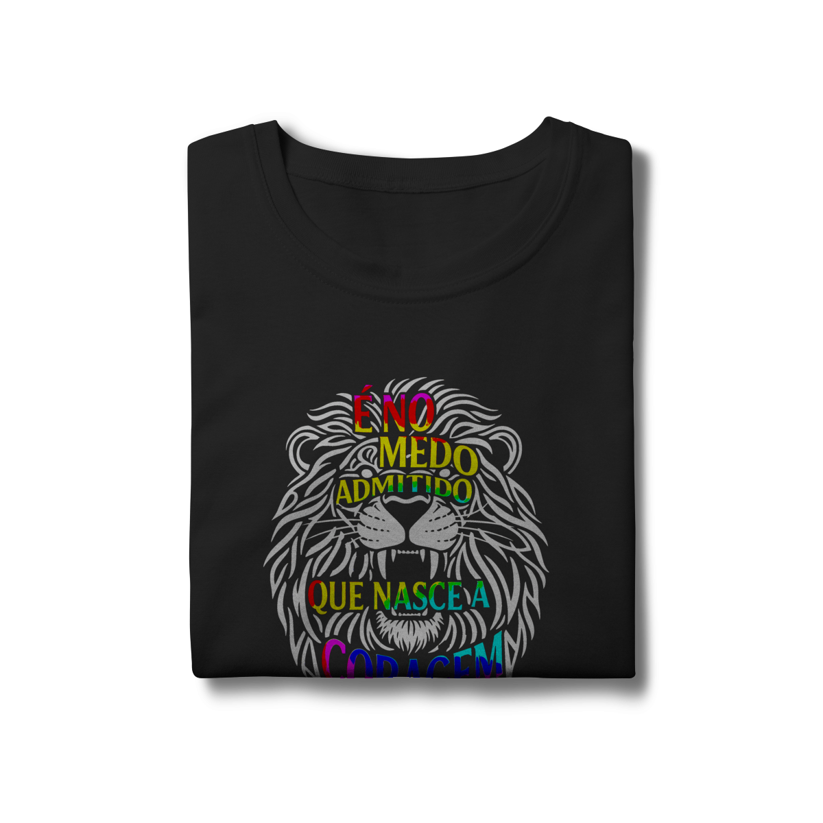 É NO MEDO ADMITIDO QUE NASCE A CORAGEM = A coragem não surge da ausência de medo, mas da decisão de reconhecê-lo. O leão formado por palavras simboliza essa transformação consciente que acontece quando escolhemos encarar desconfortos e amadurecer. Inspirada no livro O menino que vivia entre telas e pensamentos, esta estampa é um convite a enfrentar emoções, crescer com autenticidade e viver com verdadeira presença.