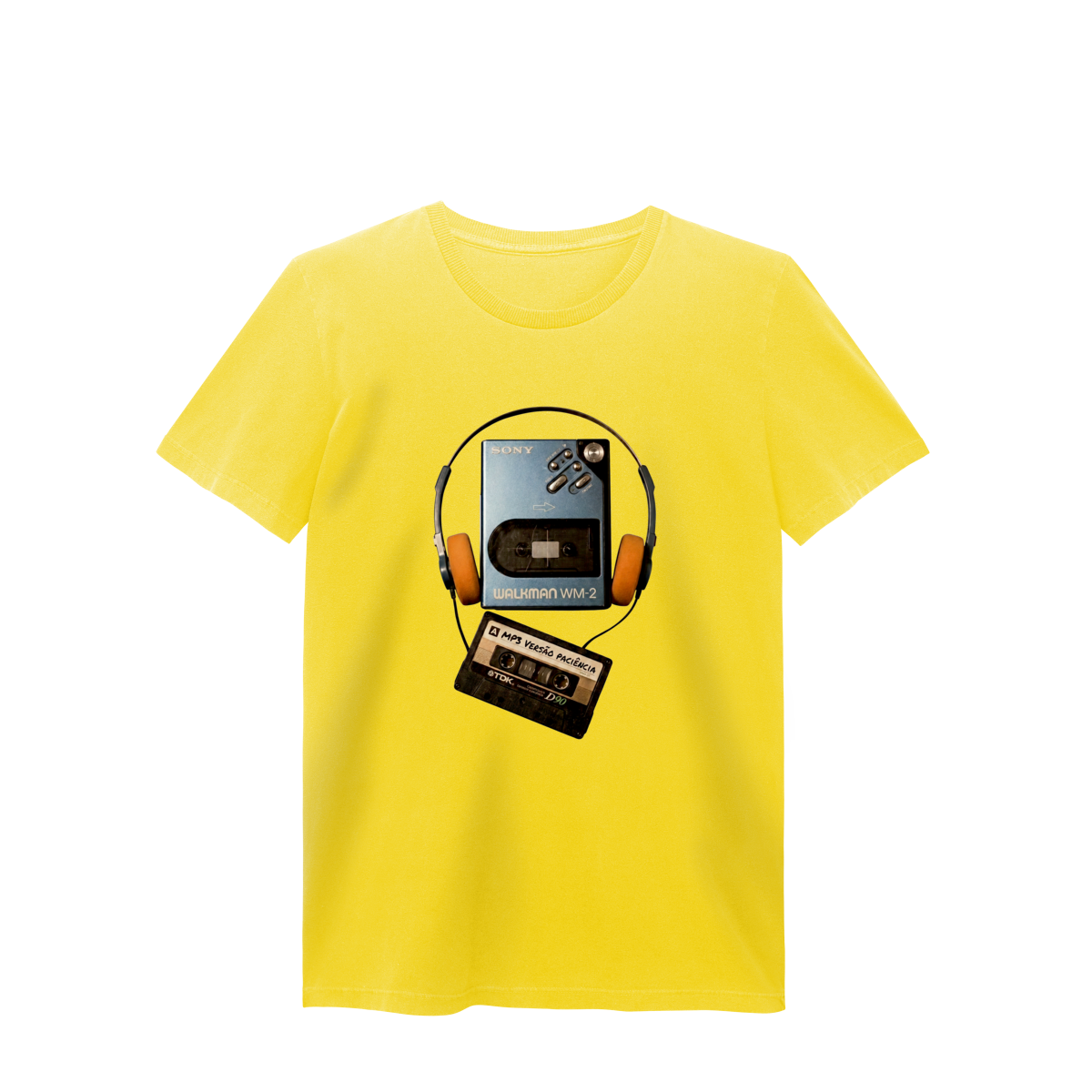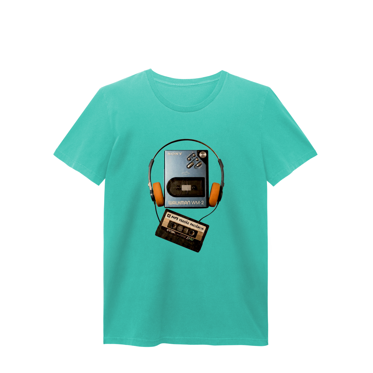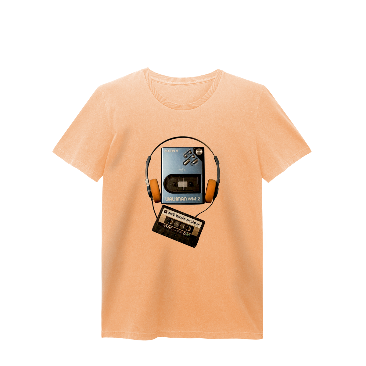 “MP3 – versão paciência” é o choque entre dois mundos: a pressa digital e a força de quem sabia esperar. A fita no walkman lembra que nem tudo era instantâneo — e exatamente por isso tinha valor. Esta estampa é um manifesto silencioso contra o imediatismo e a favor da presença real. Vista resiliência. Vista Presença Offline.