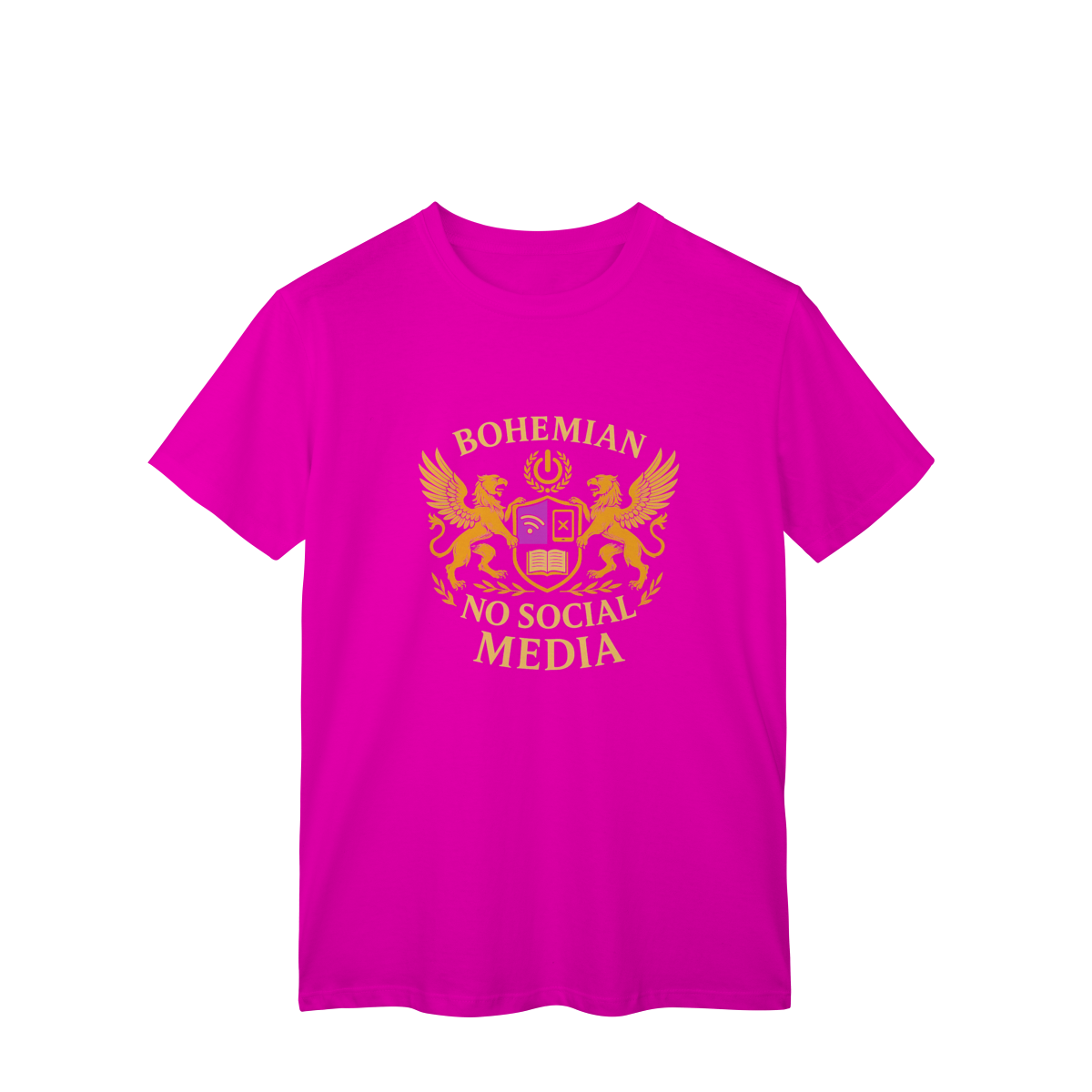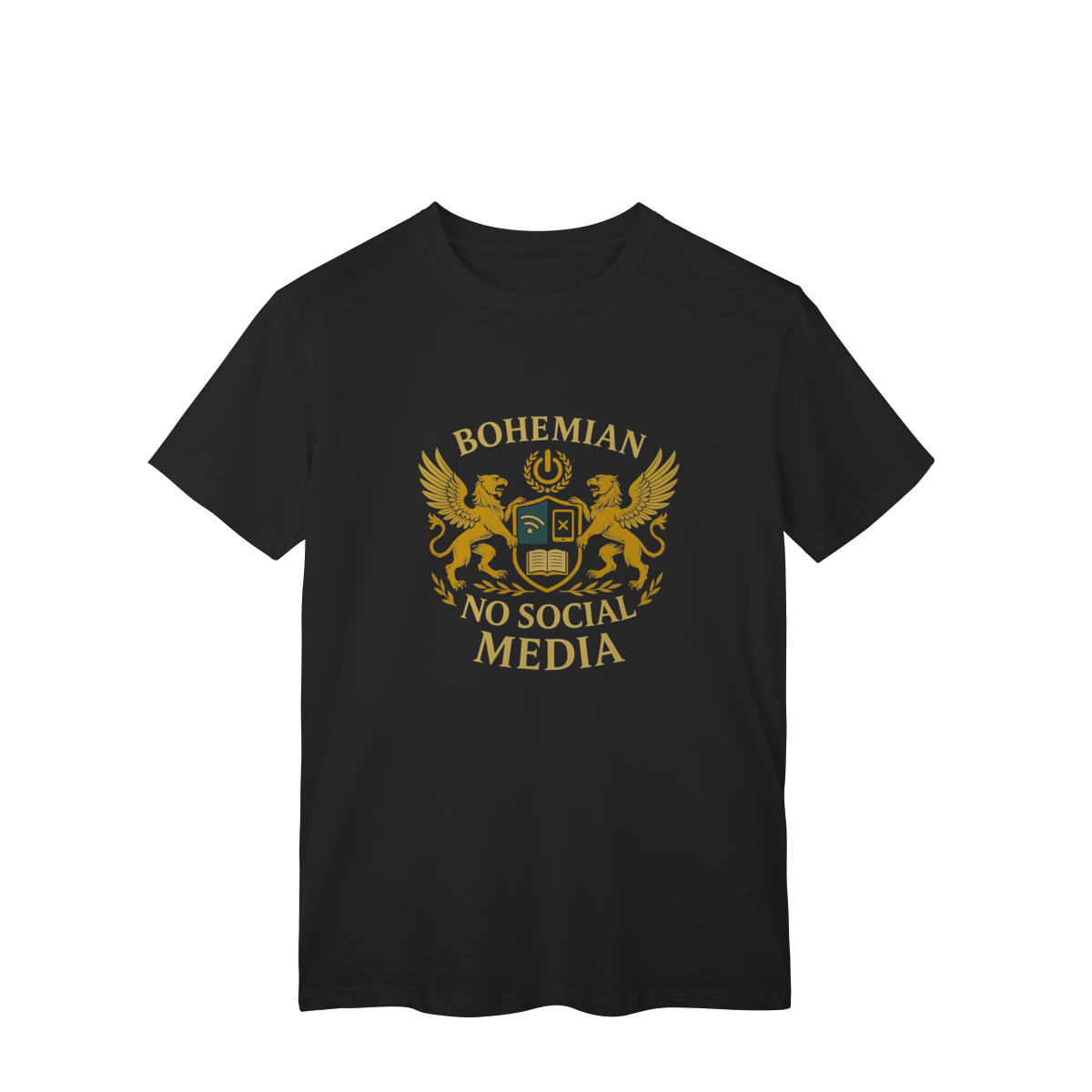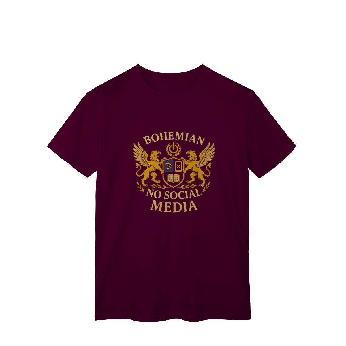 BOEHMIA NO SOCIAL MEDIA ressignifica um ícone da cultura pop para afirmar um modo de viver mais autêntico, longe da performance e da necessidade de plateia. Em um mundo que exige exposição constante, esta estampa celebra a liberdade de existir sem se mostrar, sem competir por atenção e sem viver para as redes sociais. Uma peça para quem escolhe presença real em vez de espetáculo.