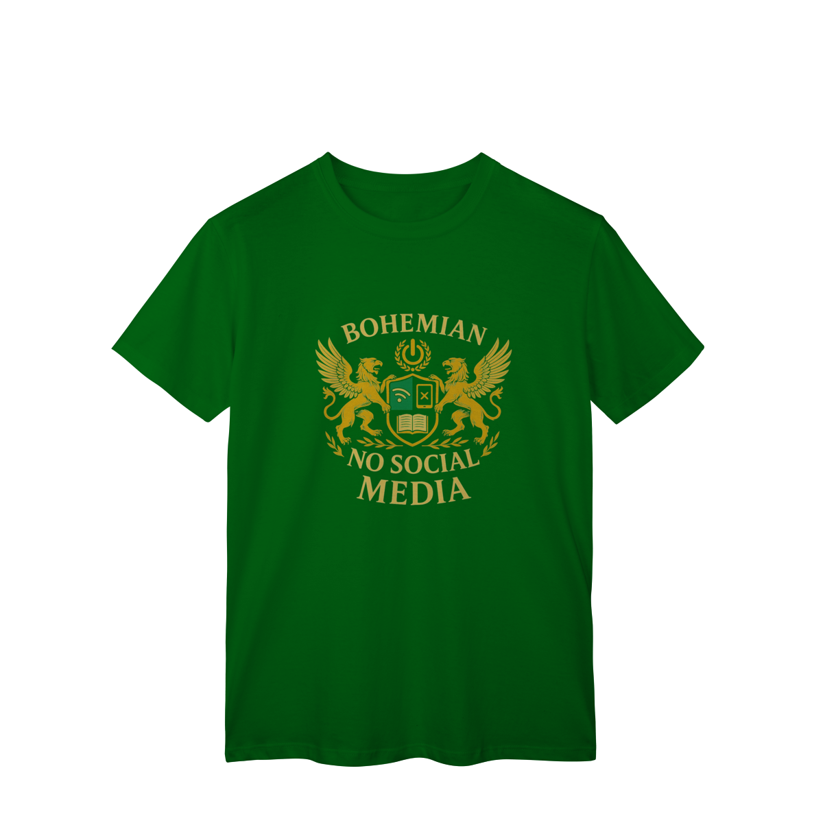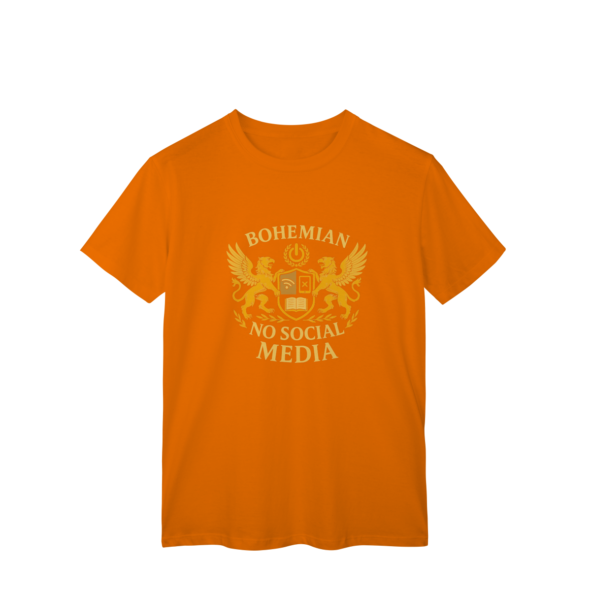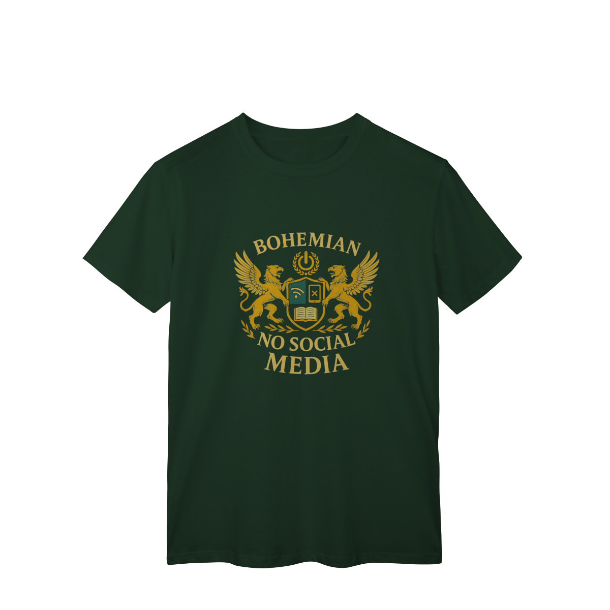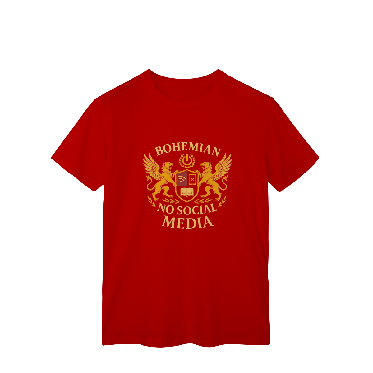 BOEHMIA NO SOCIAL MEDIA ressignifica um ícone da cultura pop para afirmar um modo de viver mais autêntico, longe da performance e da necessidade de plateia. Em um mundo que exige exposição constante, esta estampa celebra a liberdade de existir sem se mostrar, sem competir por atenção e sem viver para as redes sociais. Uma peça para quem escolhe presença real em vez de espetáculo.