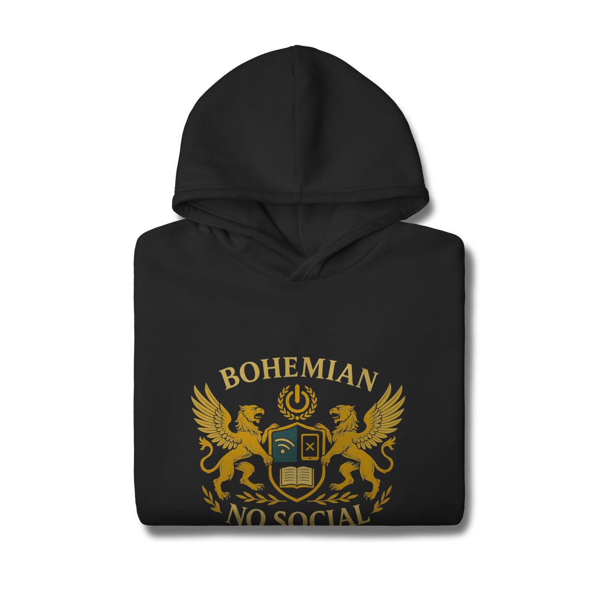 BOEHMIA NO SOCIAL MEDIA ressignifica um ícone da cultura pop para afirmar um modo de viver mais autêntico, longe da performance e da necessidade de plateia. Em um mundo que exige exposição constante, esta estampa celebra a liberdade de existir sem se mostrar, sem competir por atenção e sem viver para as redes sociais. Uma peça para quem escolhe presença real em vez de espetáculo.