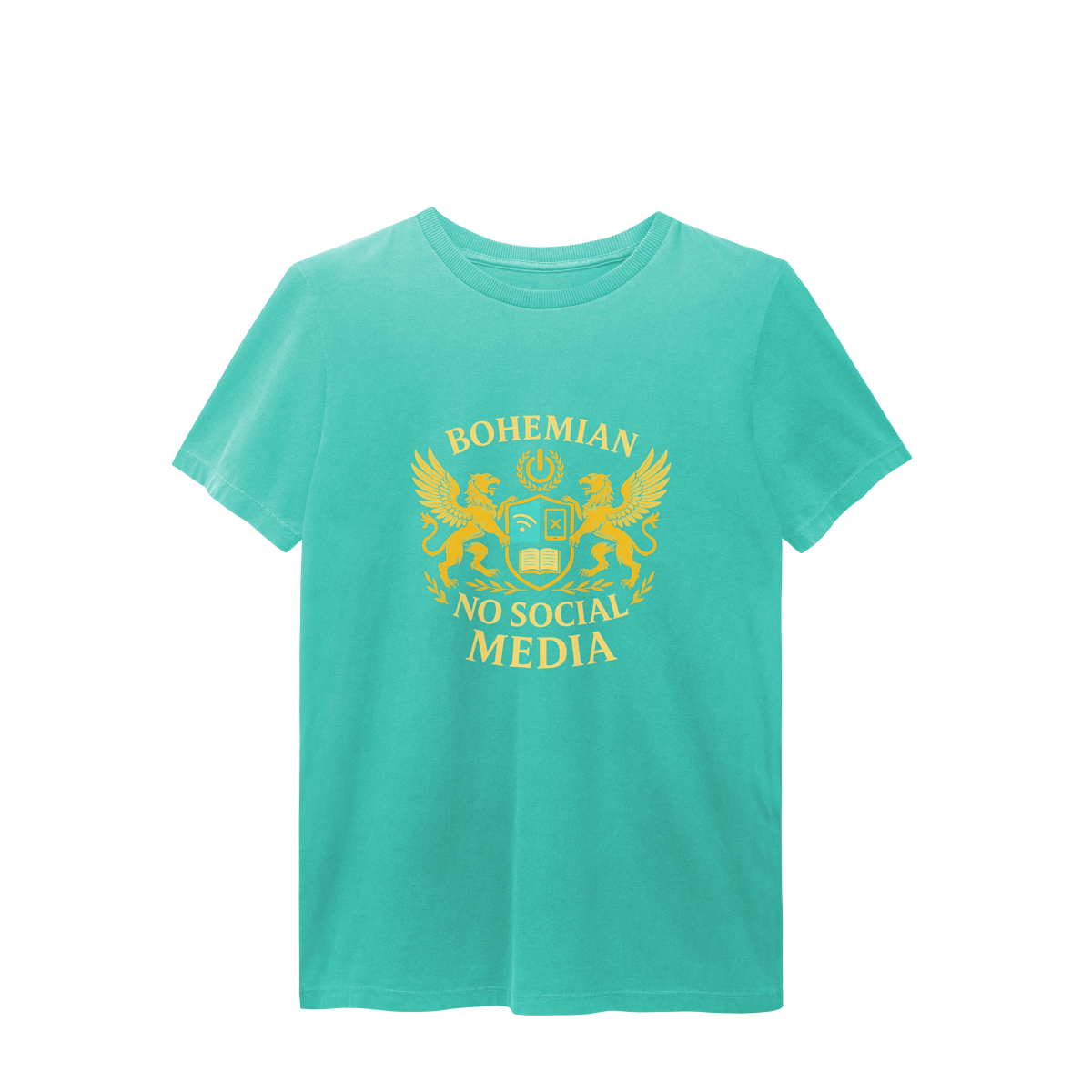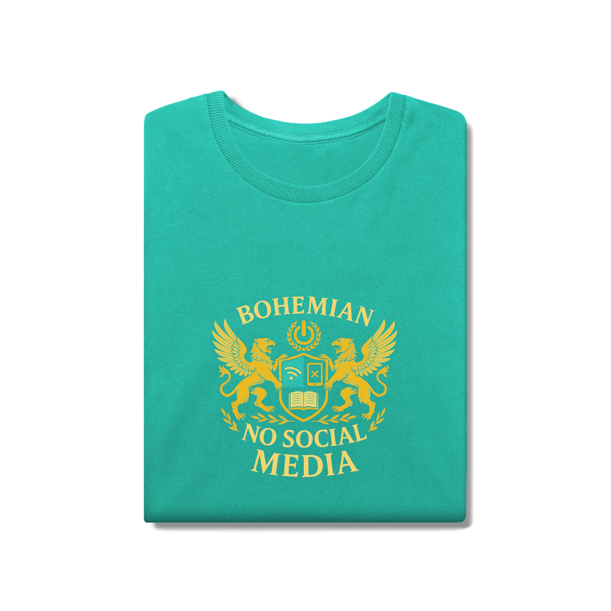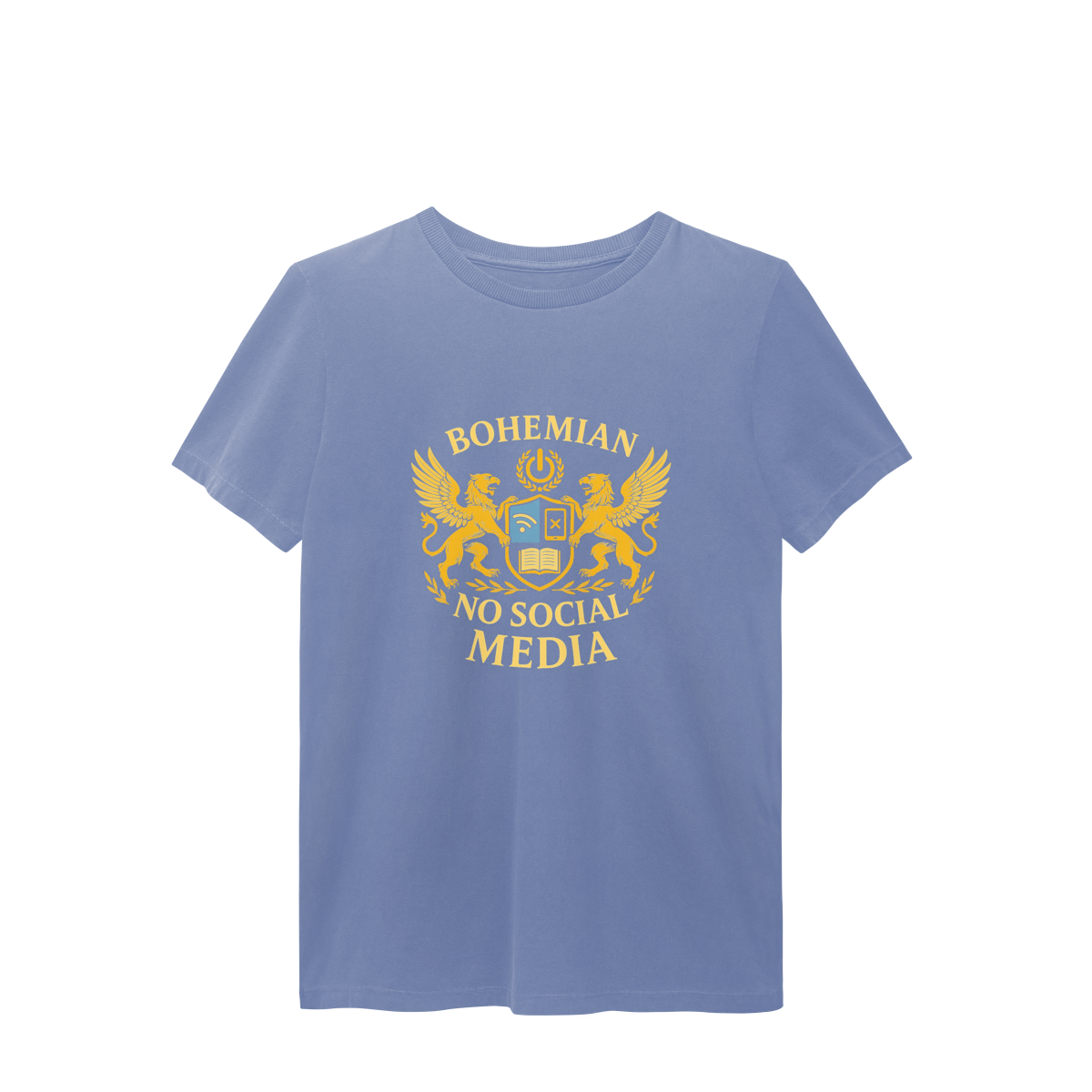 BOEHMIA NO SOCIAL MEDIA ressignifica um ícone da cultura pop para afirmar um modo de viver mais autêntico, longe da performance e da necessidade de plateia. Em um mundo que exige exposição constante, esta estampa celebra a liberdade de existir sem se mostrar, sem competir por atenção e sem viver para as redes sociais. Uma peça para quem escolhe presença real em vez de espetáculo.