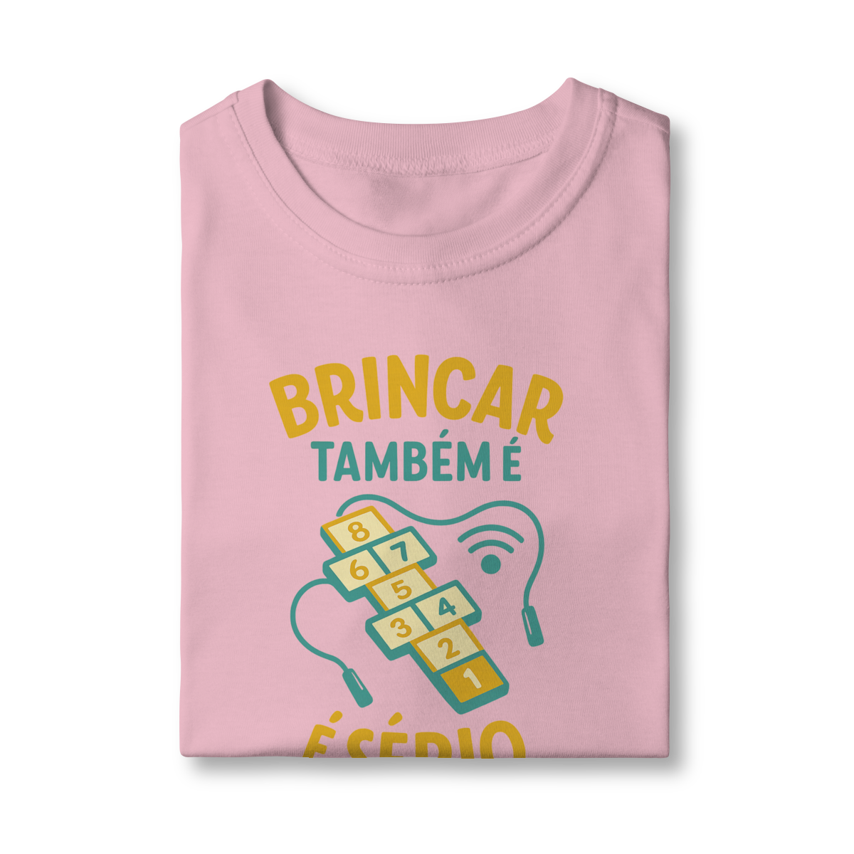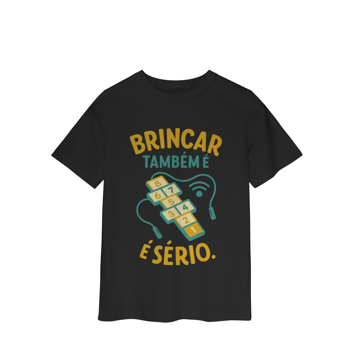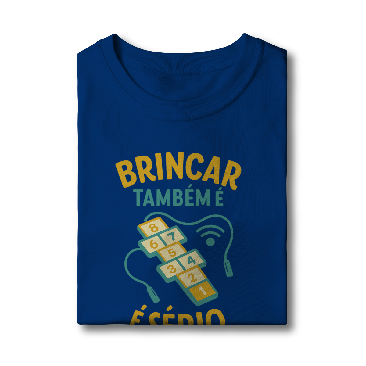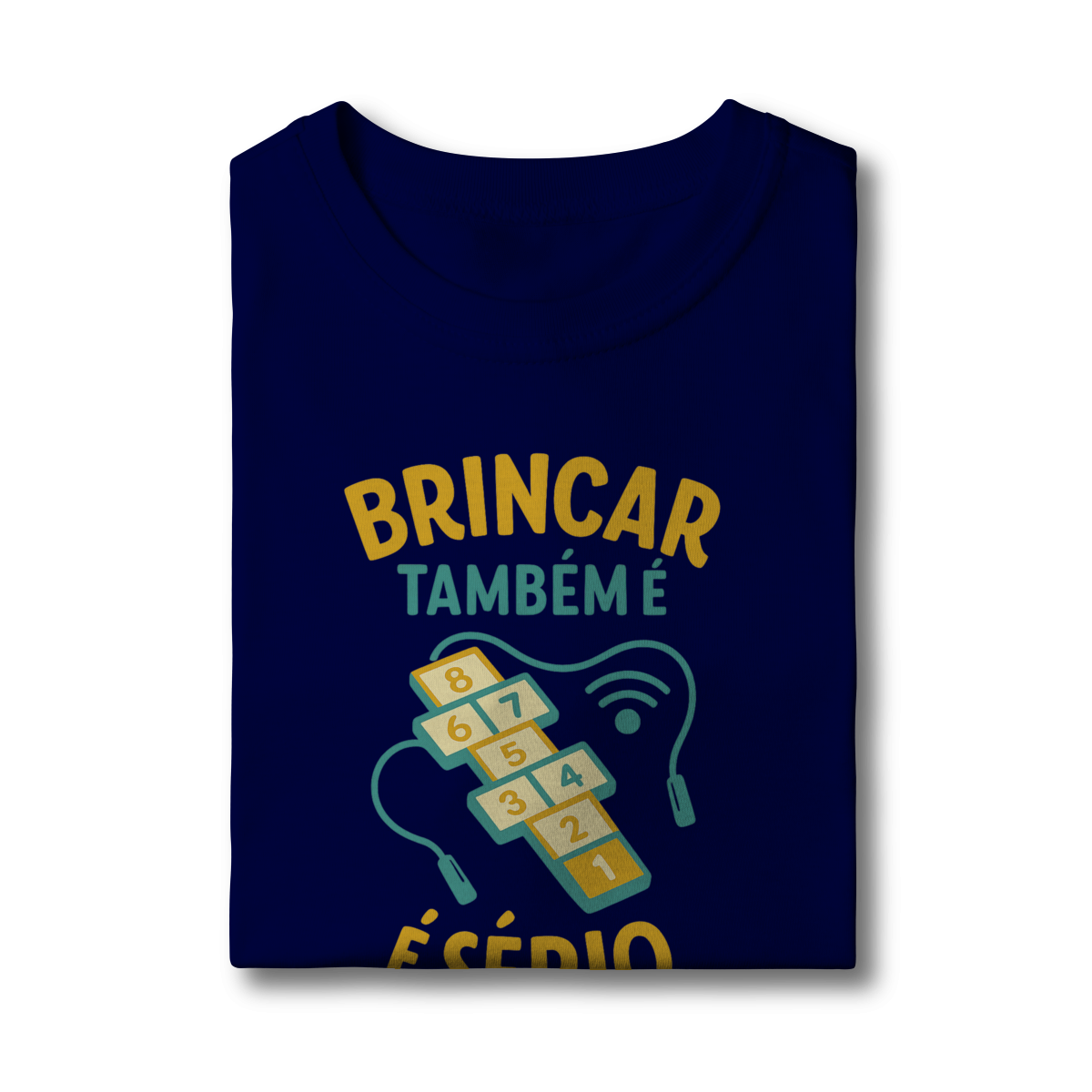 BRINCAR TAMBÉM É SÉRIO reconhece o crescimento como um exercício que exige reduzir a exposição constante aos estímulos eletrônicos. A estampa valoriza o brincar como espaço de presença, imaginação e desenvolvimento real. Uma peça que lembra que amadurecer também passa por saber quando se desconectar.