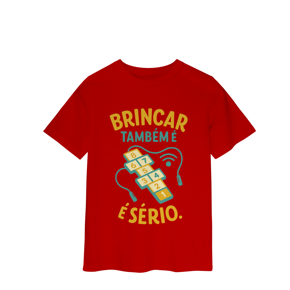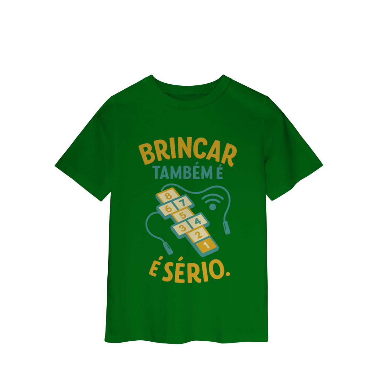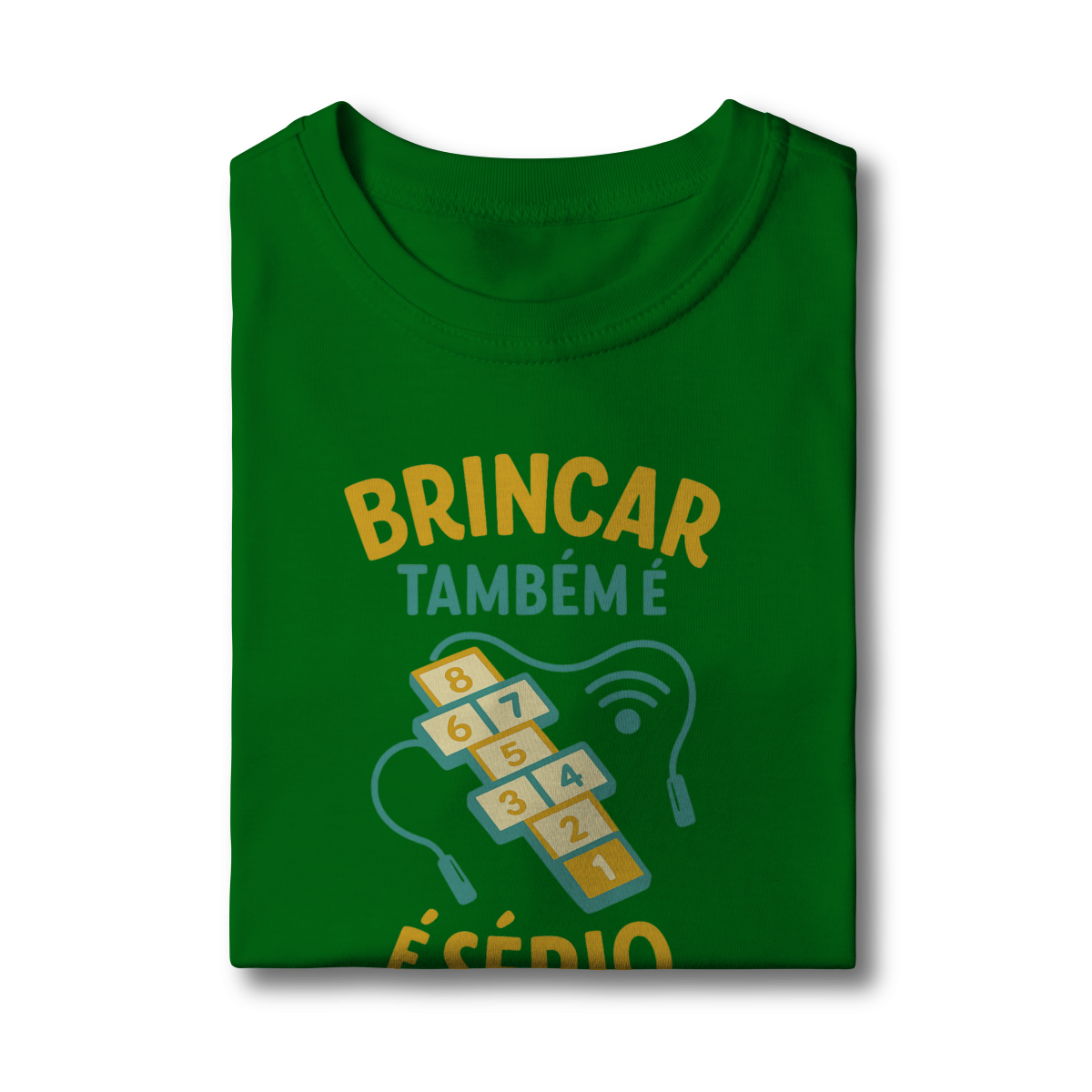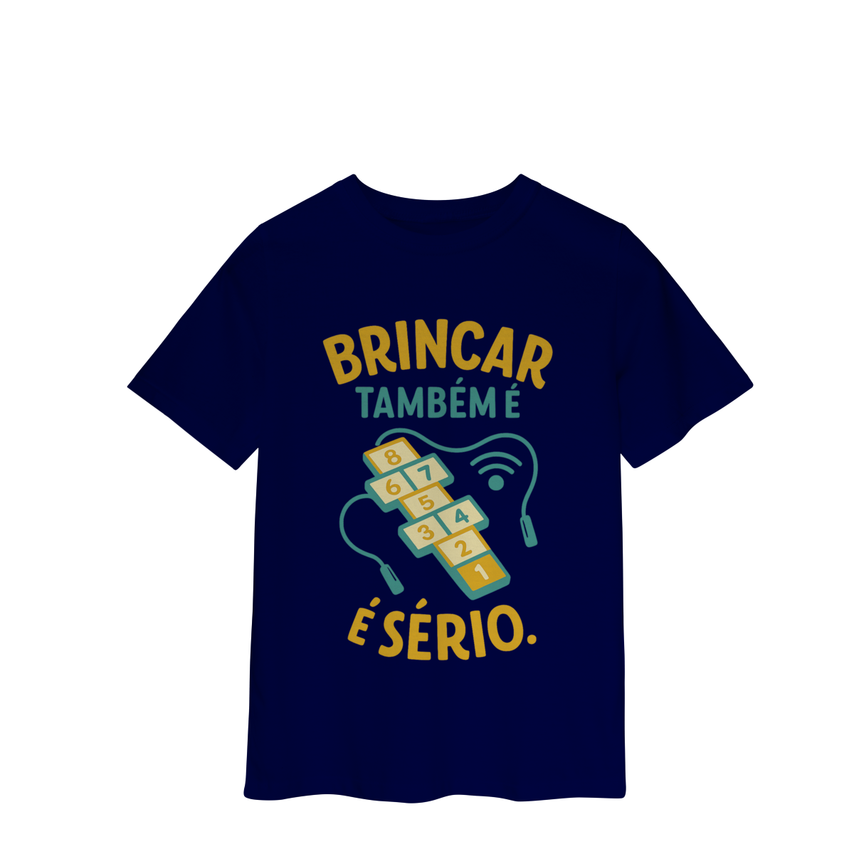 BRINCAR TAMBÉM É SÉRIO reconhece o crescimento como um exercício que exige reduzir a exposição constante aos estímulos eletrônicos. A estampa valoriza o brincar como espaço de presença, imaginação e desenvolvimento real. Uma peça que lembra que amadurecer também passa por saber quando se desconectar.
