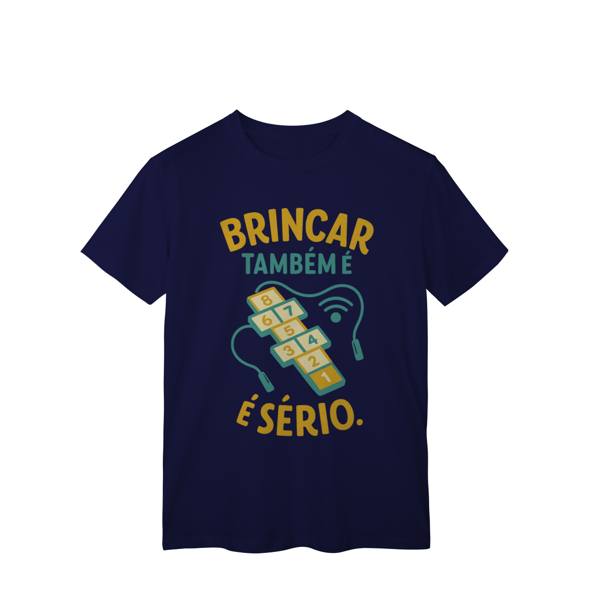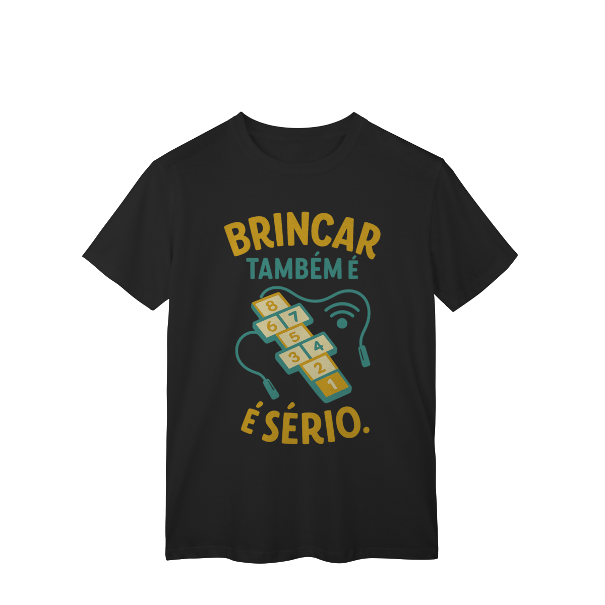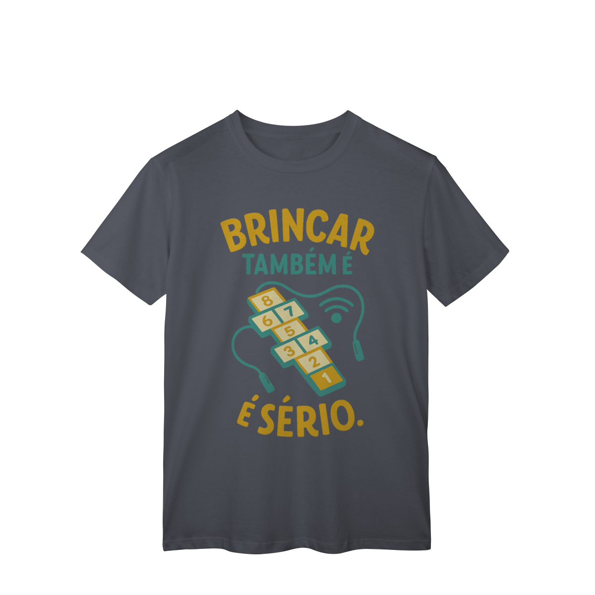 BRINCAR TAMBÉM É SÉRIO reconhece o crescimento como um exercício que exige reduzir a exposição constante aos estímulos eletrônicos. A estampa valoriza o brincar como espaço de presença, imaginação e desenvolvimento real. Uma peça que lembra que amadurecer também passa por saber quando se desconectar.
