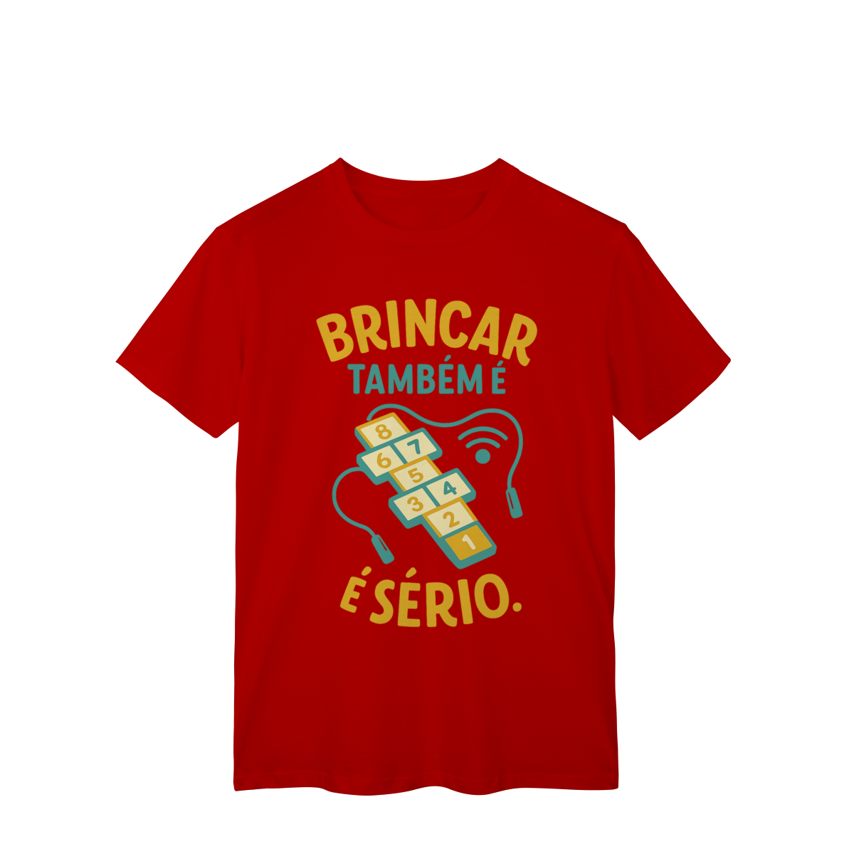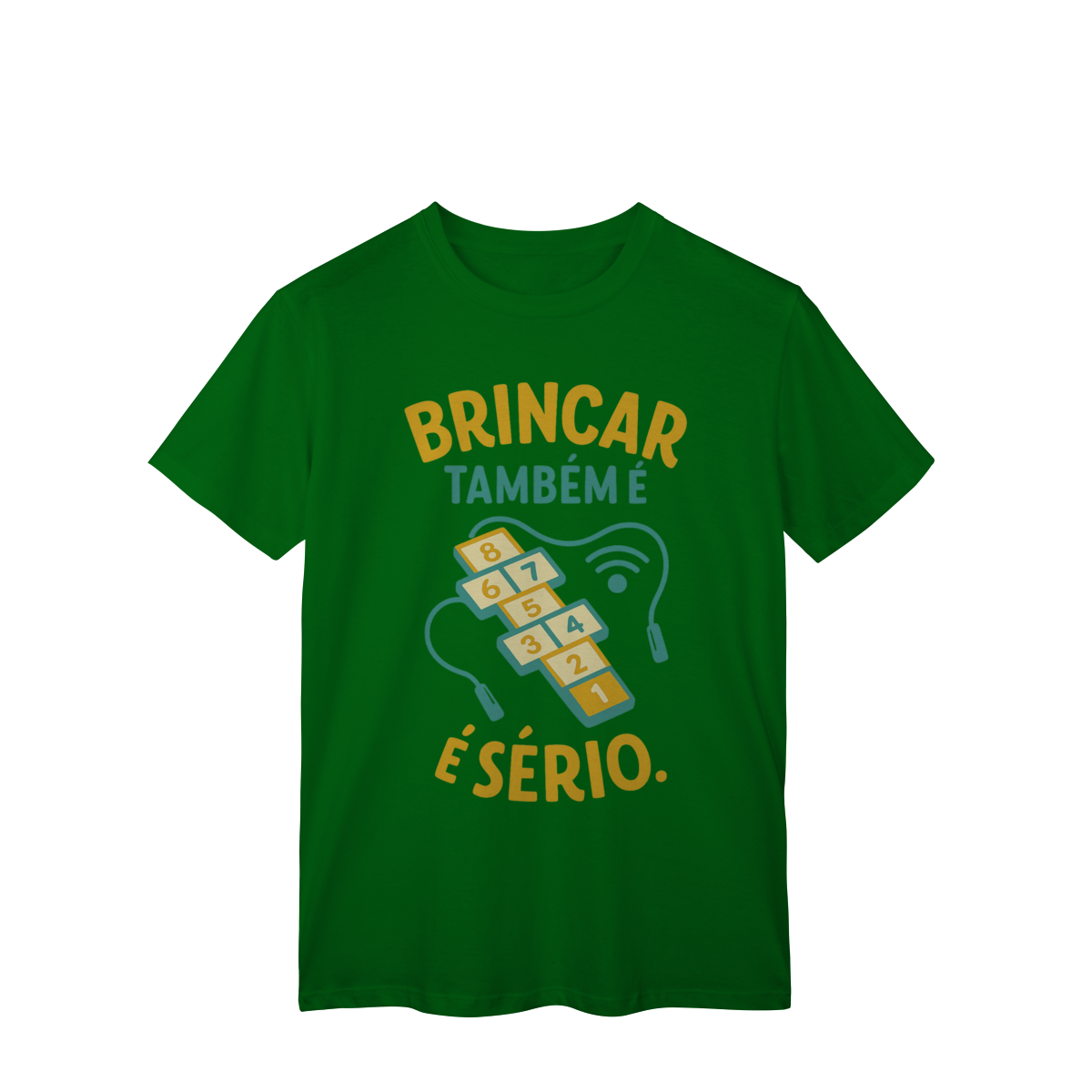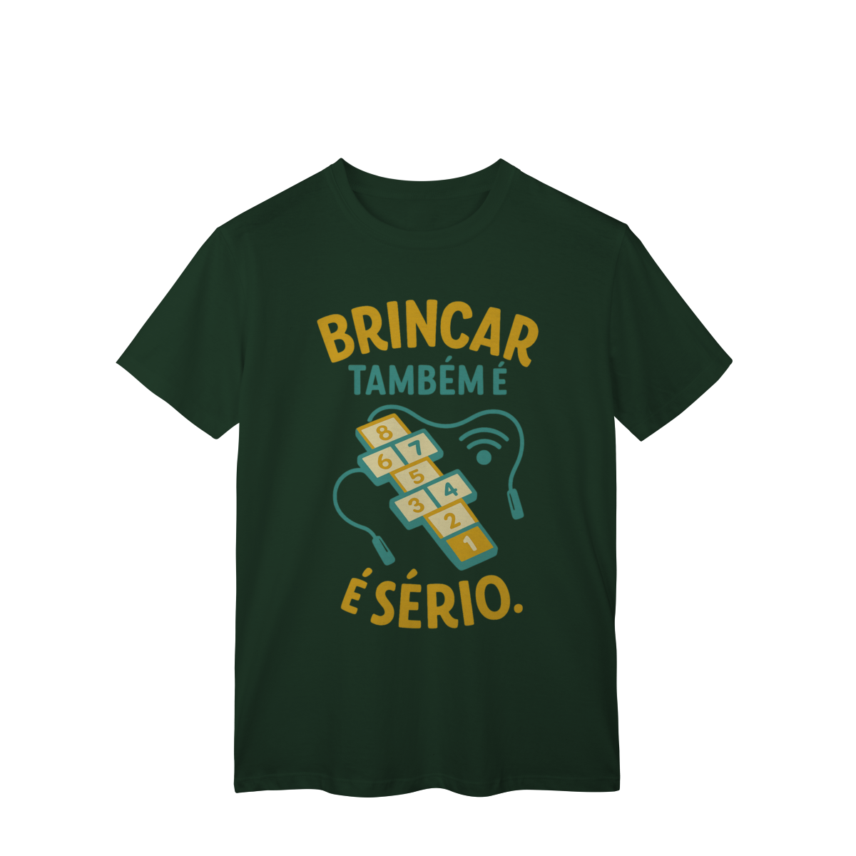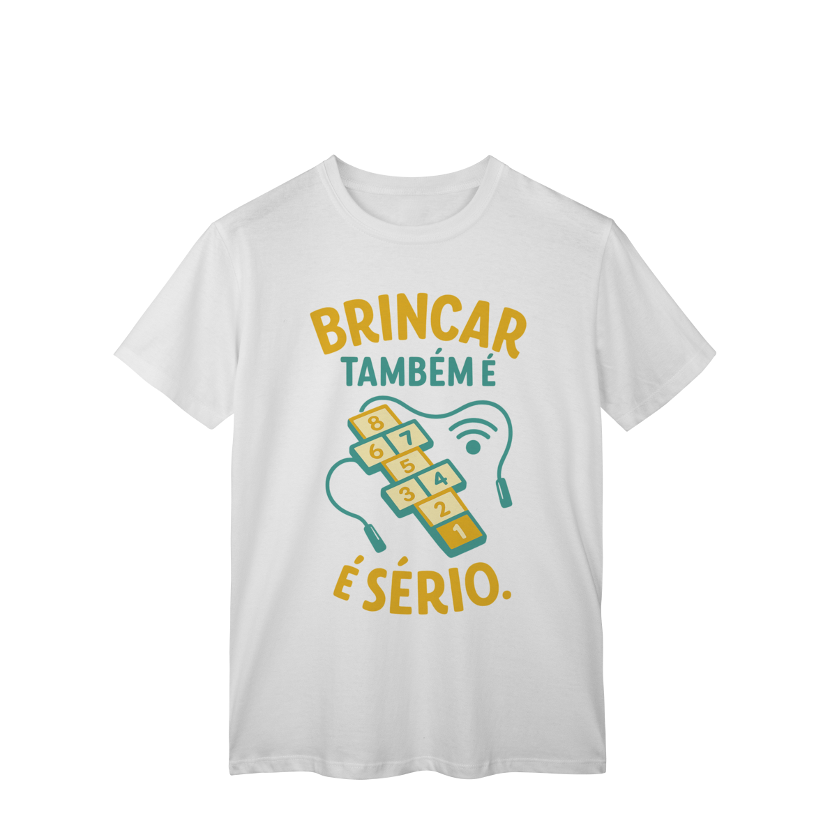 BRINCAR TAMBÉM É SÉRIO reconhece o crescimento como um exercício que exige reduzir a exposição constante aos estímulos eletrônicos. A estampa valoriza o brincar como espaço de presença, imaginação e desenvolvimento real. Uma peça que lembra que amadurecer também passa por saber quando se desconectar.