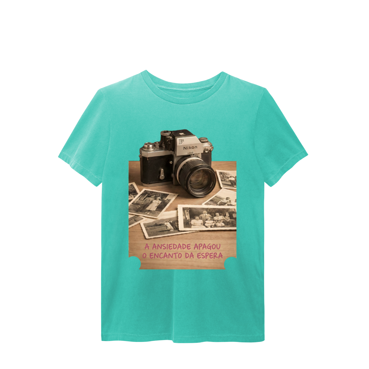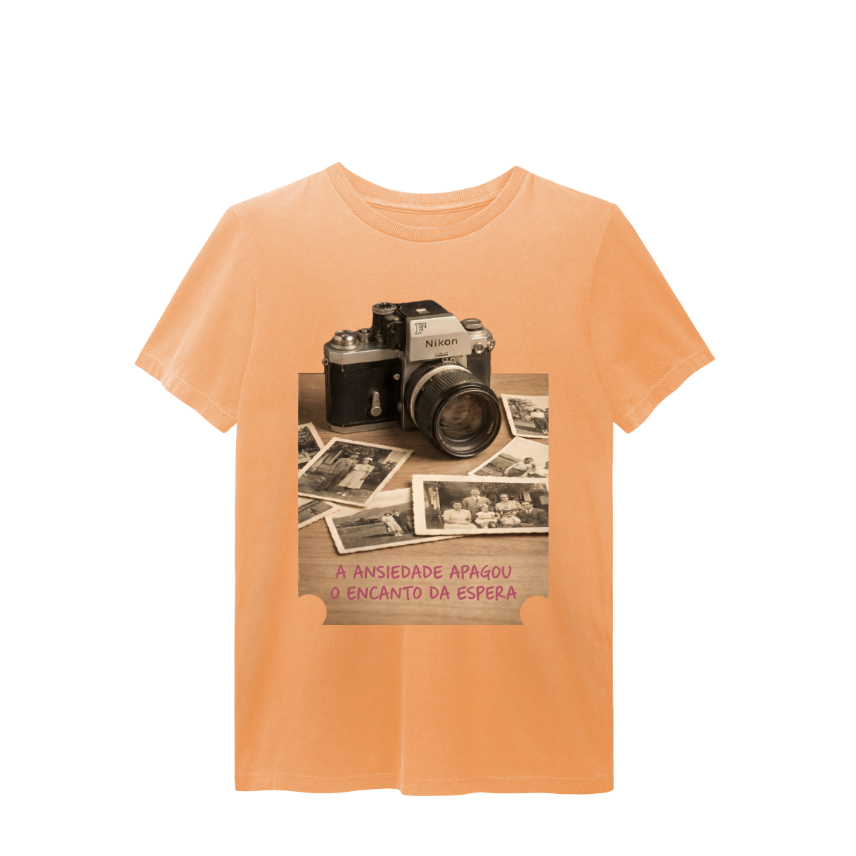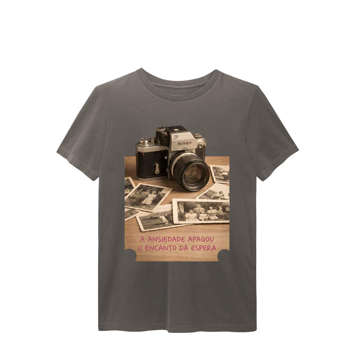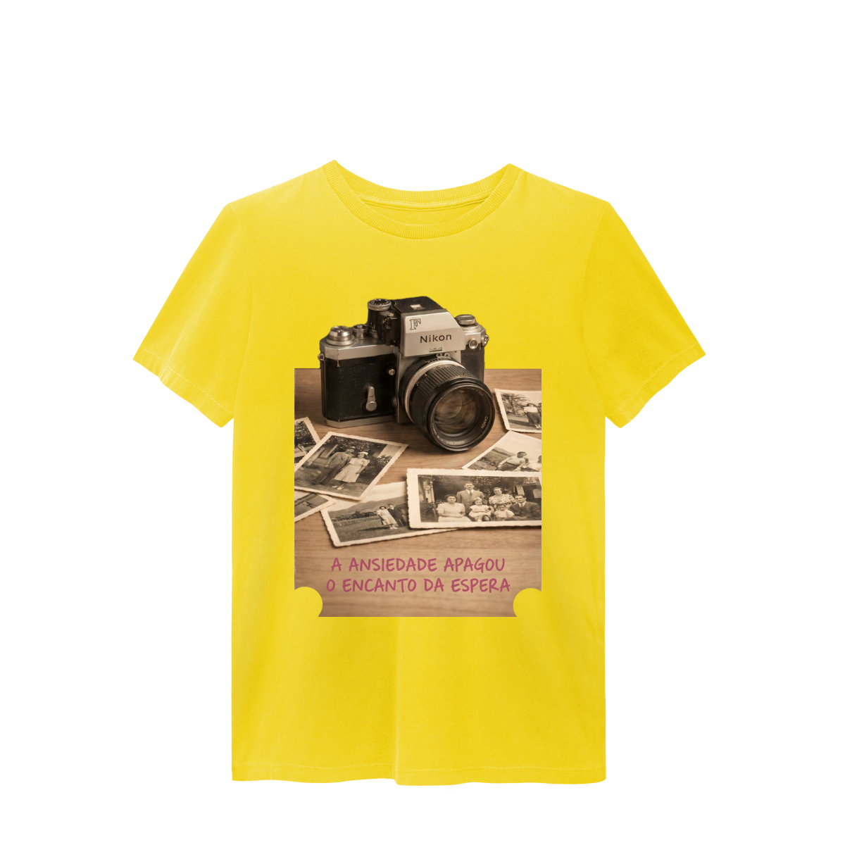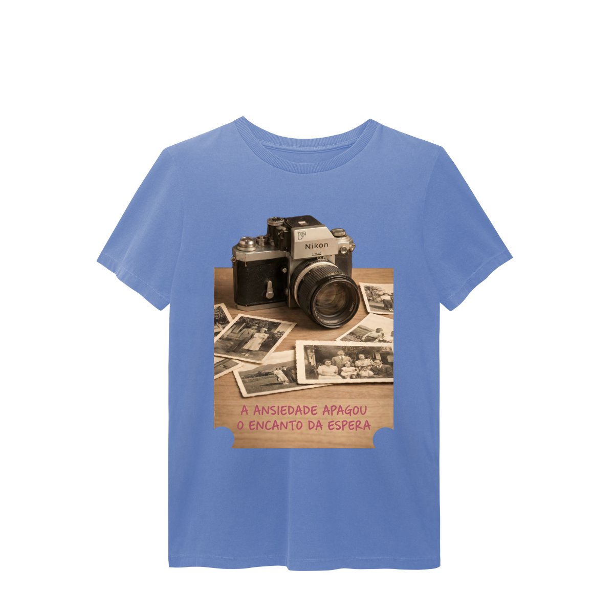 “O Encanto da Espera” resgata um tempo em que cada clique carregava expectativa, silêncio e significado. A câmera antiga e as fotos amareladas lembram que a beleza não estava na velocidade, mas na revelação. Esta estampa é um manifesto contra o imediatismo e a favor de memórias vividas com presença. Vista o tempo ao seu favor.
