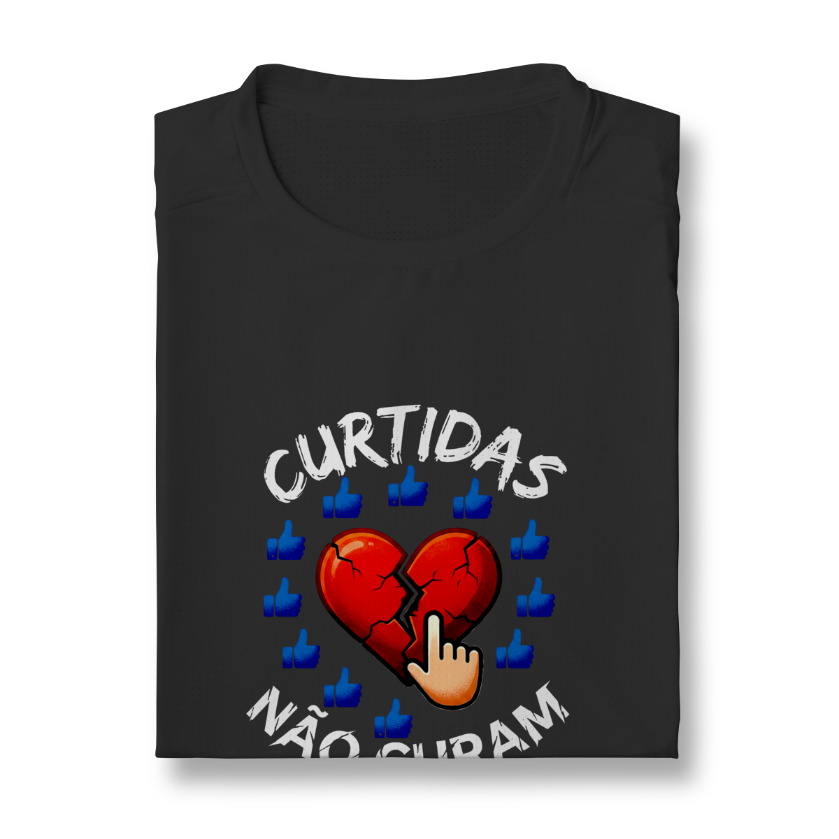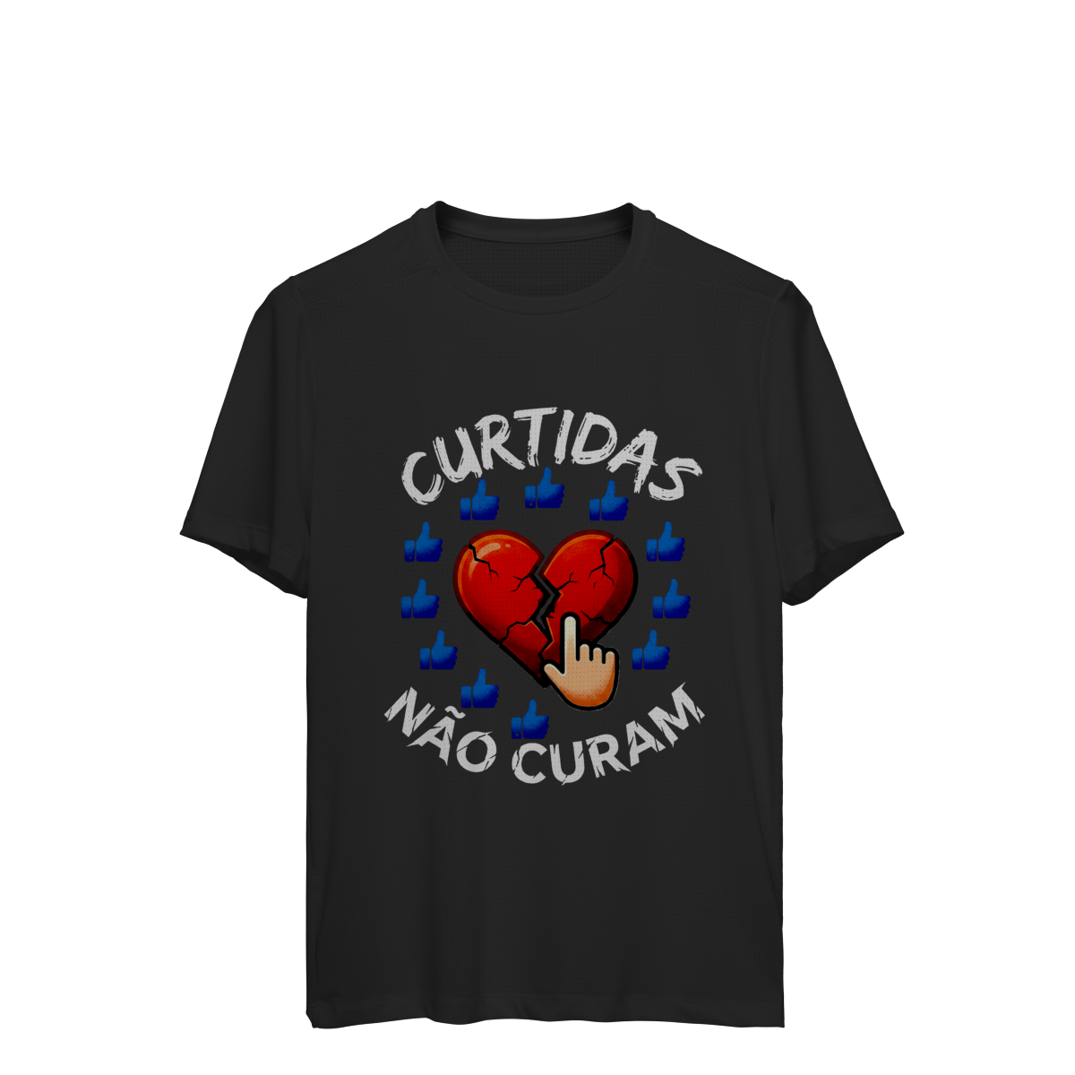 CURTIDAS NÃO CURAM expõe o contraste entre validação digital e cuidado real. A estampa lembra que números não acolhem, não escutam e não sustentam processos internos. Uma peça que convida à presença e ao contato genuíno, para reforçar que saúde emocional não se mede em engajamento.
