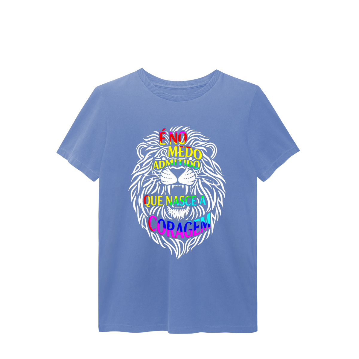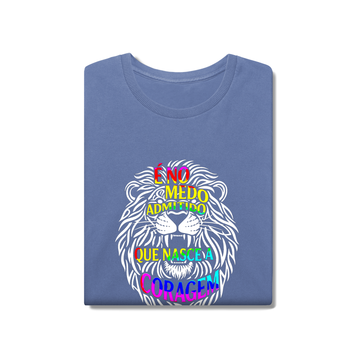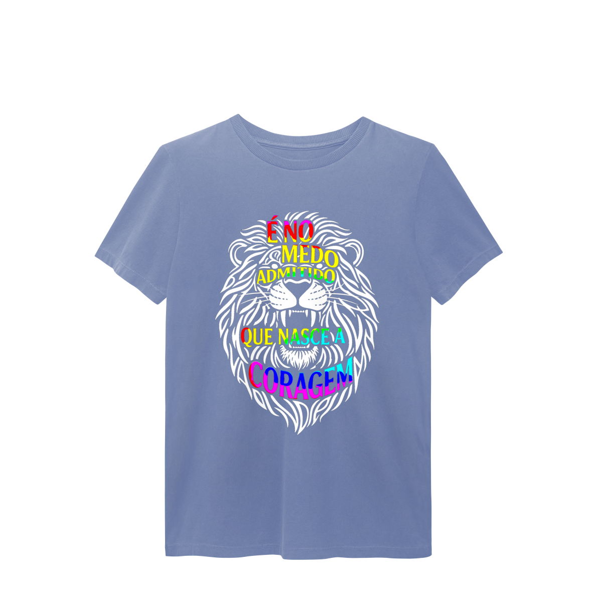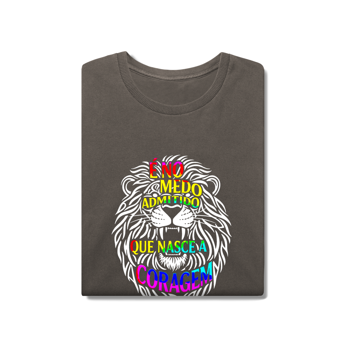 É NO MEDO ADMITIDO QUE NASCE A CORAGEM = A coragem não surge da ausência de medo, mas da decisão de reconhecê-lo. O leão formado por palavras simboliza essa transformação consciente que acontece quando escolhemos encarar desconfortos e amadurecer. Inspirada no livro O menino que vivia entre telas e pensamentos, esta estampa é um convite a enfrentar emoções, crescer com autenticidade e viver com verdadeira presença.