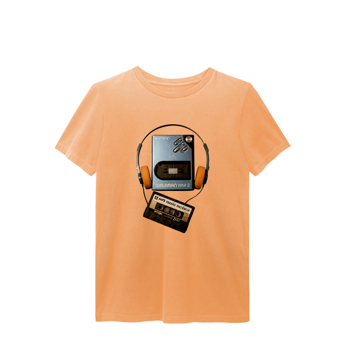 “MP3 – versão paciência” é o choque entre dois mundos: a pressa digital e a força de quem sabia esperar. A fita no walkman lembra que nem tudo era instantâneo — e exatamente por isso tinha valor. Esta estampa é um manifesto silencioso contra o imediatismo e a favor da presença real. Vista resiliência. Vista Presença Offline.