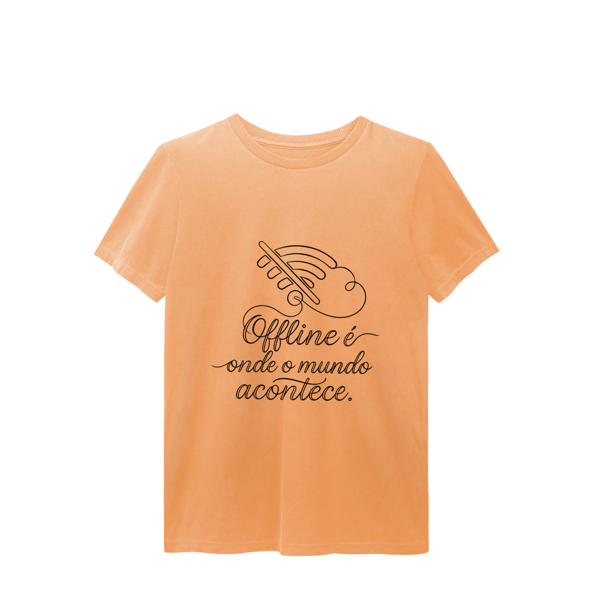 OFFLINE É ONDE O MUNDO ACONTECE reforça que as experiências que realmente constroem não dependem de tela, registro ou validação. Uma estampa que convida a viver com mais presença e menos mediação digital.