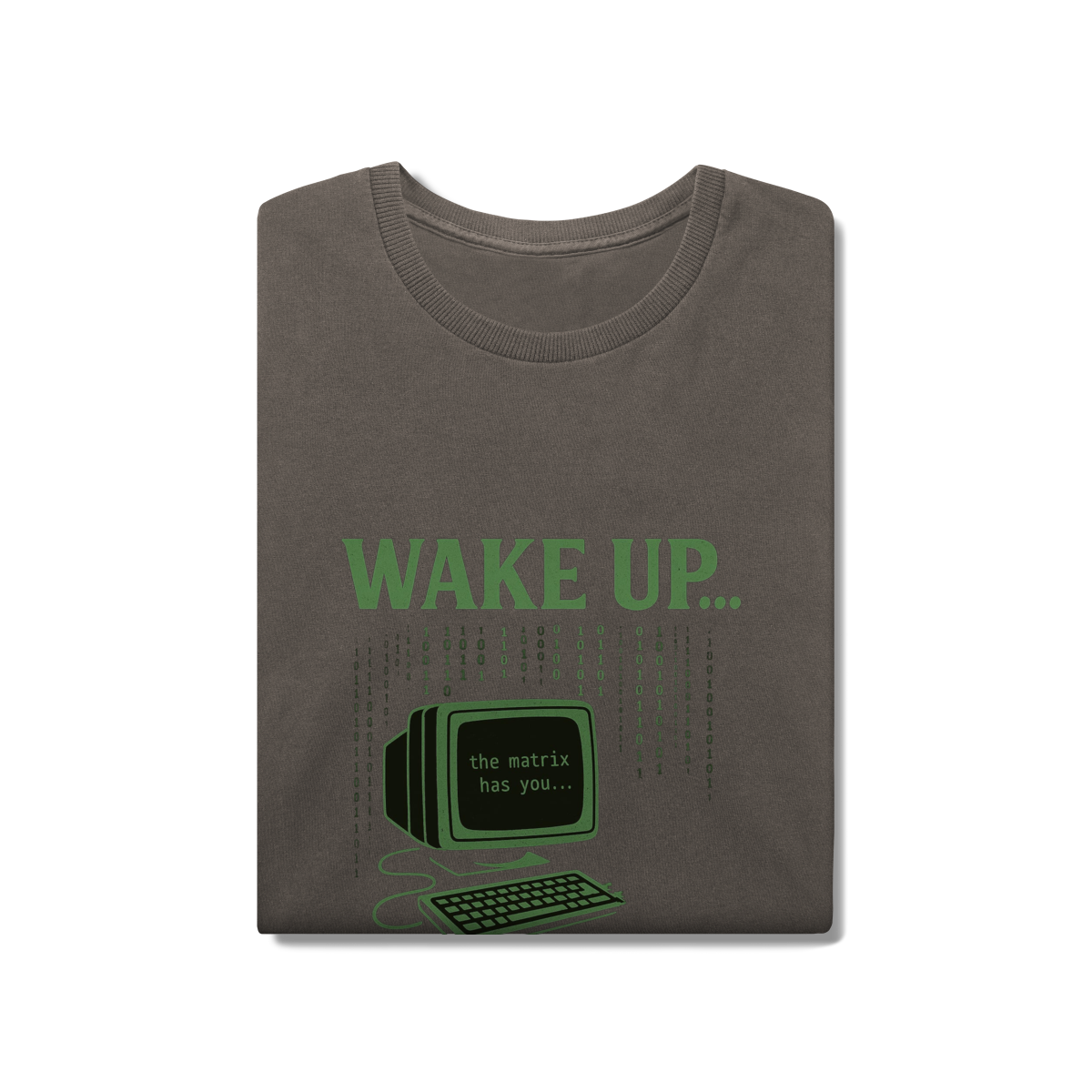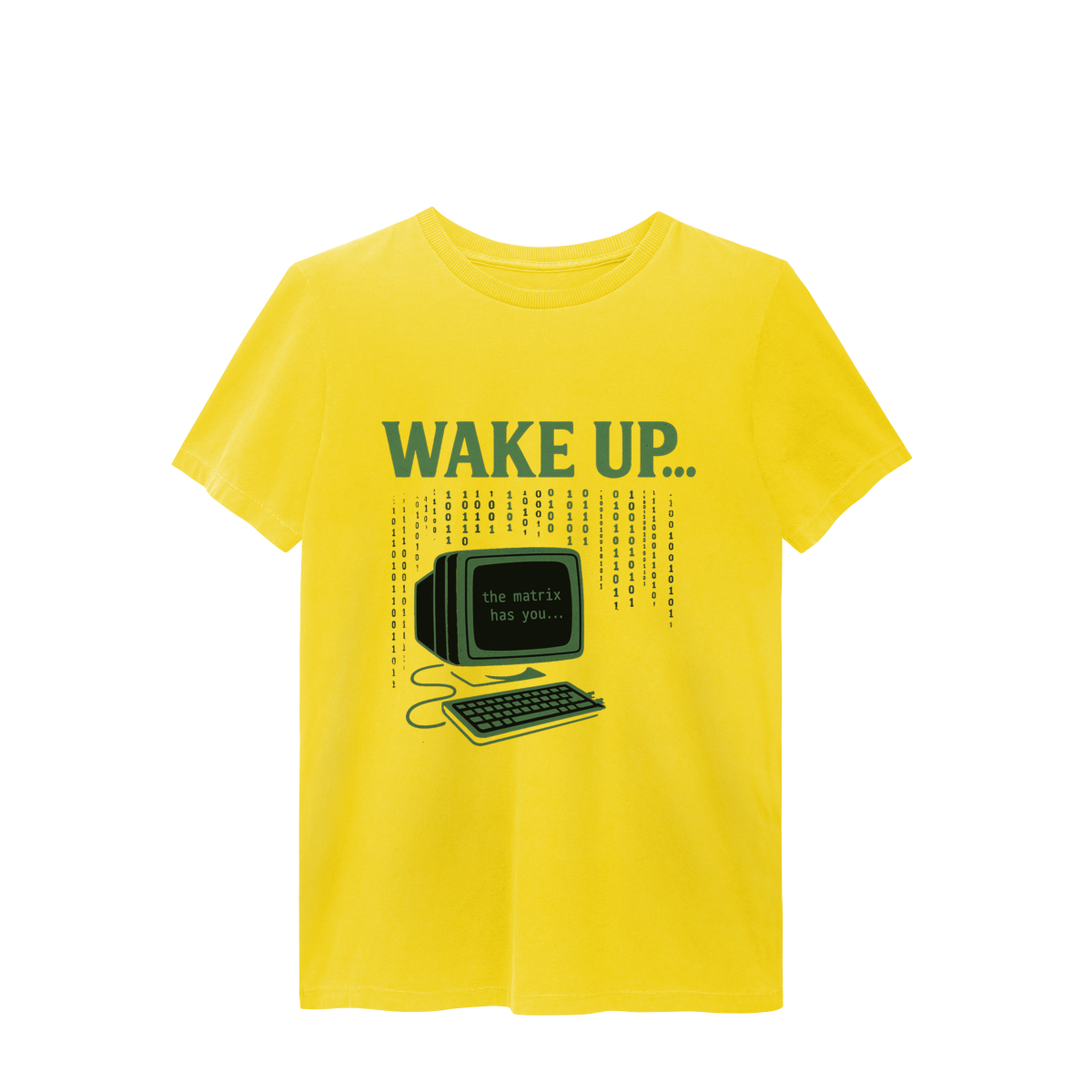 WAKE UP, THE MATRIX HAS YOU Esta estampa é inspirada no filme Matrix e no conceito de despertar da consciência. Ela convida à reflexão sobre rotinas automáticas, distrações constantes e controles invisíveis, provocando um olhar mais atento sobre presença, escolha e liberdade mental.