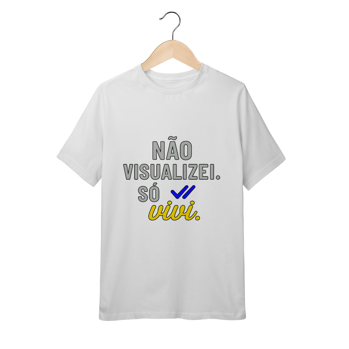 NÃO VISUALIZEI, SÓ VIVI reforça a escolha pela experiência direta em vez da exposição constante. A estampa destaca que crescimento acontece no vivido, não no que é mostrado ou avaliado. Uma peça que propõe menos atenção à opinião dos outros e mais presença no que realmente transforma.