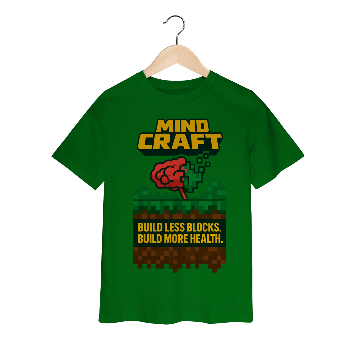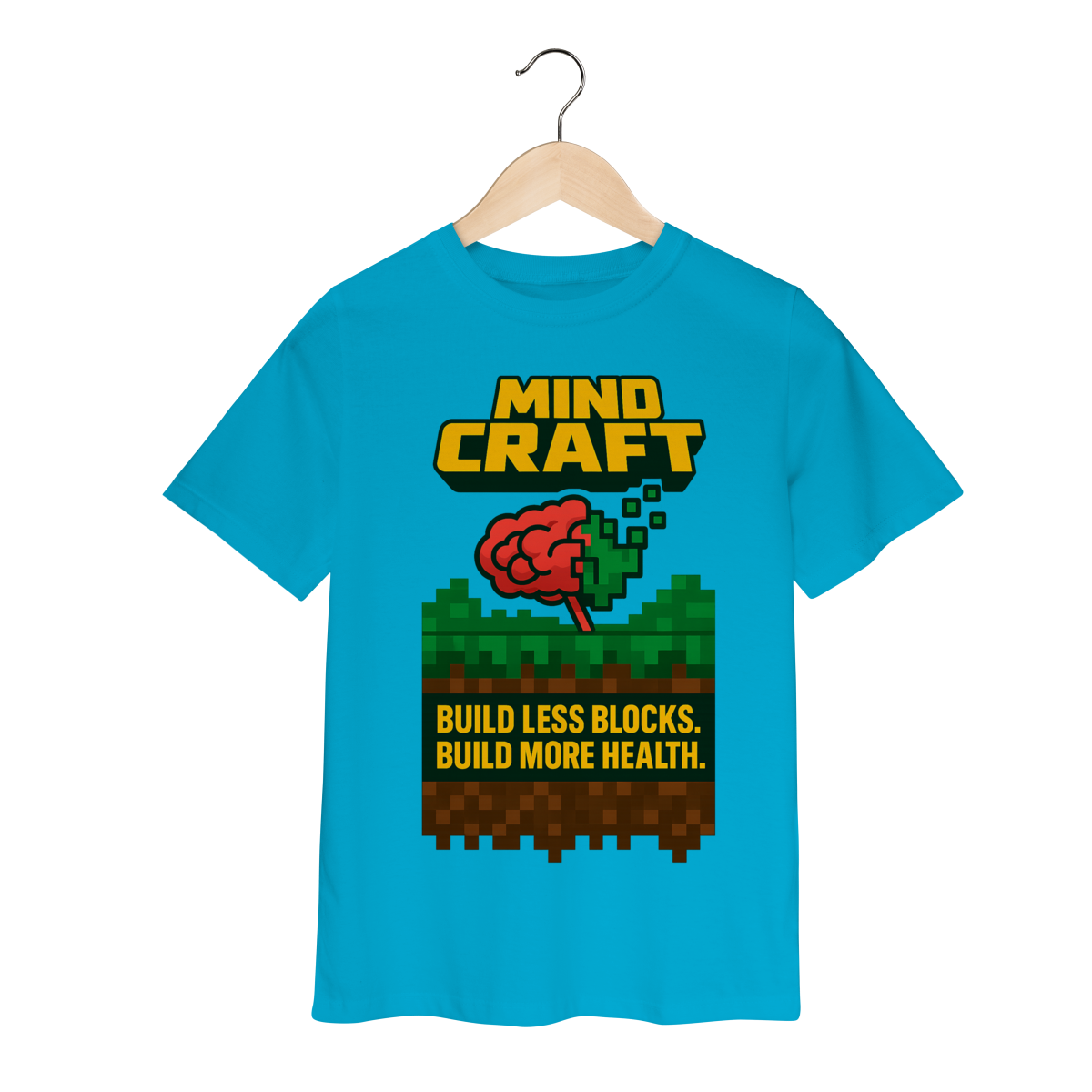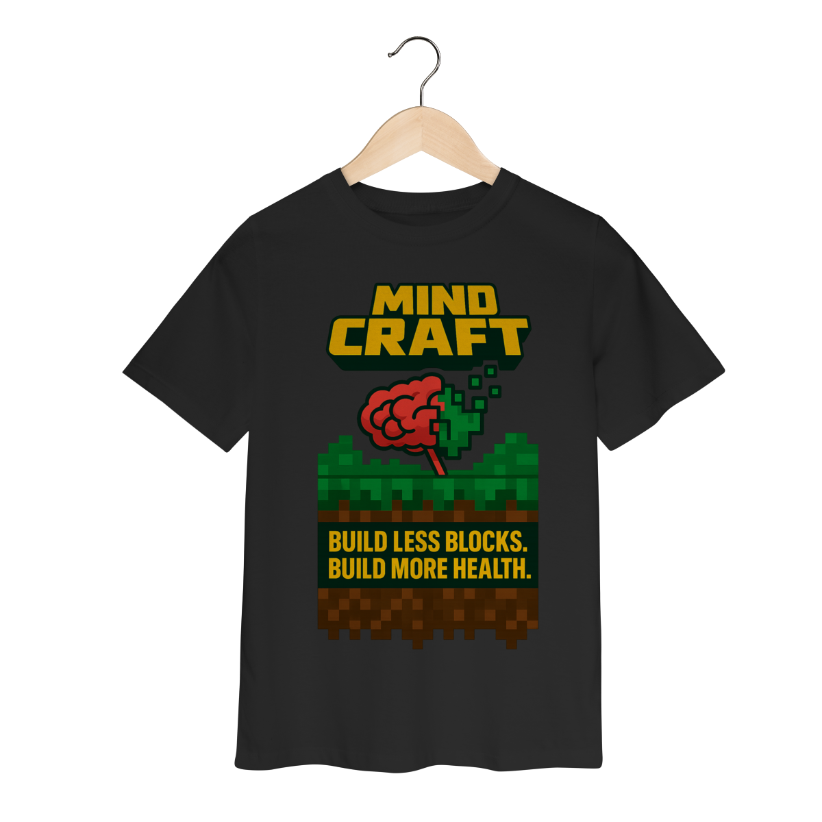 MIND CRAFT transforma o cérebro em um jogo de construção. A estampa mostra que pensar, aprender e imaginar também são habilidades que se constroem bloco por bloco. Inspirada no universo dos games, essa camiseta convida as crianças a criarem, explorarem e desenvolverem a própria mente com curiosidade e autonomia. Uma peça que une diversão e consciência desde cedo, para lembrar que a mente também é um território criativo.