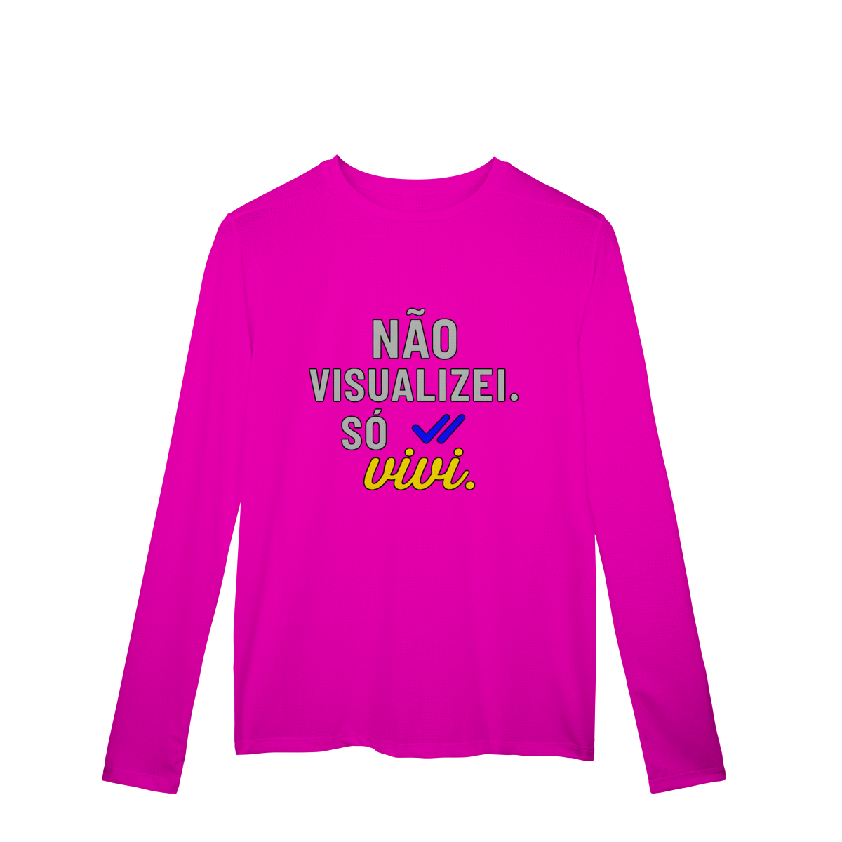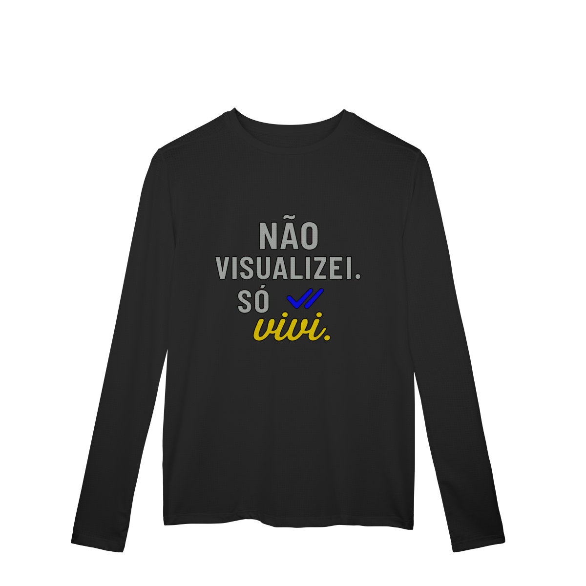 NÃO VISUALIZEI, SÓ VIVI reforça a escolha pela experiência direta em vez da exposição constante. A estampa destaca que crescimento acontece no vivido, não no que é mostrado ou avaliado. Uma peça que propõe menos atenção à opinião dos outros e mais presença no que realmente transforma.