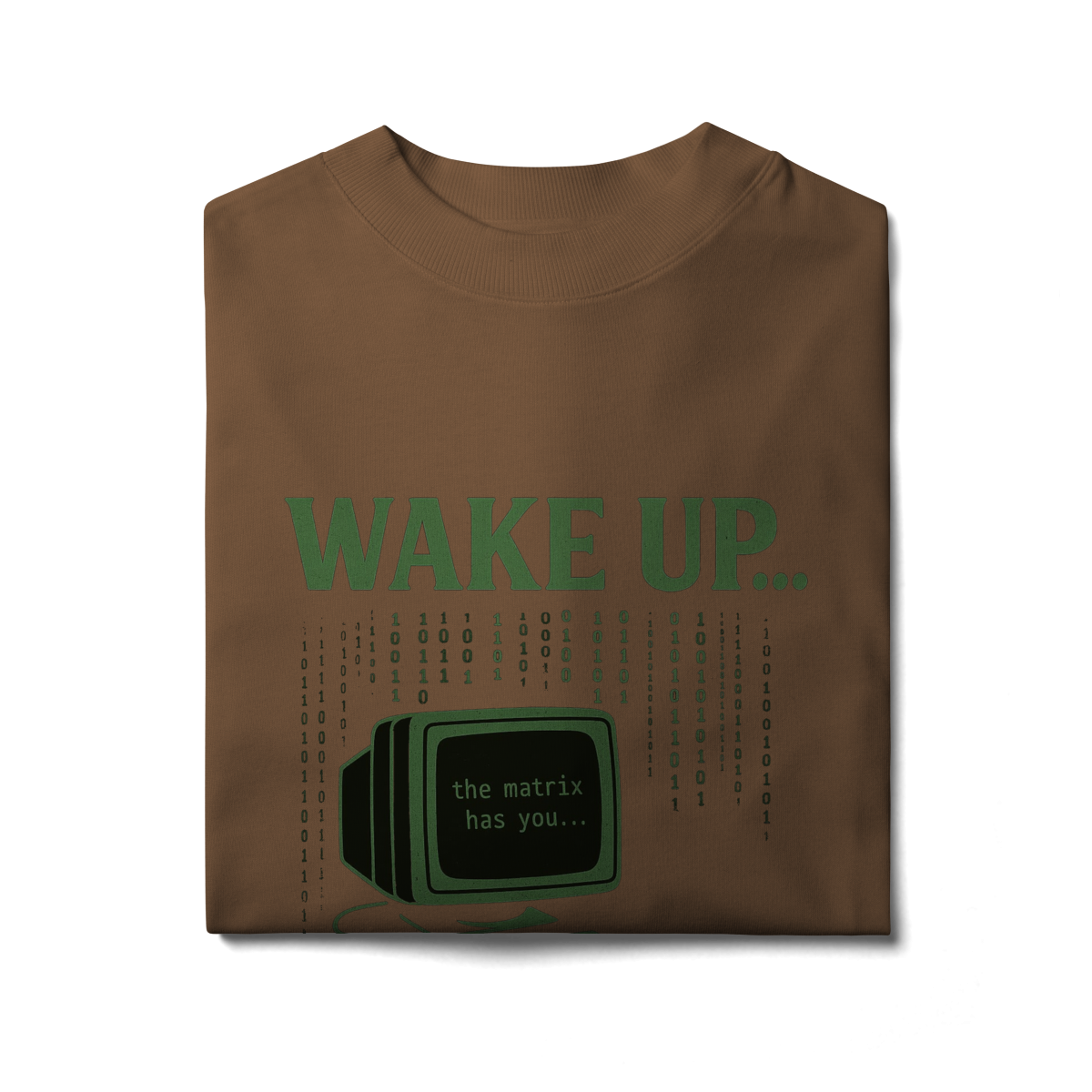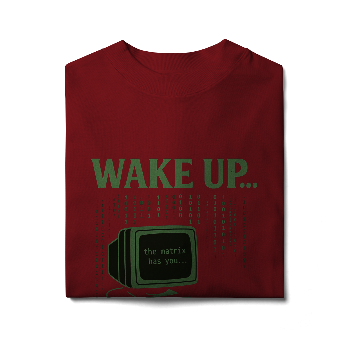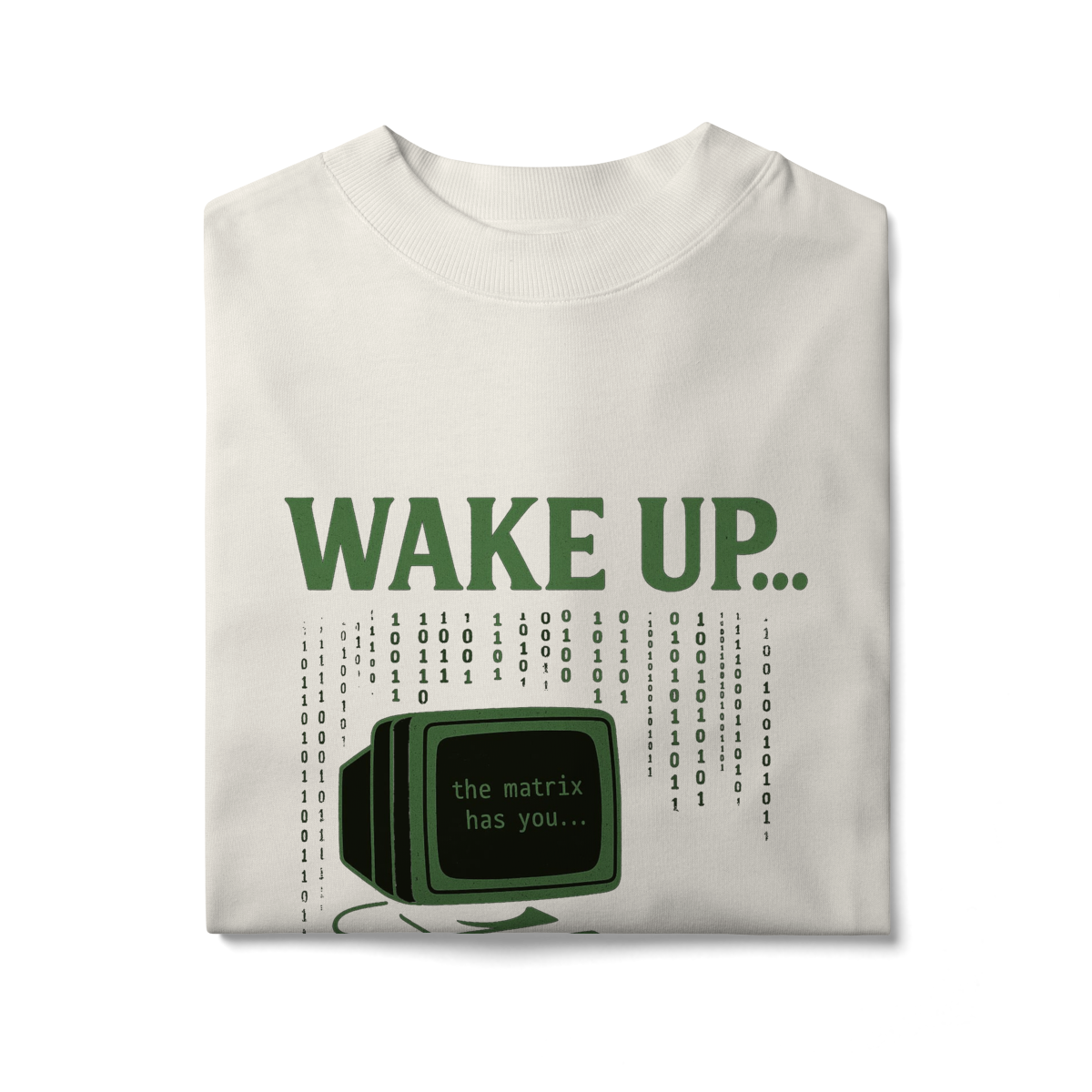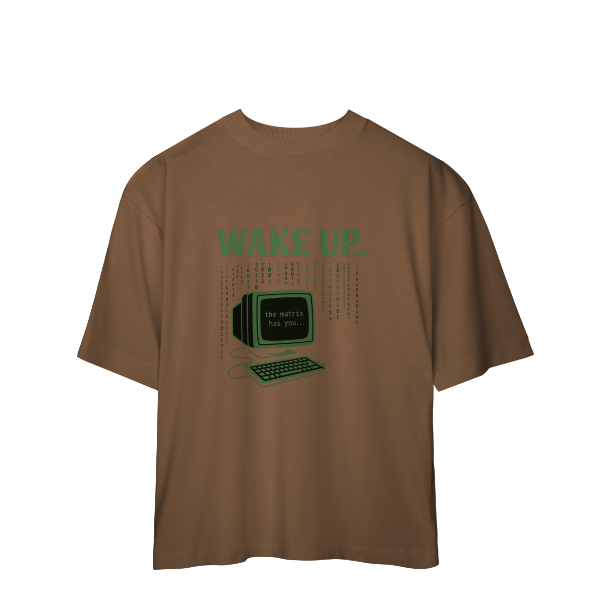 WAKE UP, THE MATRIX HAS YOU Esta estampa é inspirada no filme Matrix e no conceito de despertar da consciência. Ela convida à reflexão sobre rotinas automáticas, distrações constantes e controles invisíveis, provocando um olhar mais atento sobre presença, escolha e liberdade mental.