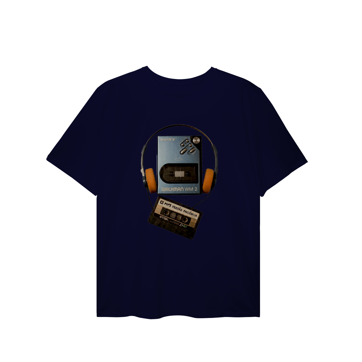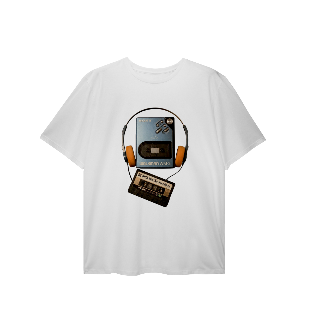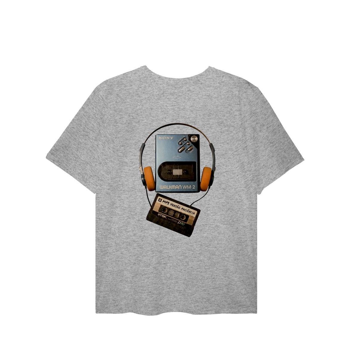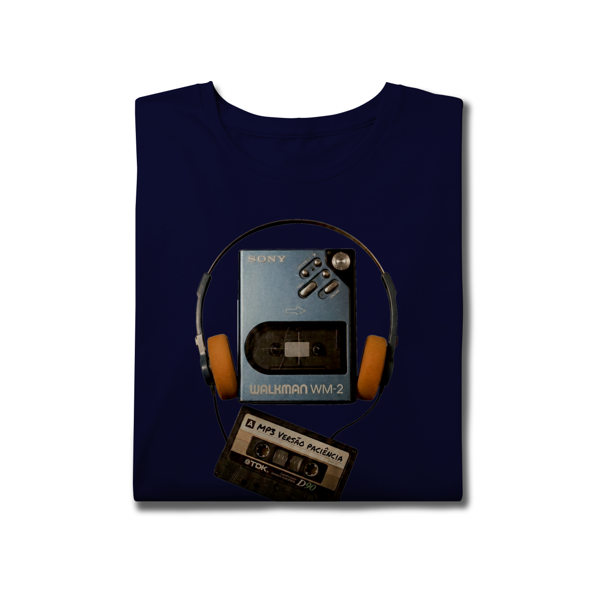 “MP3 – versão paciência” é o choque entre dois mundos: a pressa digital e a força de quem sabia esperar. A fita no walkman lembra que nem tudo era instantâneo — e exatamente por isso tinha valor. Esta estampa é um manifesto silencioso contra o imediatismo e a favor da presença real. Vista resiliência. Vista Presença Offline.