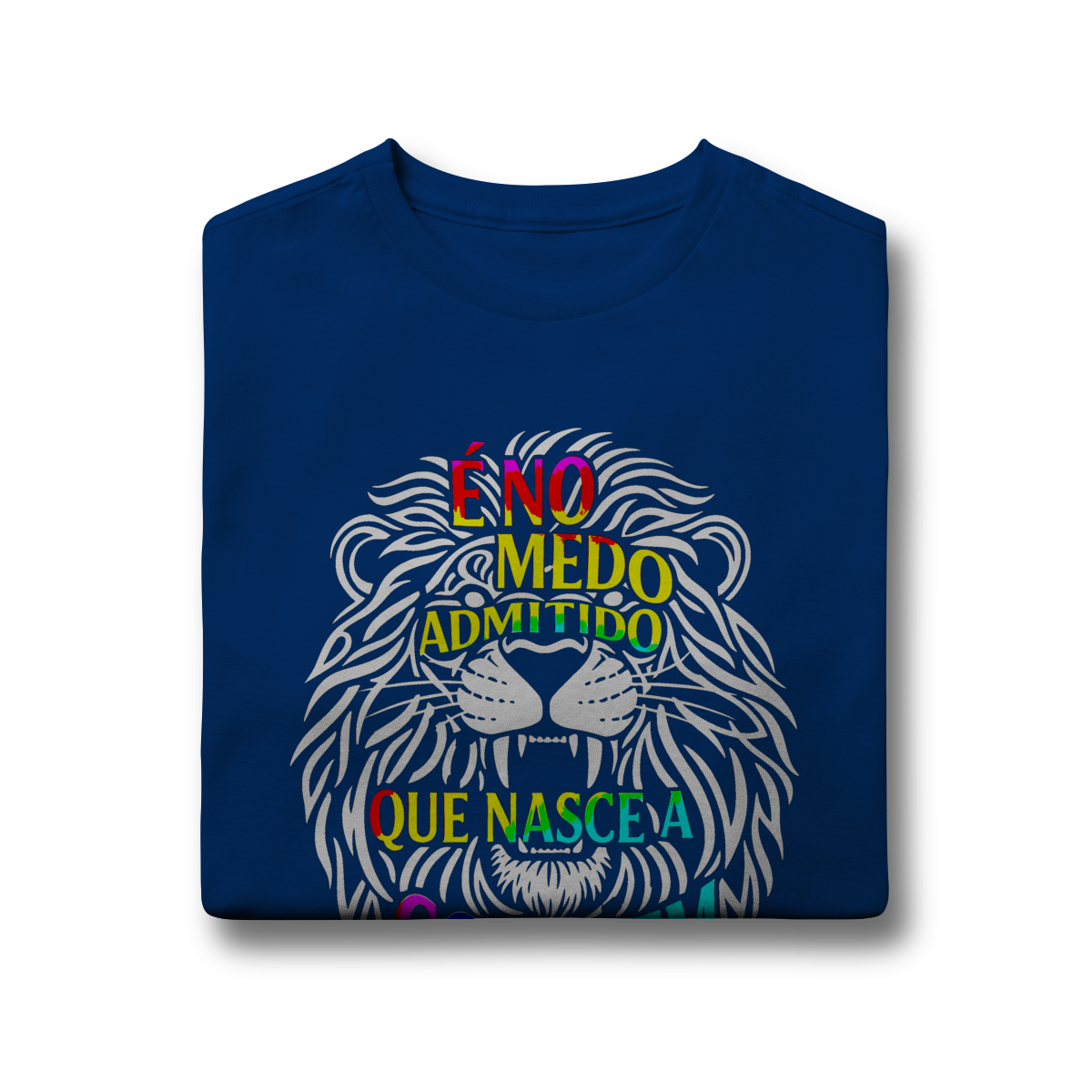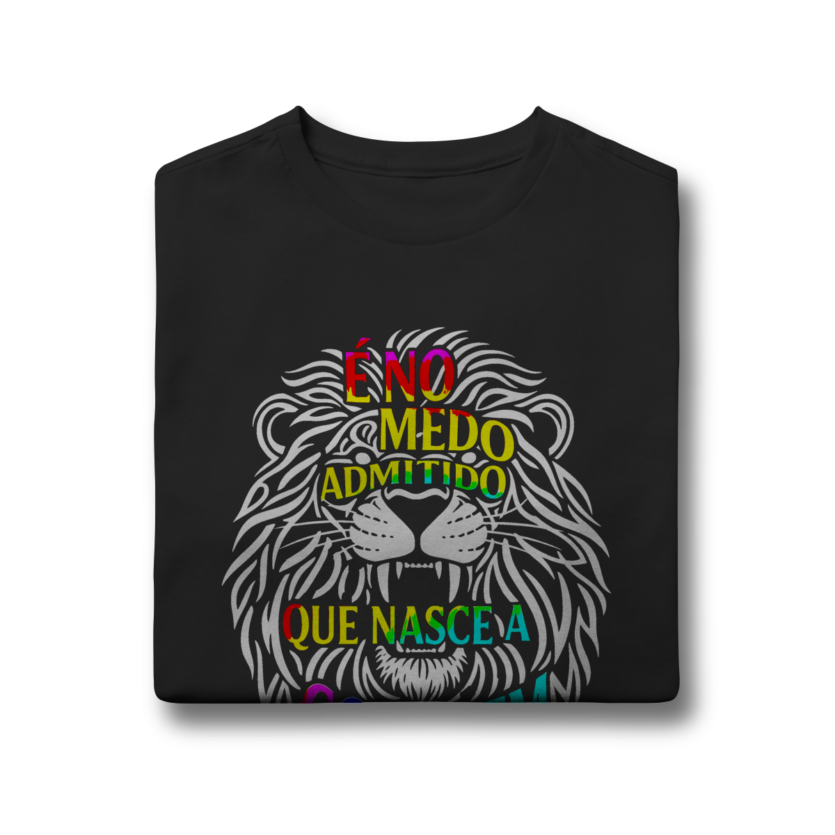 É NO MEDO ADMITIDO QUE NASCE A CORAGEM = A coragem não surge da ausência de medo, mas da decisão de reconhecê-lo. O leão formado por palavras simboliza essa transformação consciente que acontece quando escolhemos encarar desconfortos e amadurecer. Inspirada no livro O menino que vivia entre telas e pensamentos, esta estampa é um convite a enfrentar emoções, crescer com autenticidade e viver com verdadeira presença.