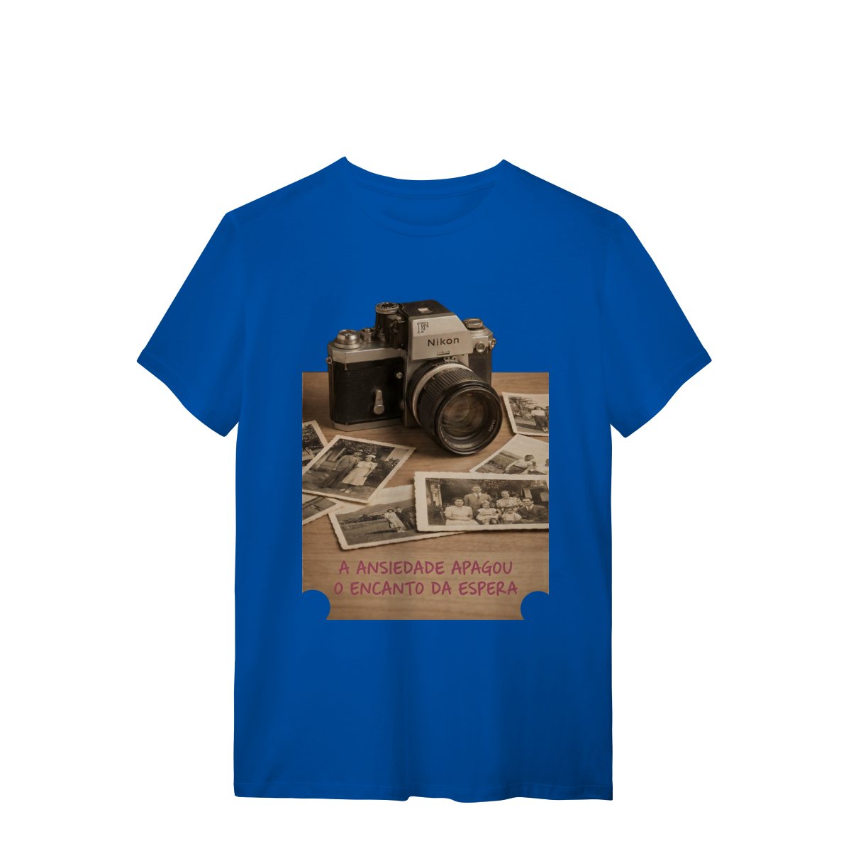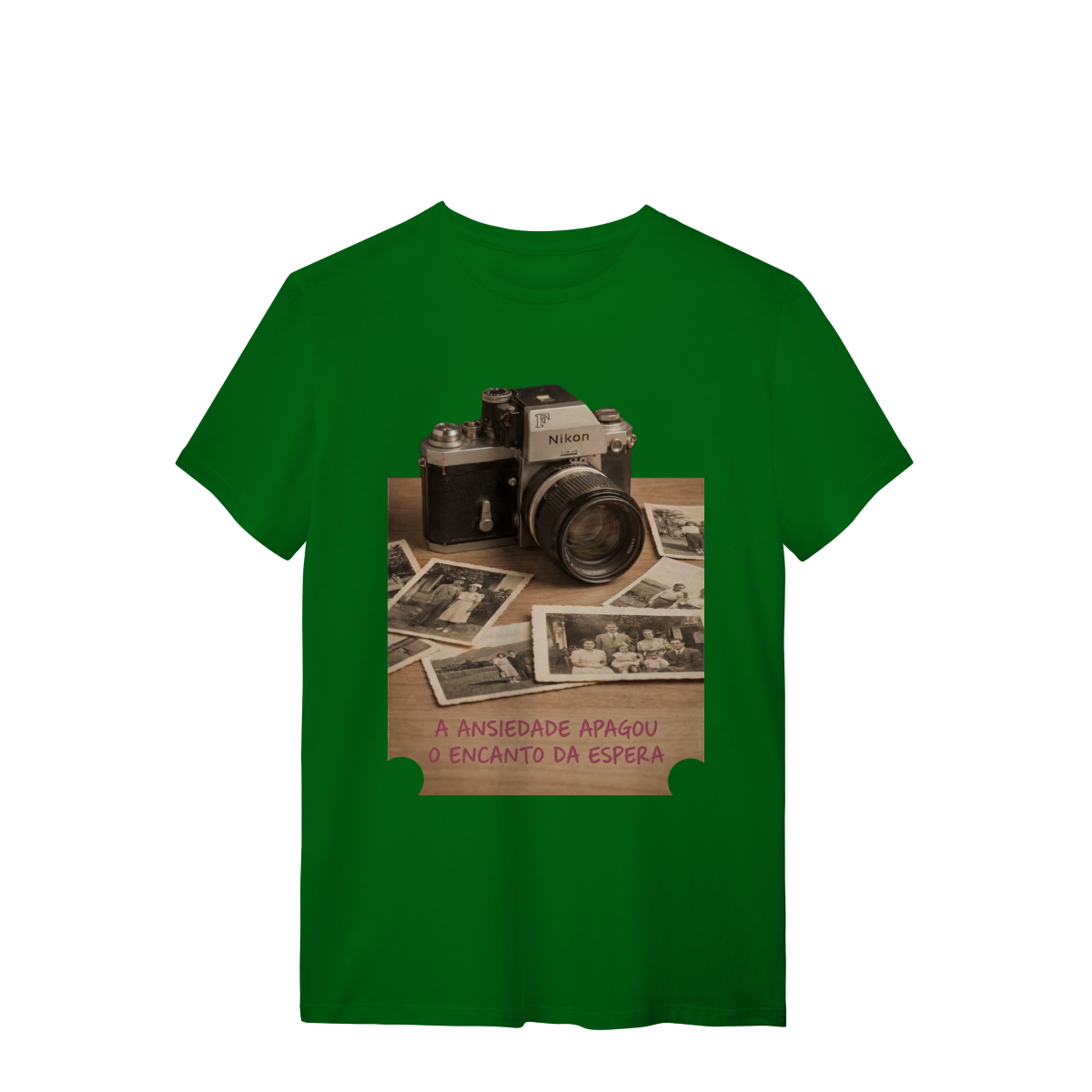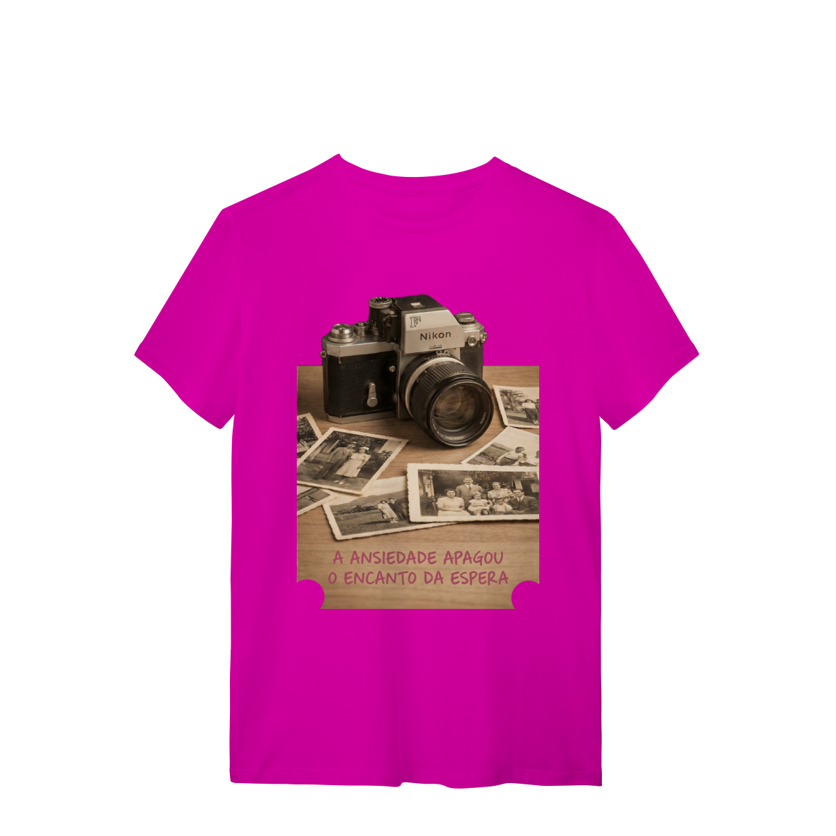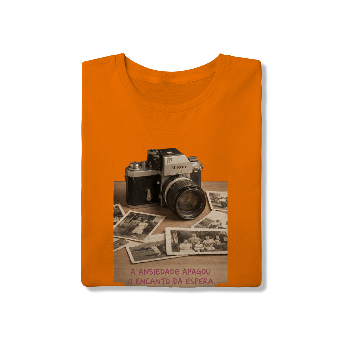 “O Encanto da Espera” resgata um tempo em que cada clique carregava expectativa, silêncio e significado. A câmera antiga e as fotos amareladas lembram que a beleza não estava na velocidade, mas na revelação. Esta estampa é um manifesto contra o imediatismo e a favor de memórias vividas com presença. Vista o tempo ao seu favor.