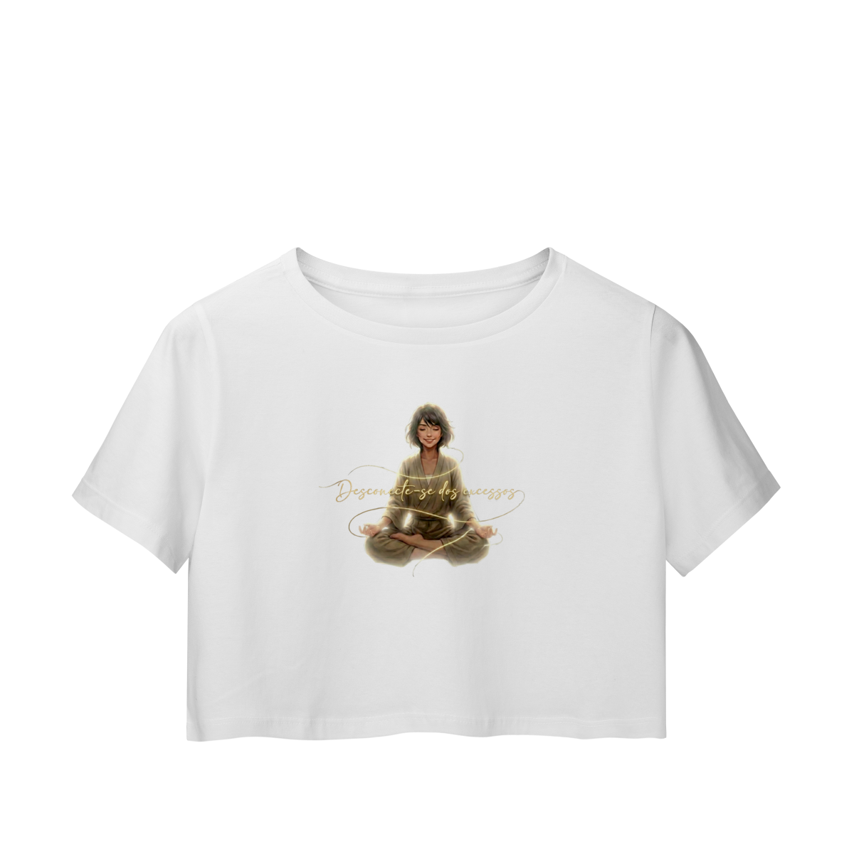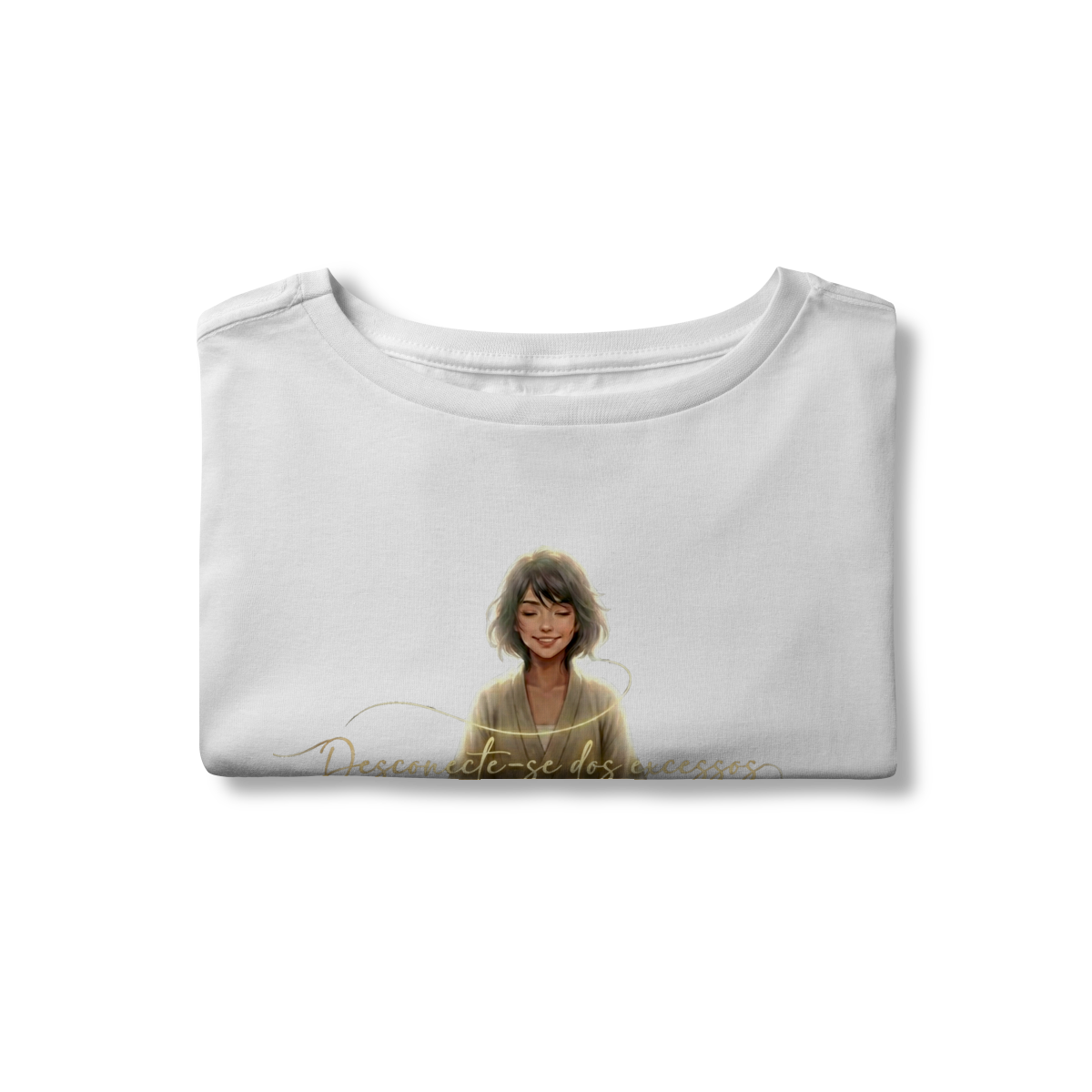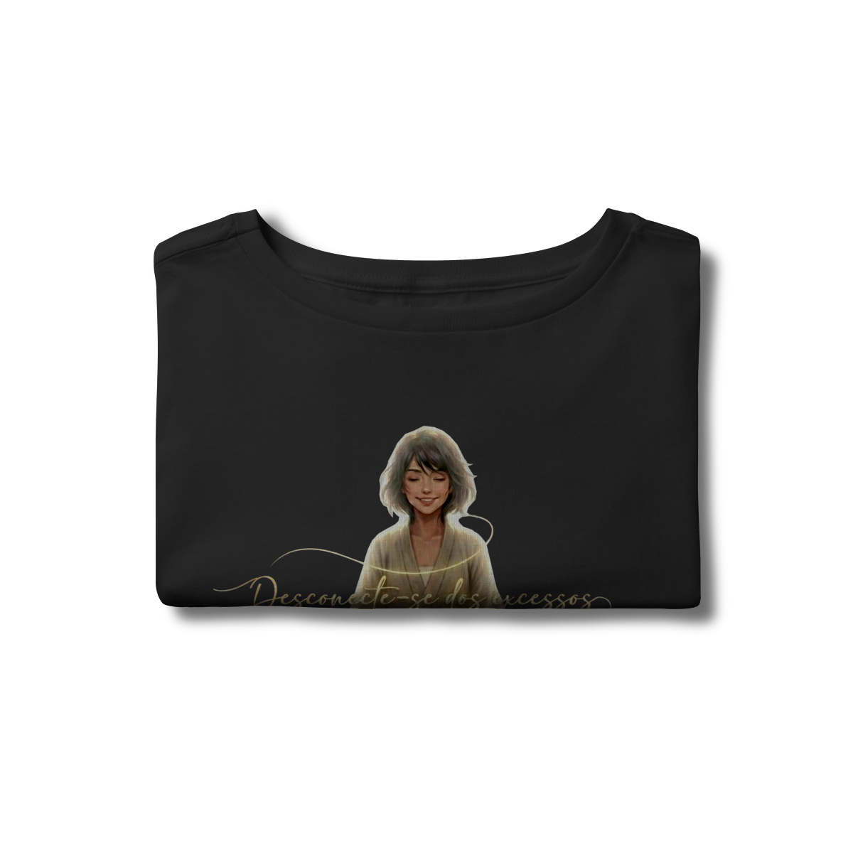 DESCONECTE-SE DOS EXCESSOS convida a interromper o fluxo contínuo de estímulos. A estampa aponta para a redução do ruído como condição para clareza e presença. Uma peça que lembra que menos distração abre espaço para aquilo que sustenta sentido, profundidade e direção.