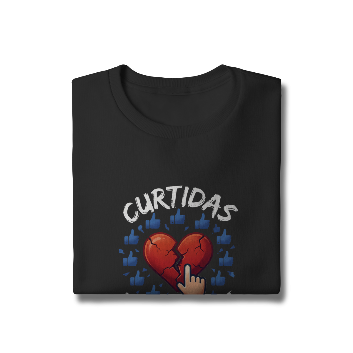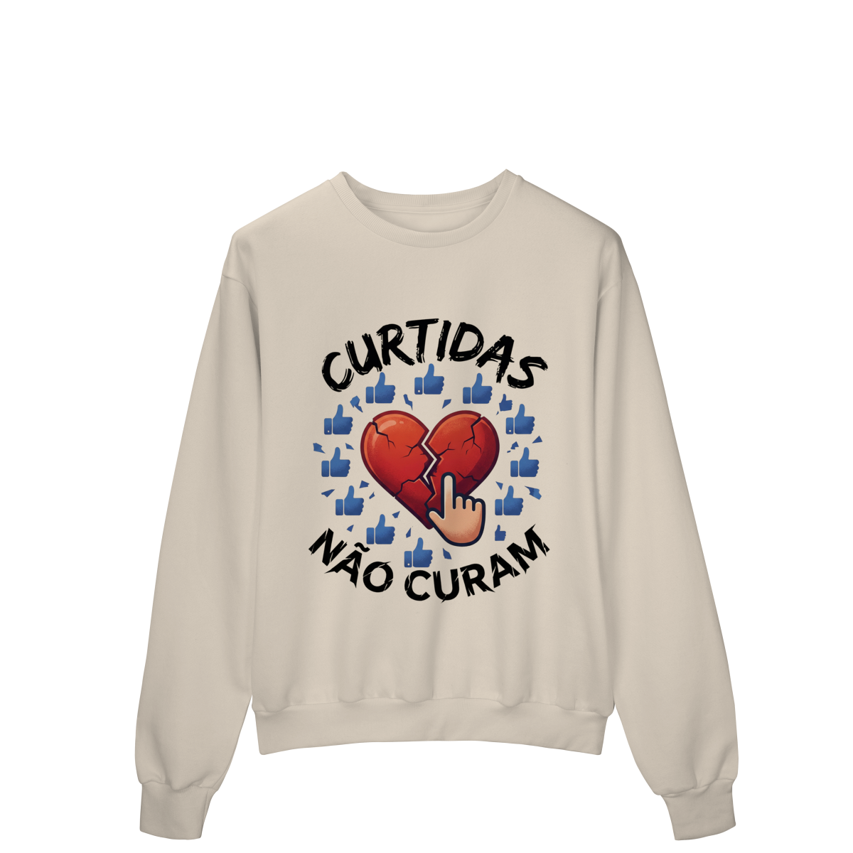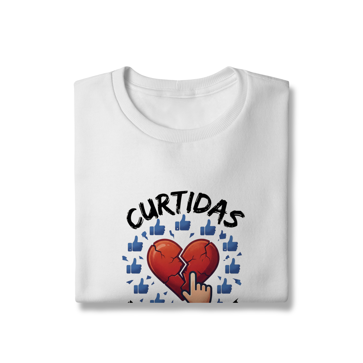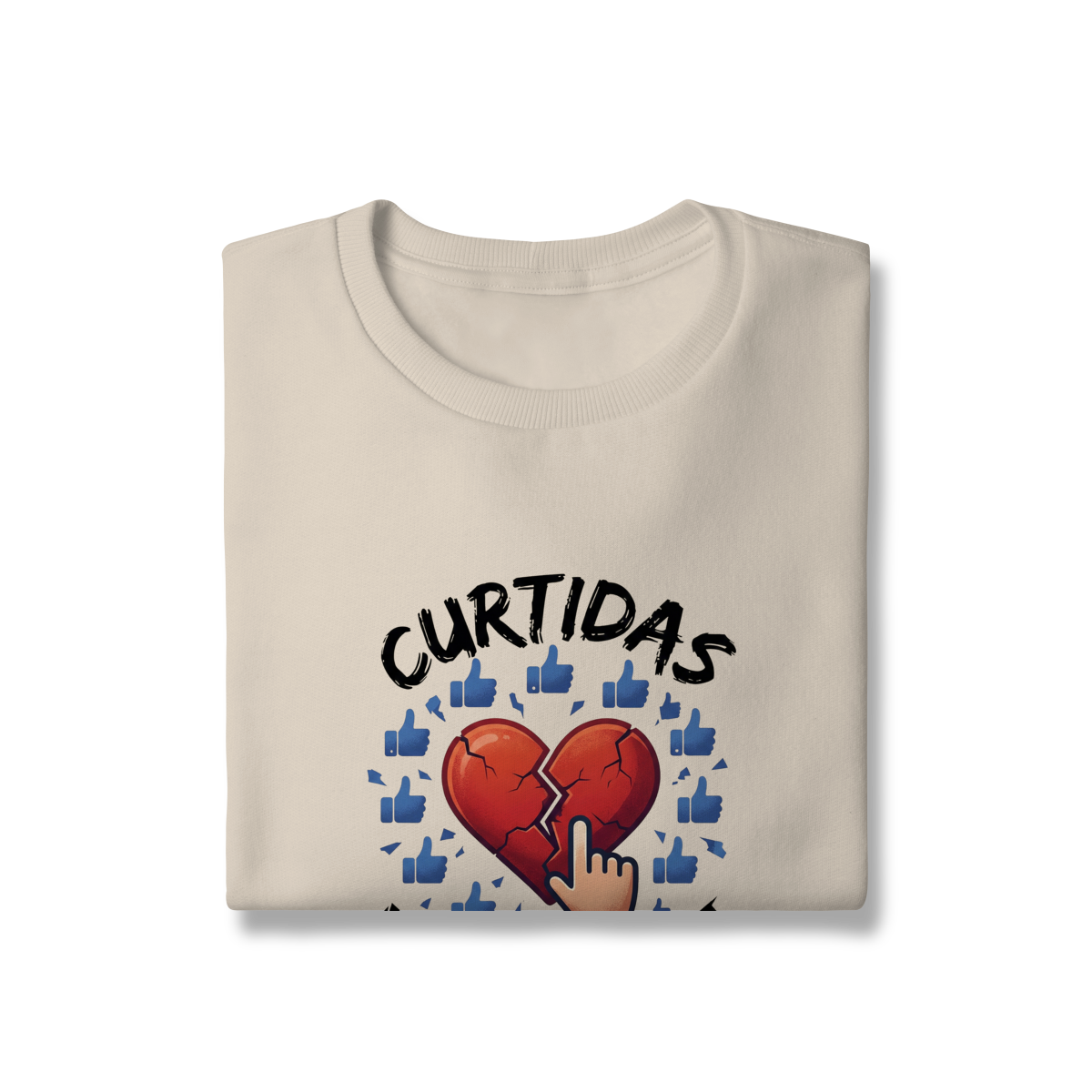 CURTIDAS NÃO CURAM  expõe o contraste entre validação digital e cuidado real. A estampa lembra que números não acolhem, não escutam e não sustentam processos internos. Uma peça que convida à presença e ao contato genuíno, para reforçar que saúde emocional não se mede em engajamento.