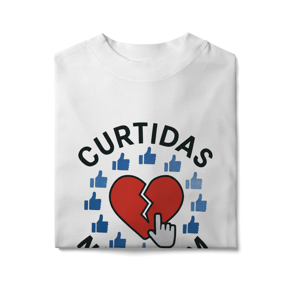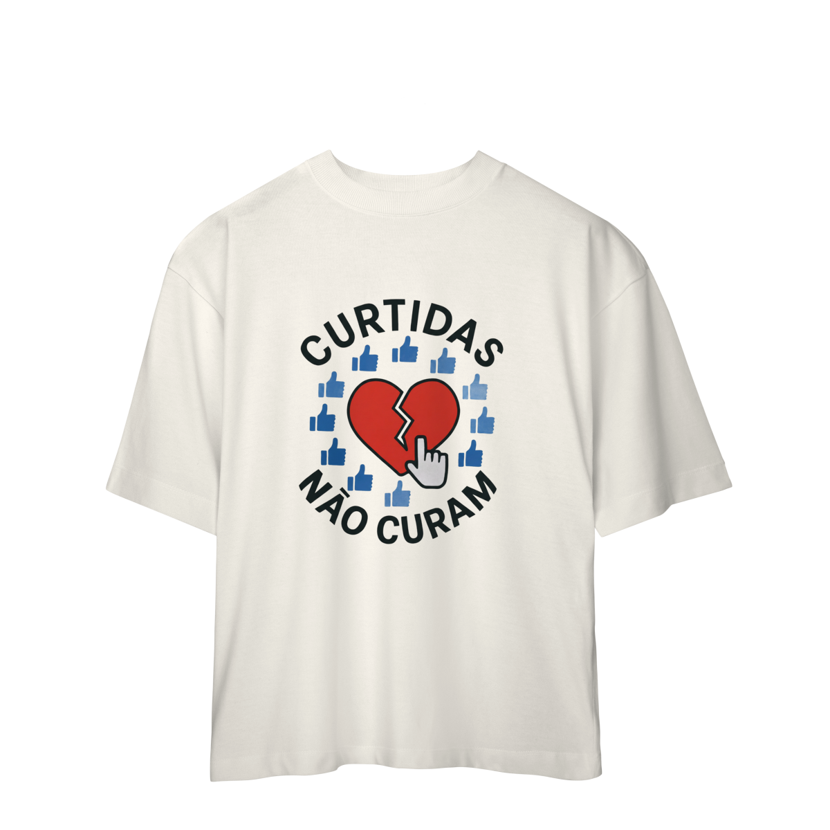 CURTIDAS NÃO CURAM  expõe o contraste entre validação digital e cuidado real. A estampa lembra que números não acolhem, não escutam e não sustentam processos internos. Uma peça que convida à presença e ao contato genuíno, para reforçar que saúde emocional não se mede em engajamento.