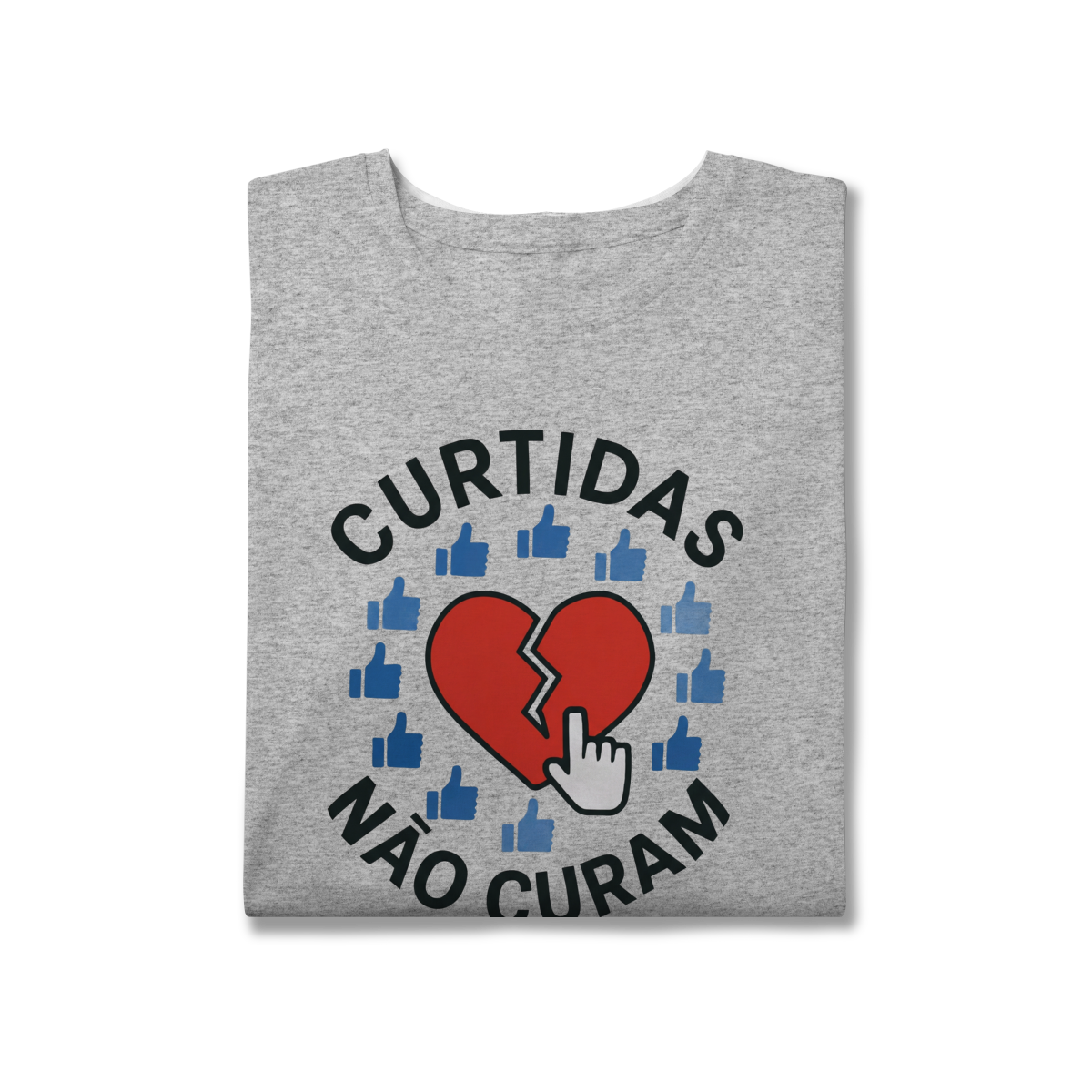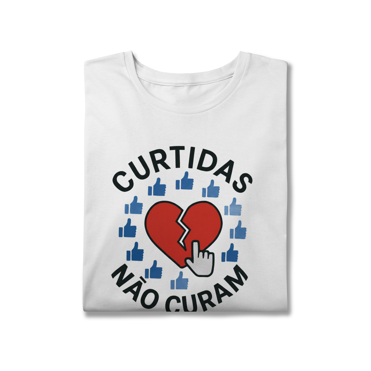 CURTIDAS NÃO CURAM  expõe o contraste entre validação digital e cuidado real. A estampa lembra que números não acolhem, não escutam e não sustentam processos internos. Uma peça que convida à presença e ao contato genuíno, para reforçar que saúde emocional não se mede em engajamento.