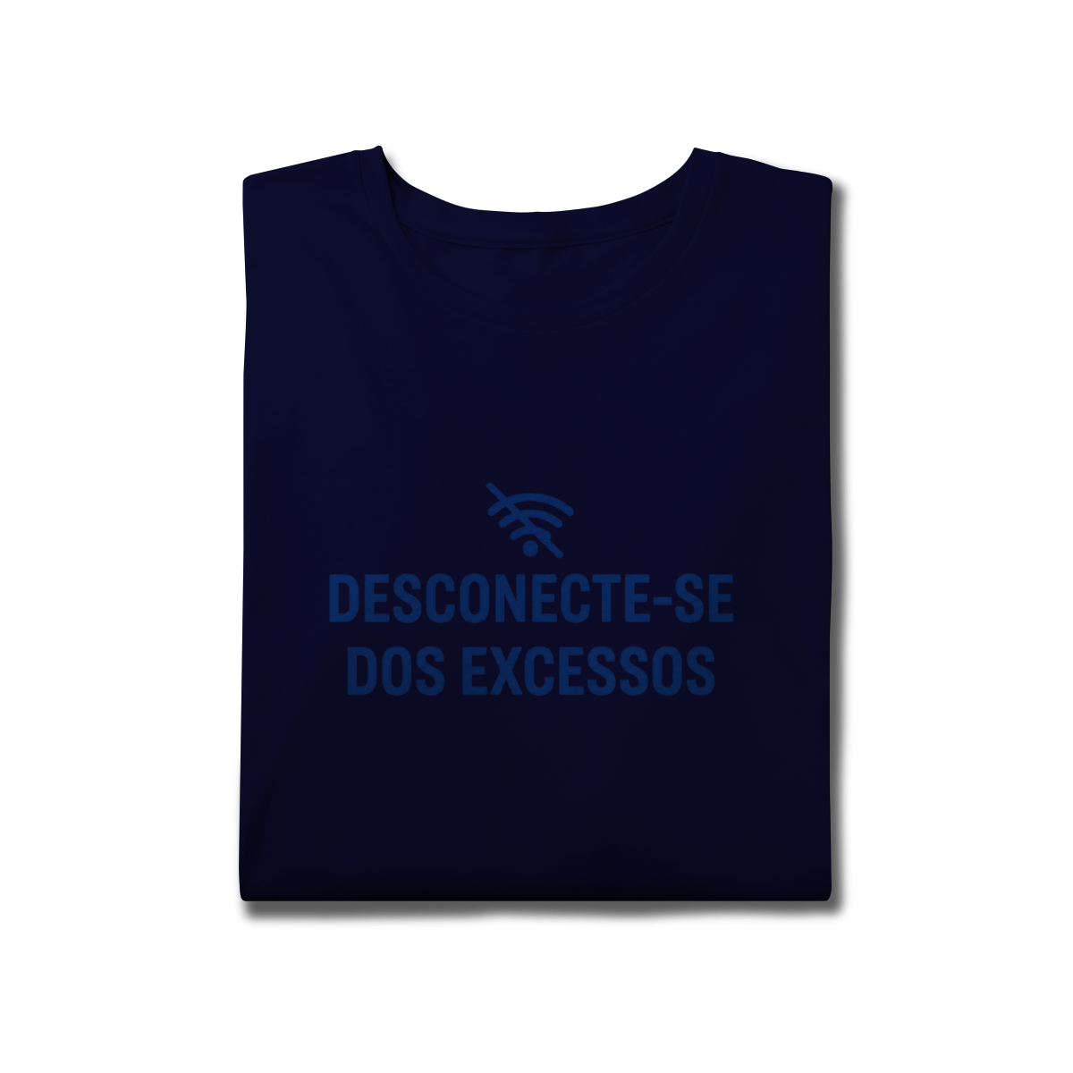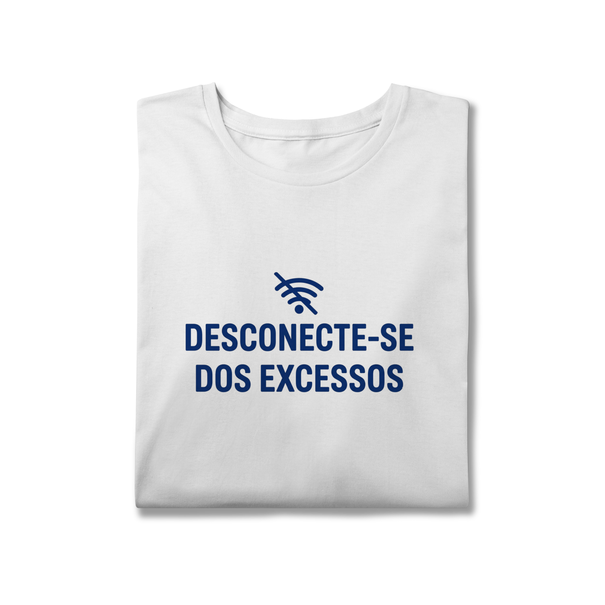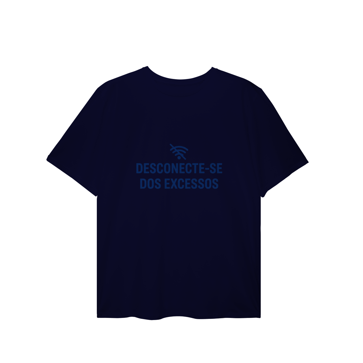 DESCONECTE-SE DOS EXCESSOS convida a interromper o fluxo contínuo de estímulos. A estampa aponta para a redução do ruído como condição para clareza e presença. Uma peça que lembra que menos distração abre espaço para aquilo que sustenta sentido, profundidade e direção.