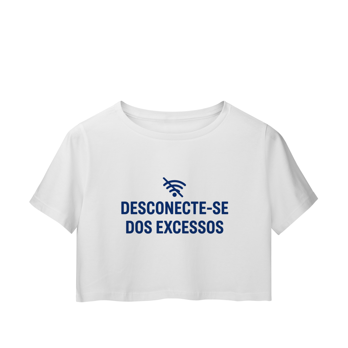 DESCONECTE-SE DOS EXCESSOS convida a interromper o fluxo contínuo de estímulos. A estampa aponta para a redução do ruído como condição para clareza e presença. Uma peça que lembra que menos distração abre espaço para aquilo que sustenta sentido, profundidade e direção.