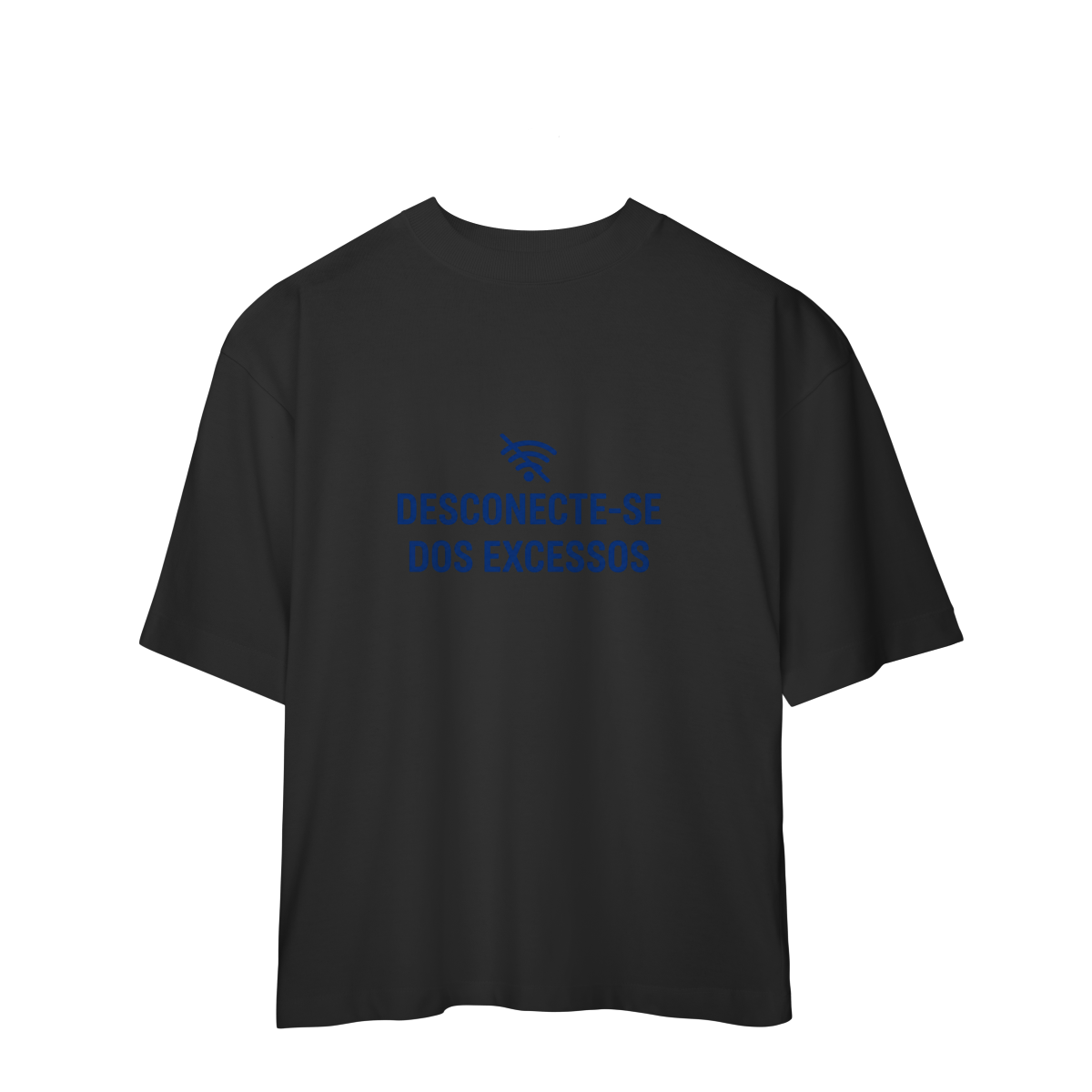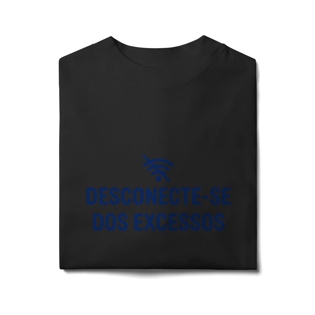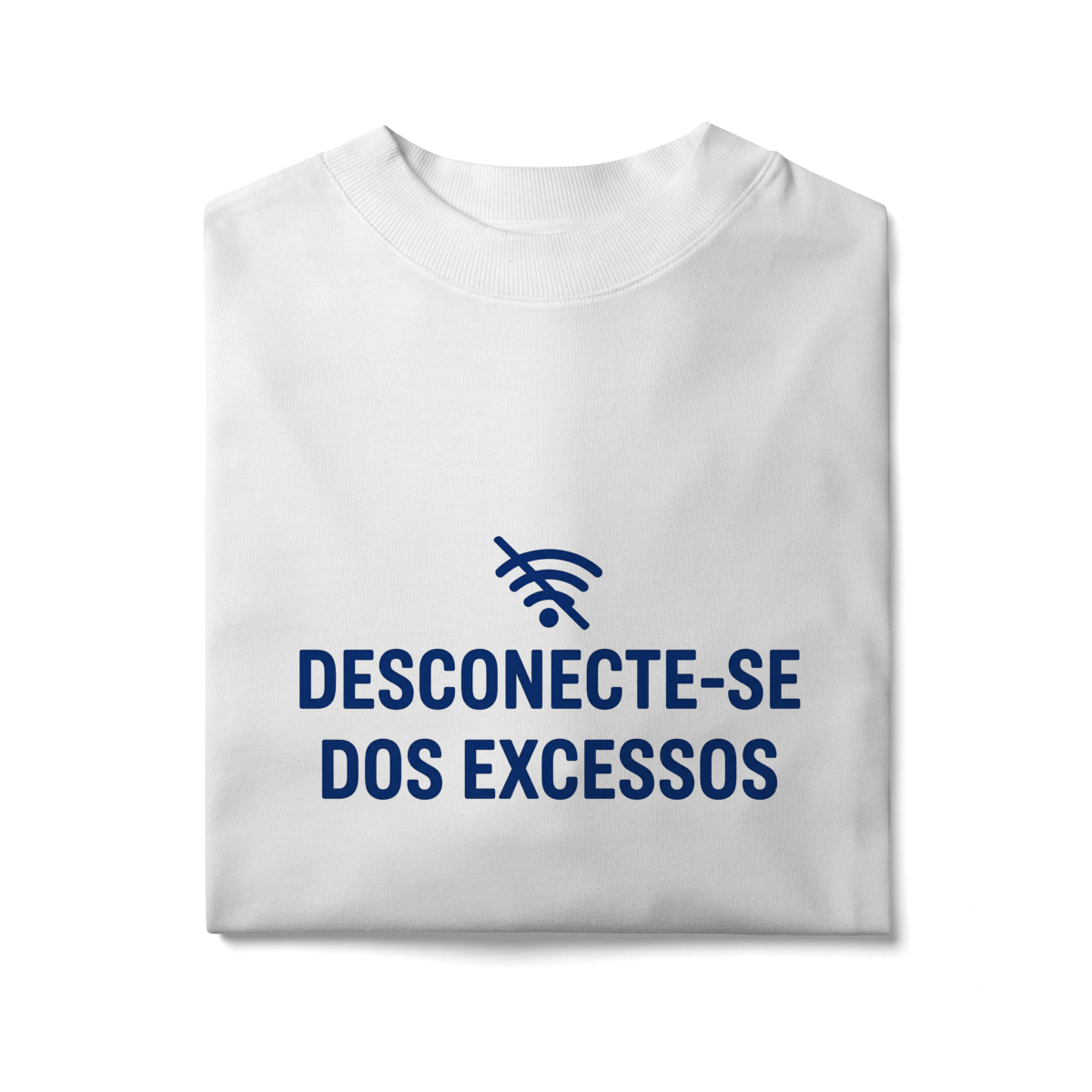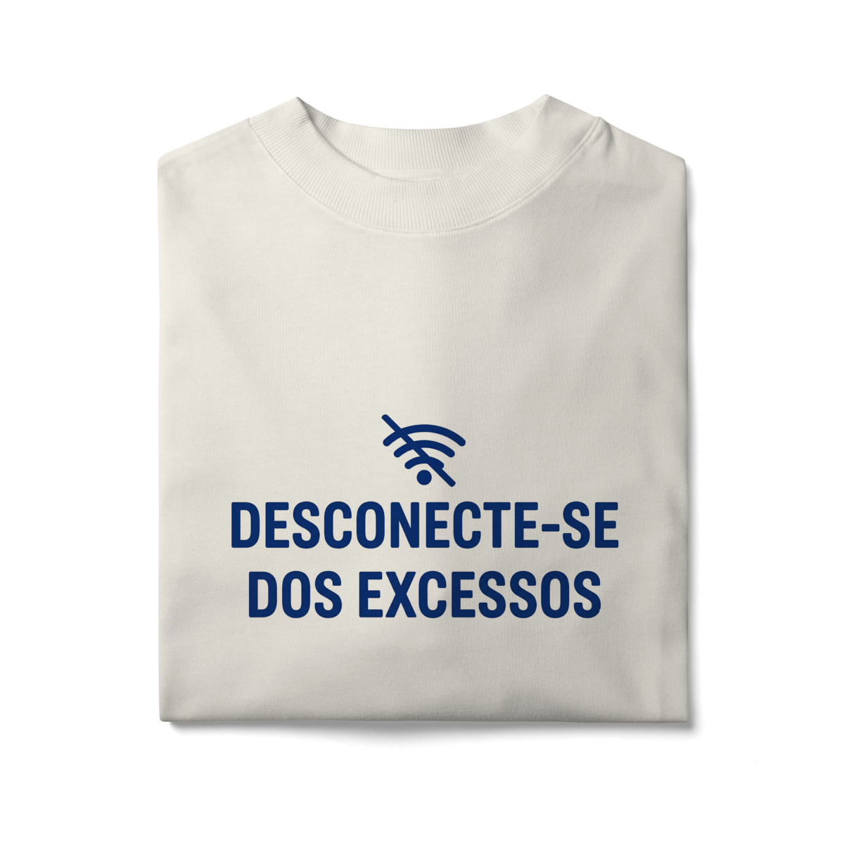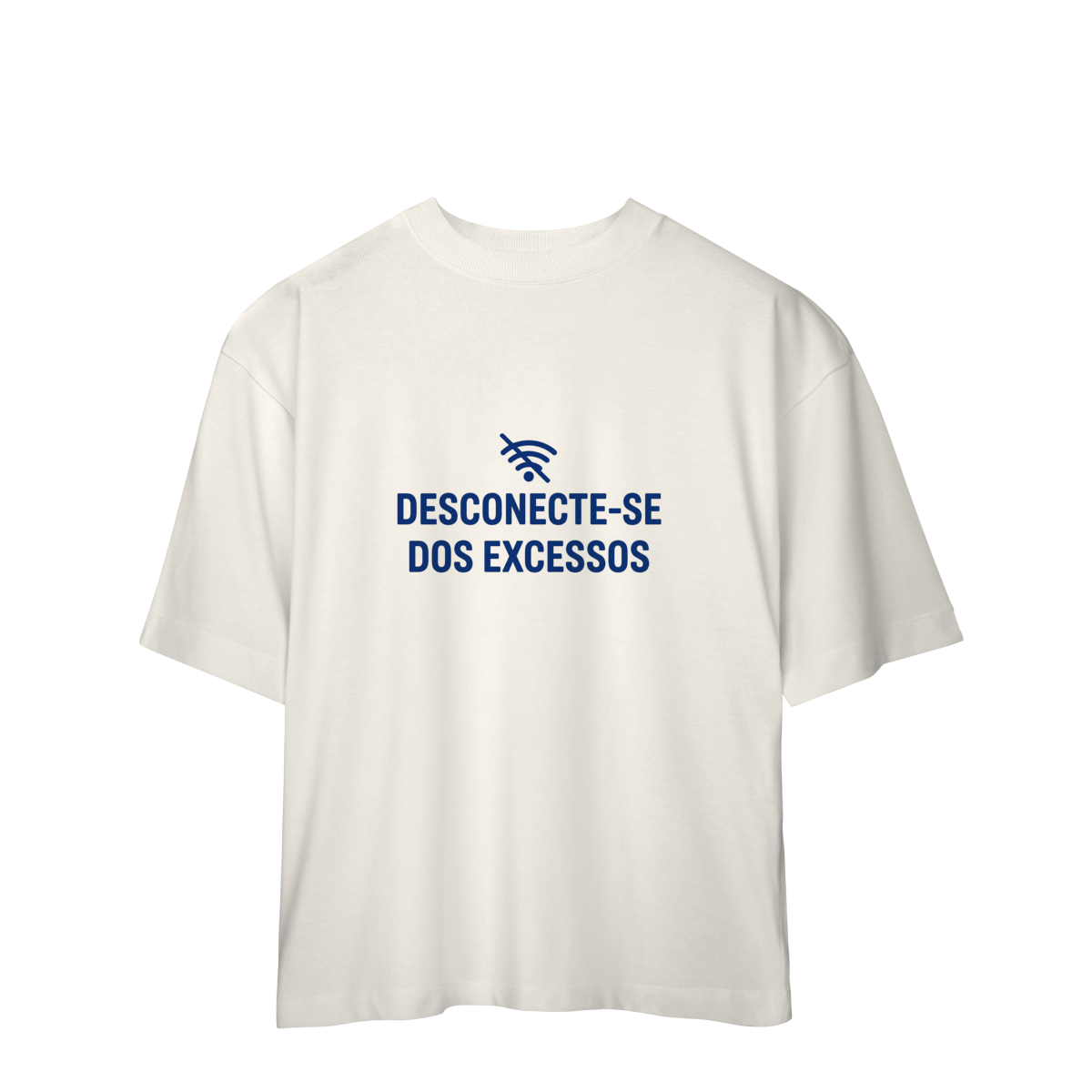 DESCONECTE-SE DOS EXCESSOS convida a interromper o fluxo contínuo de estímulos. A estampa aponta para a redução do ruído como condição para clareza e presença. Uma peça que lembra que menos distração abre espaço para aquilo que sustenta sentido, profundidade e direção.