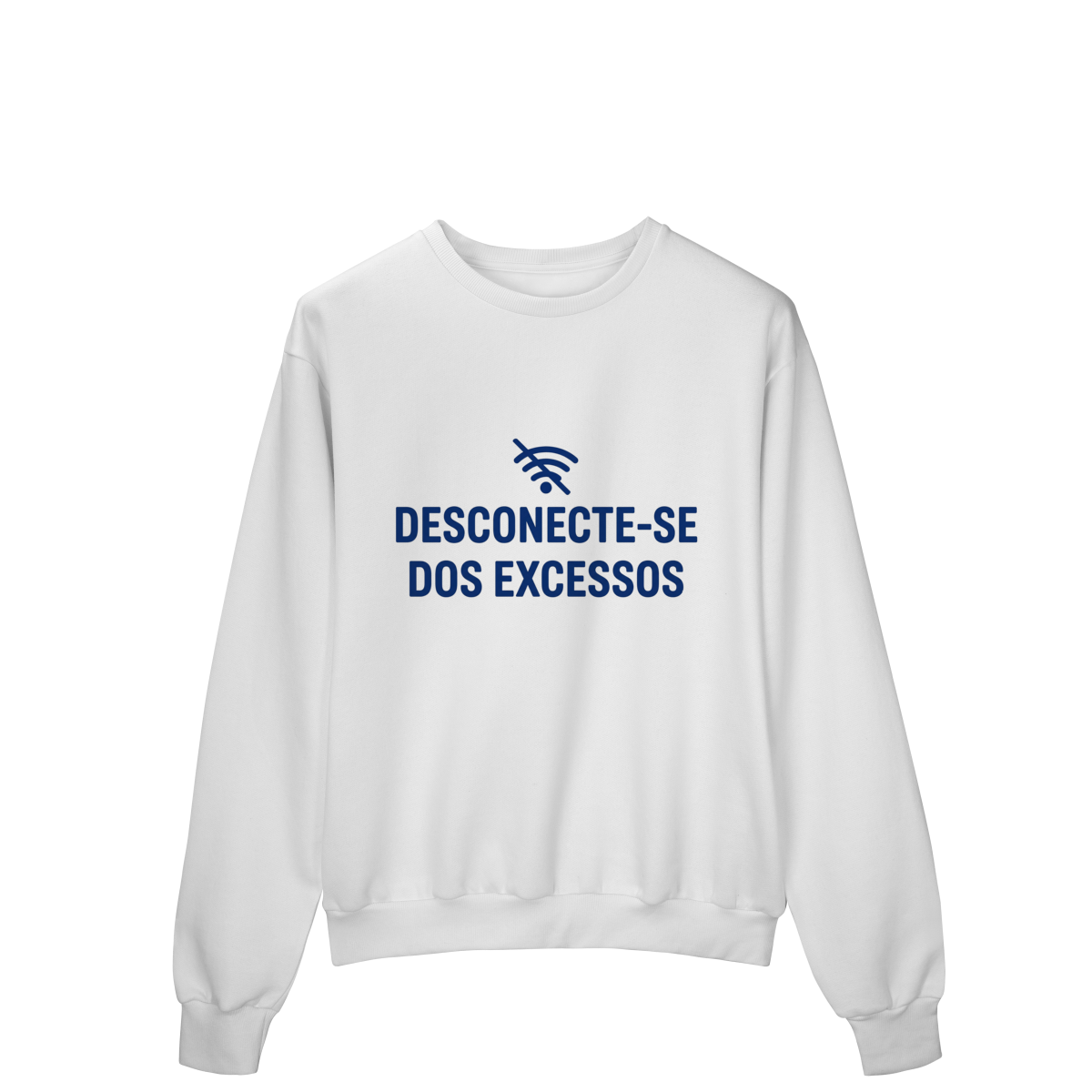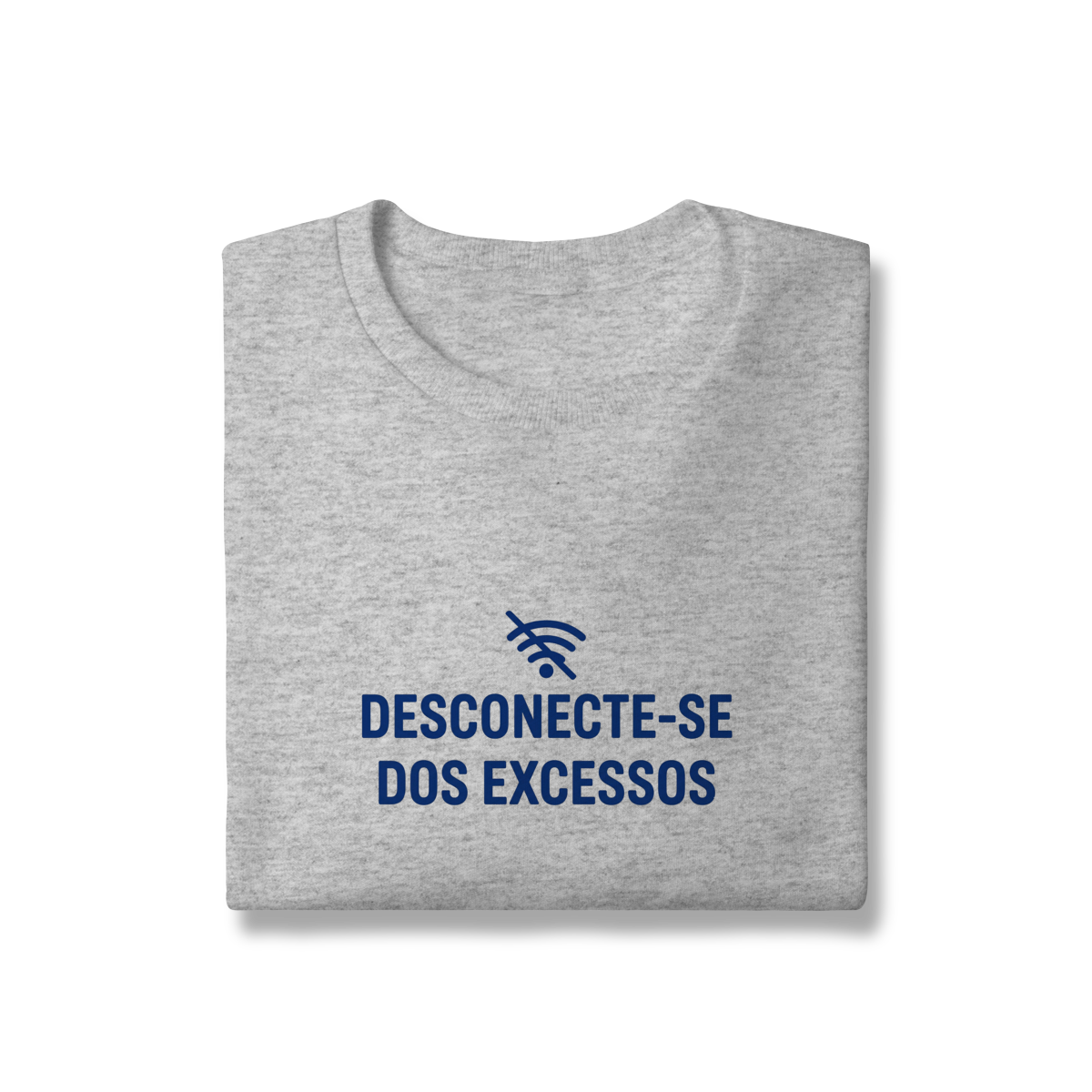 DESCONECTE-SE DOS EXCESSOS convida a interromper o fluxo contínuo de estímulos. A estampa aponta para a redução do ruído como condição para clareza e presença. Uma peça que lembra que menos distração abre espaço para aquilo que sustenta sentido, profundidade e direção.
