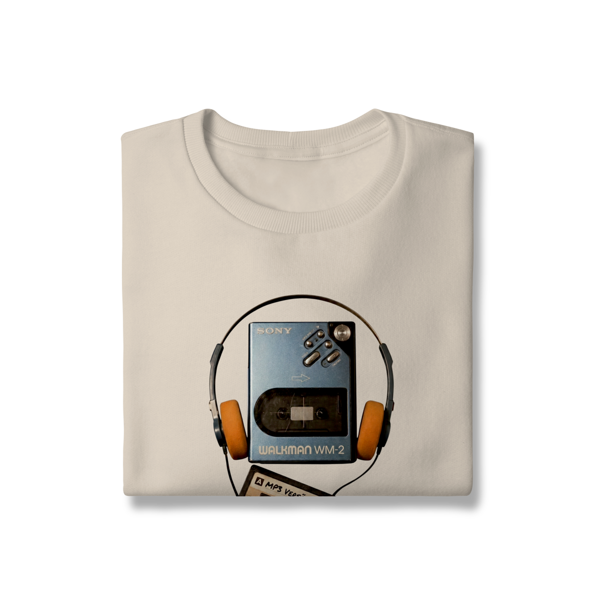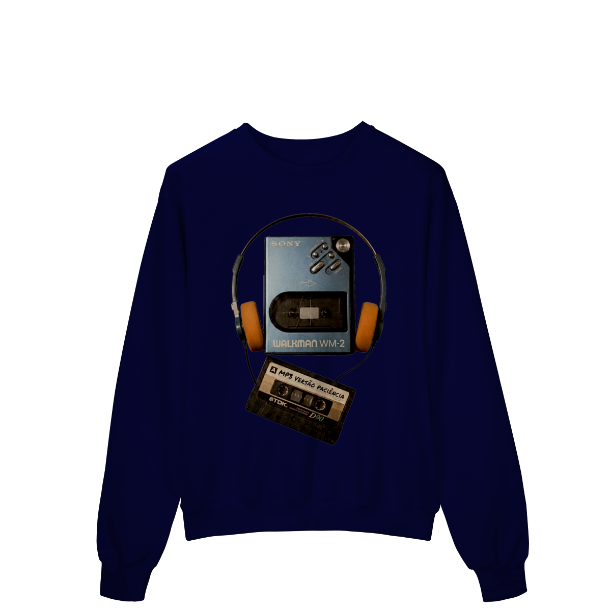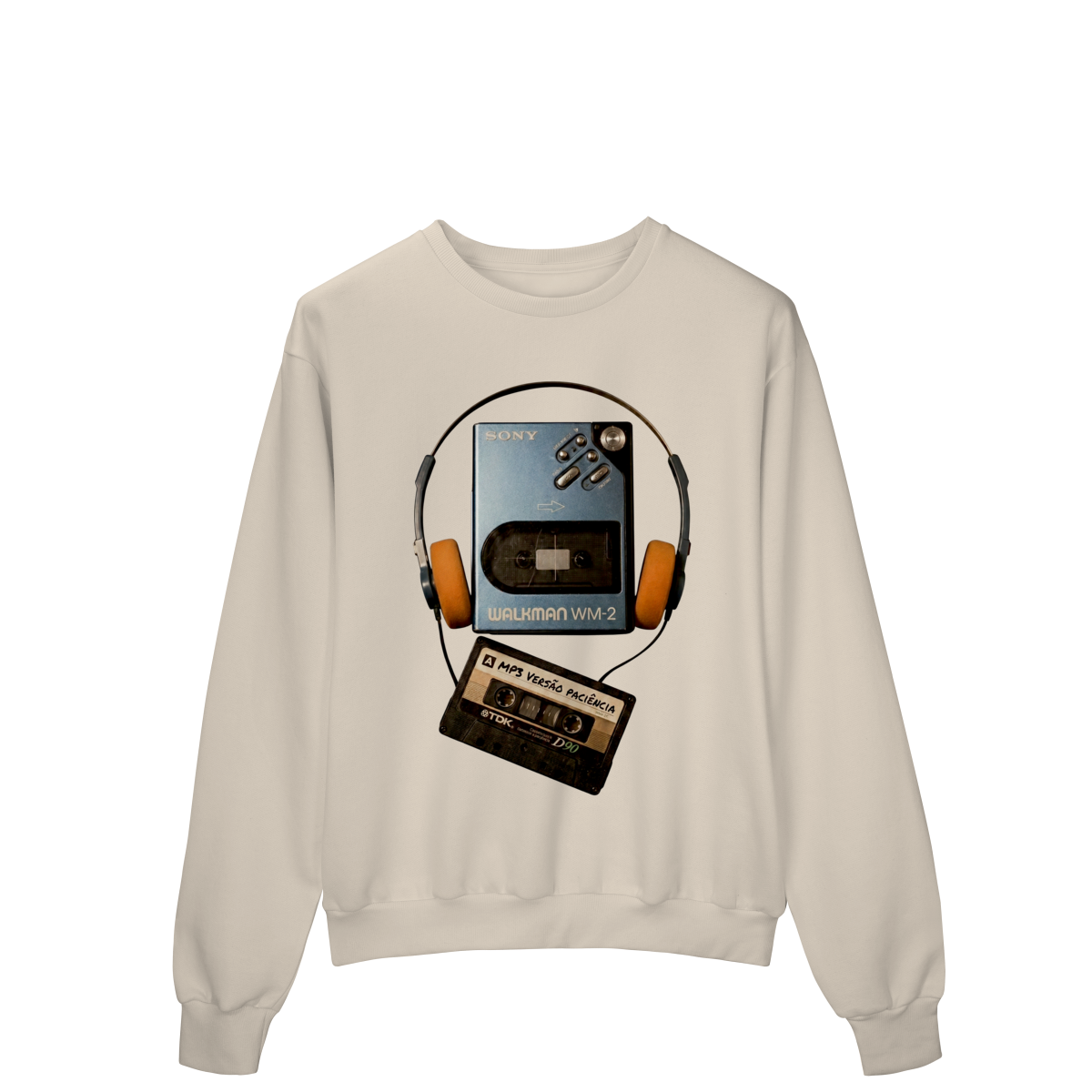“MP3 – versão paciência” é o choque entre dois mundos: a pressa digital e a força de quem sabia esperar. A fita no walkman lembra que nem tudo era instantâneo — e exatamente por isso tinha valor. Esta estampa é um manifesto silencioso contra o imediatismo e a favor da presença real. Vista resiliência. Vista Presença Offline.