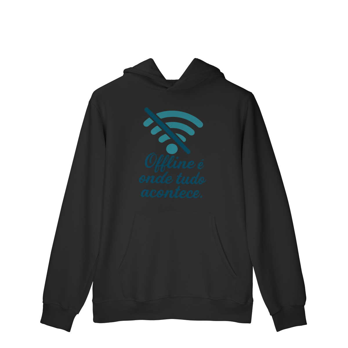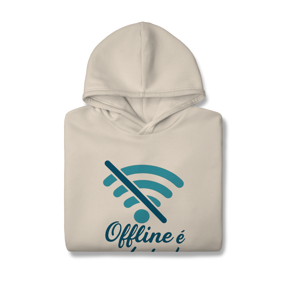 OFFLINE É ONDE TUDO ACONTECE reforça que as experiências que realmente constroem não dependem de tela, registro ou validação. Uma estampa que convida a viver com mais presença e menos mediação digital.