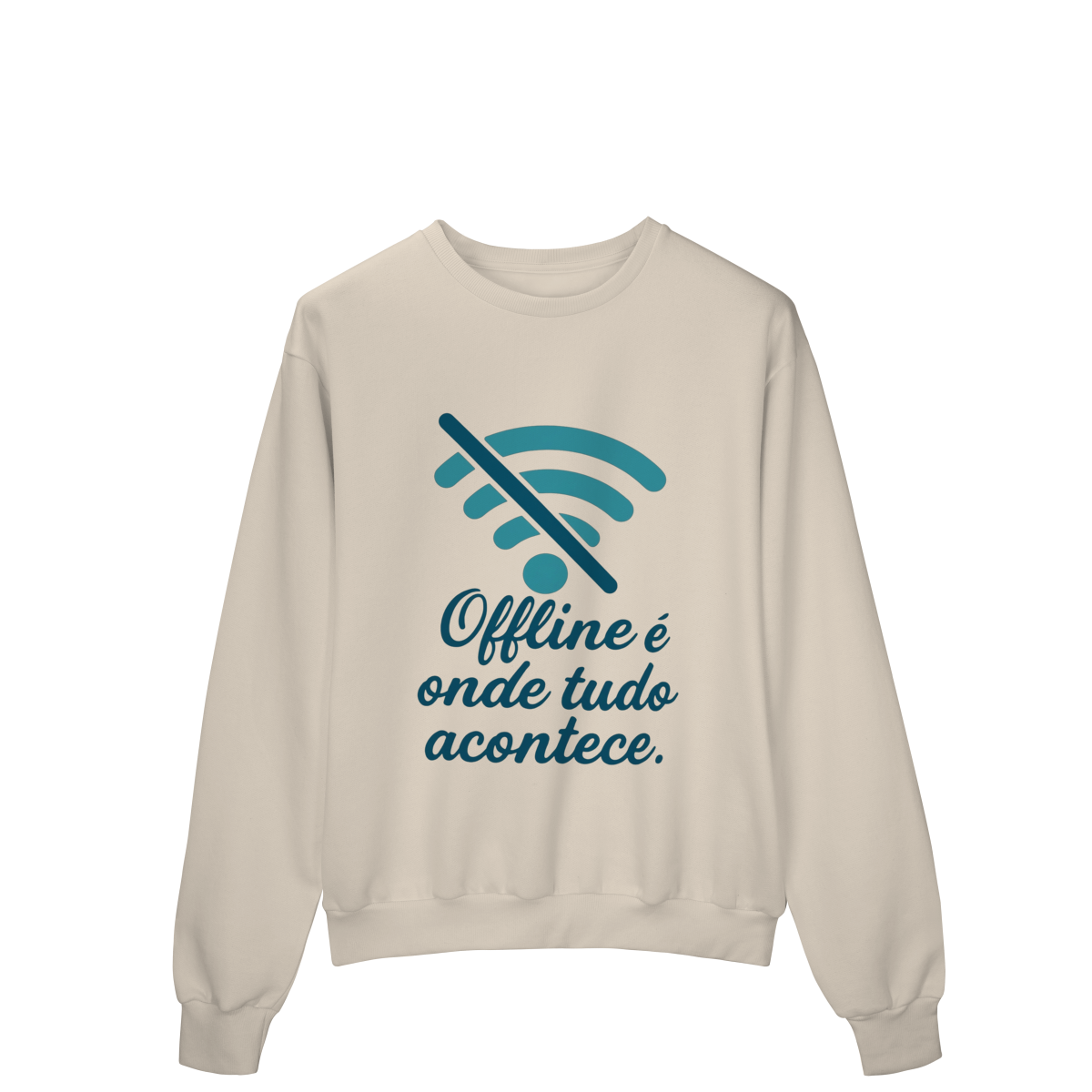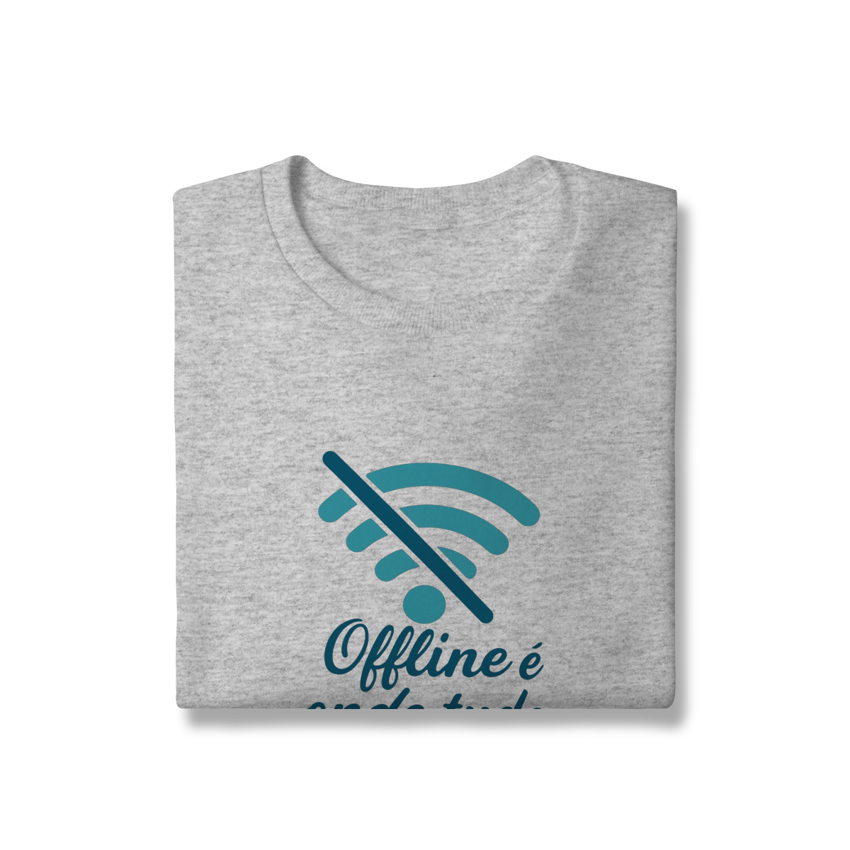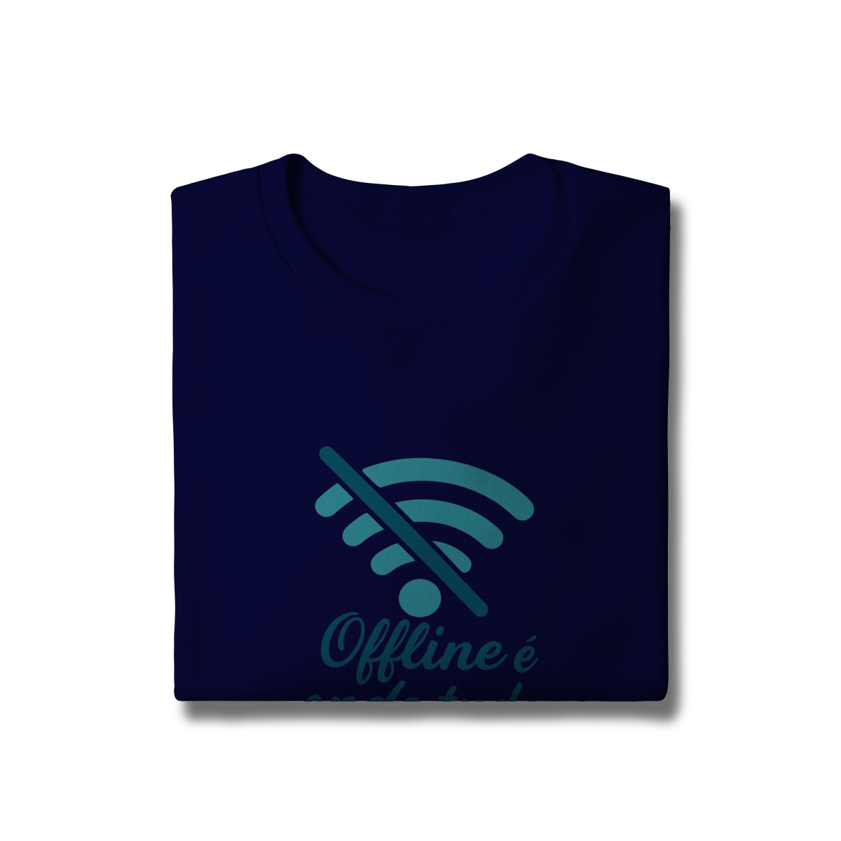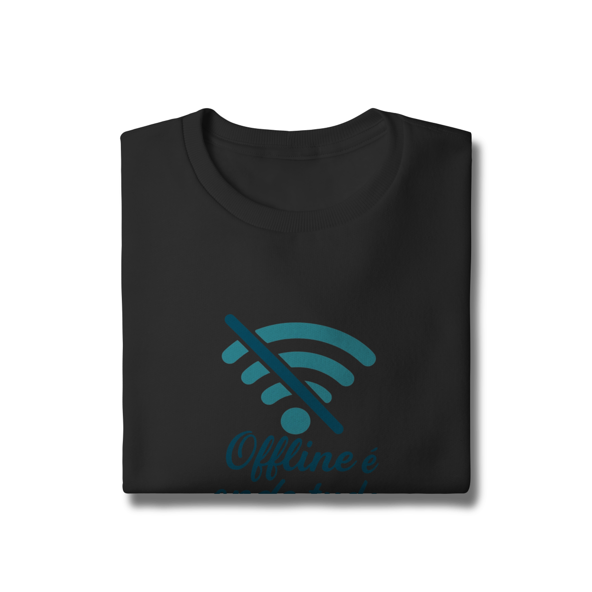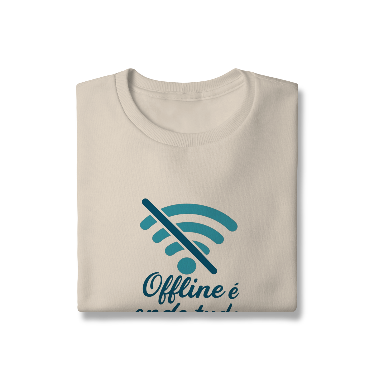 OFFLINE É ONDE TUDO ACONTECE reforça que as experiências que realmente constroem não dependem de tela, registro ou validação. Uma estampa que convida a viver com mais presença e menos mediação digital.