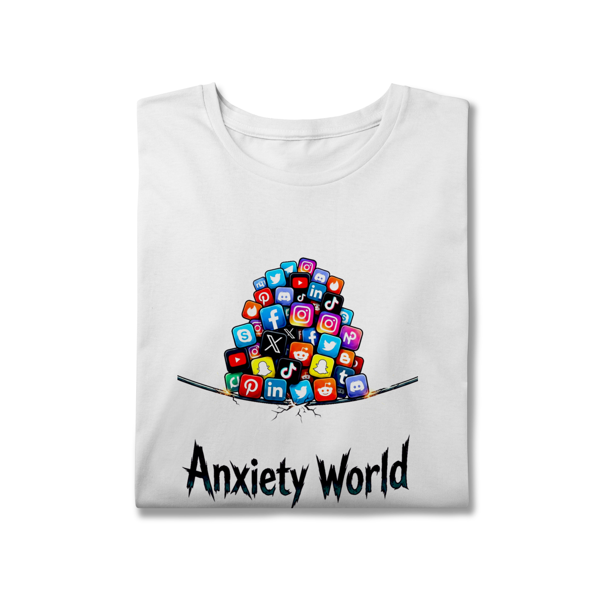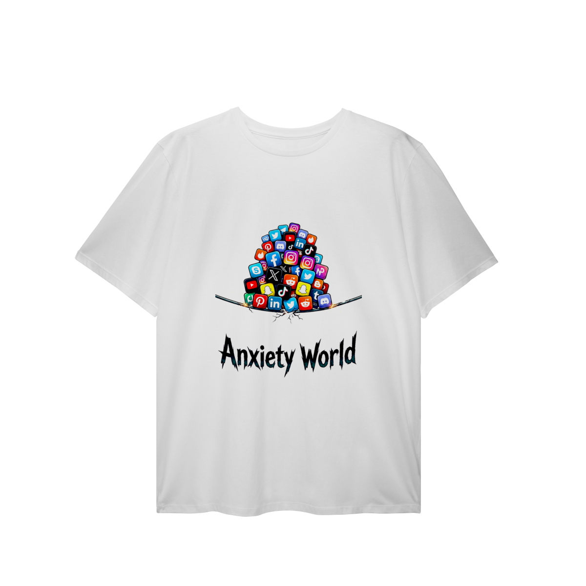 ANXIETY WORLD representa um estágio da trajetória humana marcado por sucessivas transformações sociais, tecnológicas e culturais. A estampa sugere que a ansiedade não surge do nada, mas como resposta a um ritmo de evolução que ultrapassou nossa capacidade de assimilação. Uma peça que convida à consciência de que este momento também é parte do processo — e que entender a era em que vivemos é o primeiro passo para atravessá-la.