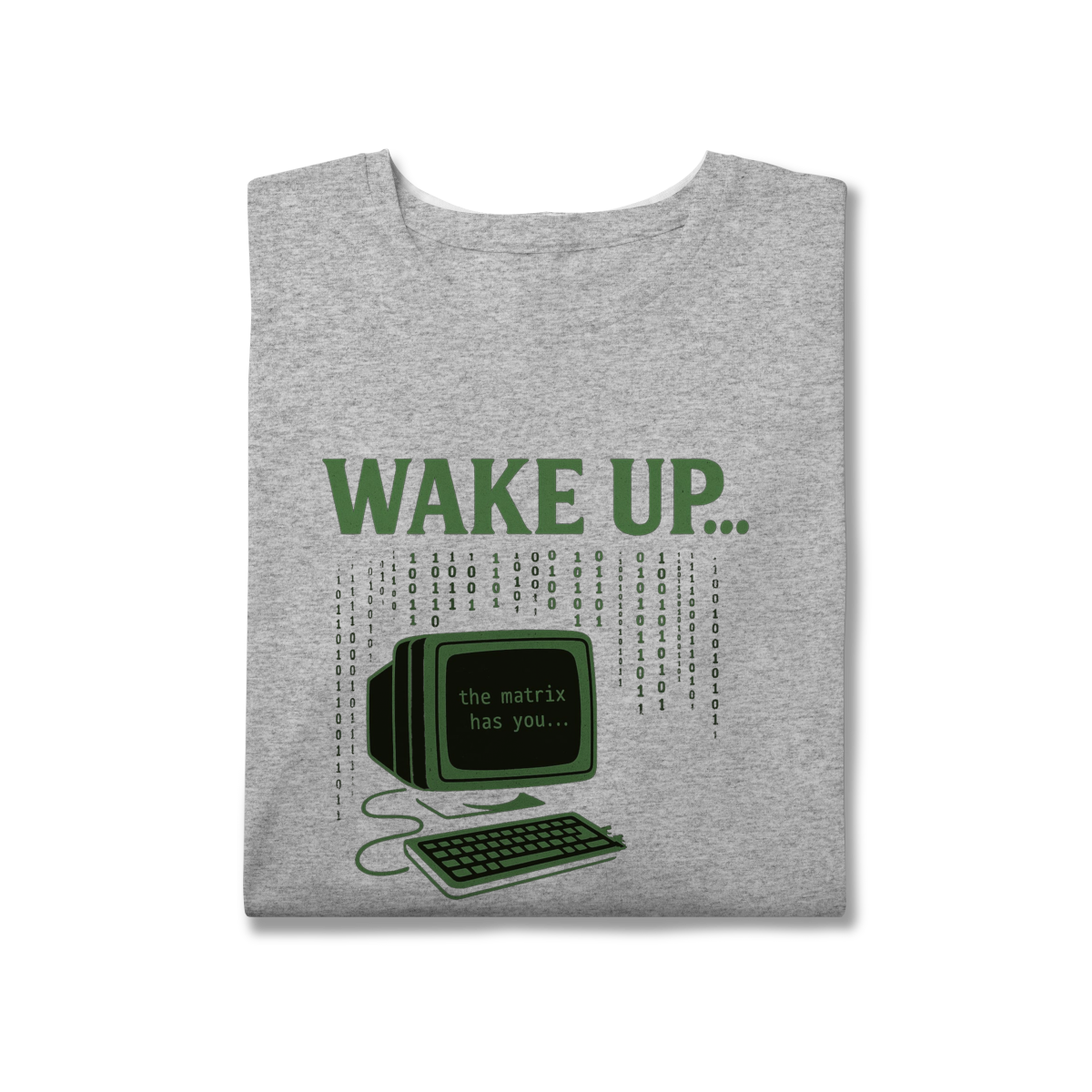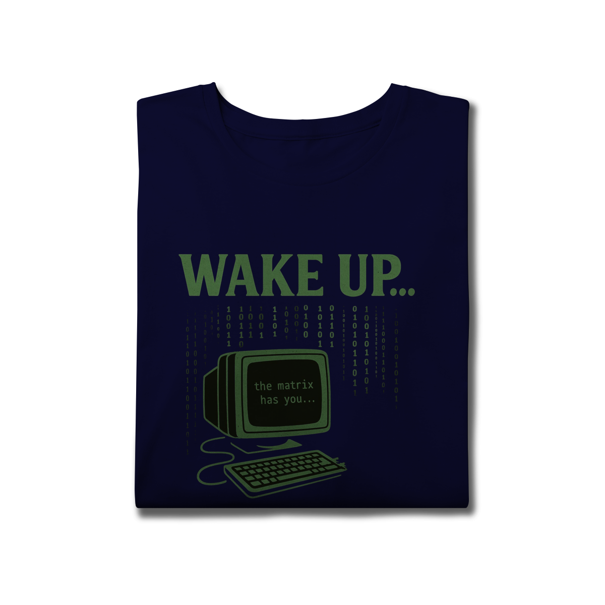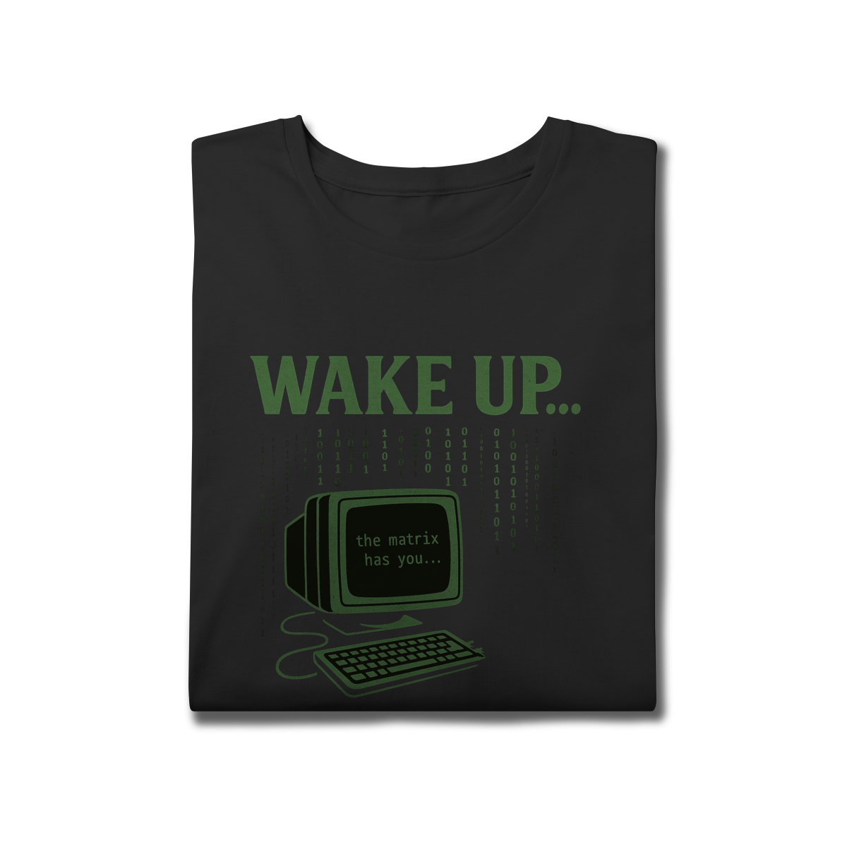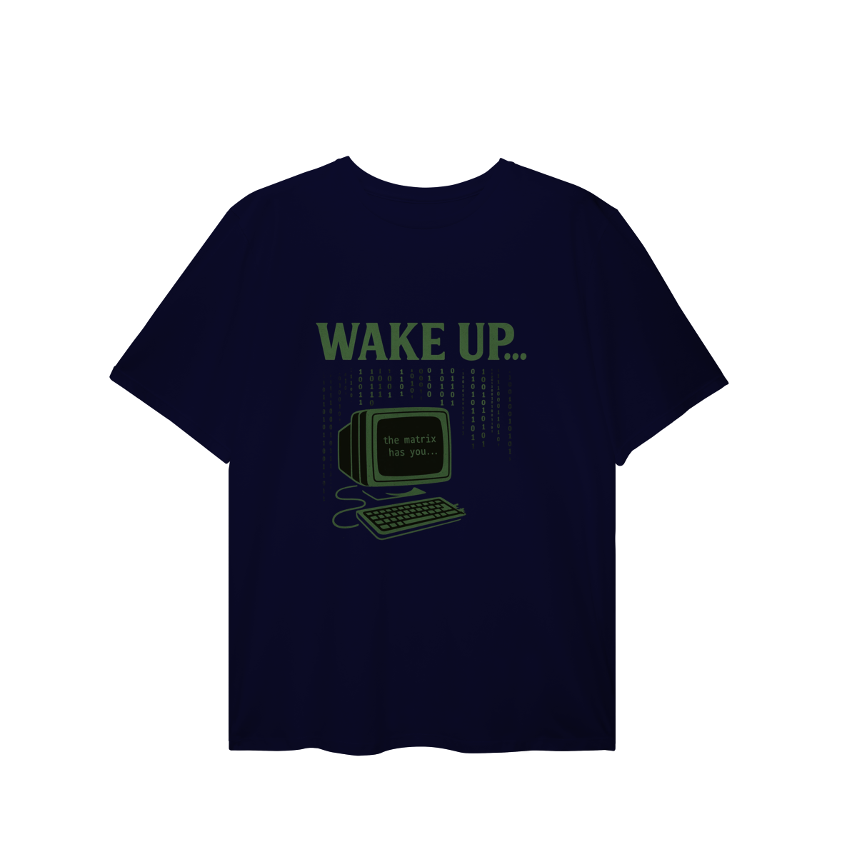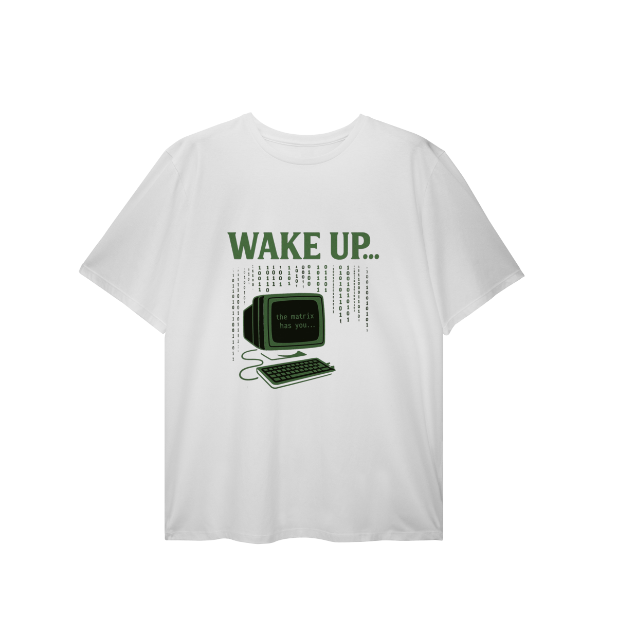 WAKE UP, THE MATRIX HAS YOU Esta estampa é inspirada no filme Matrix e no conceito de despertar da consciência. Ela convida à reflexão sobre rotinas automáticas, distrações constantes e controles invisíveis, provocando um olhar mais atento sobre presença, escolha e liberdade mental.