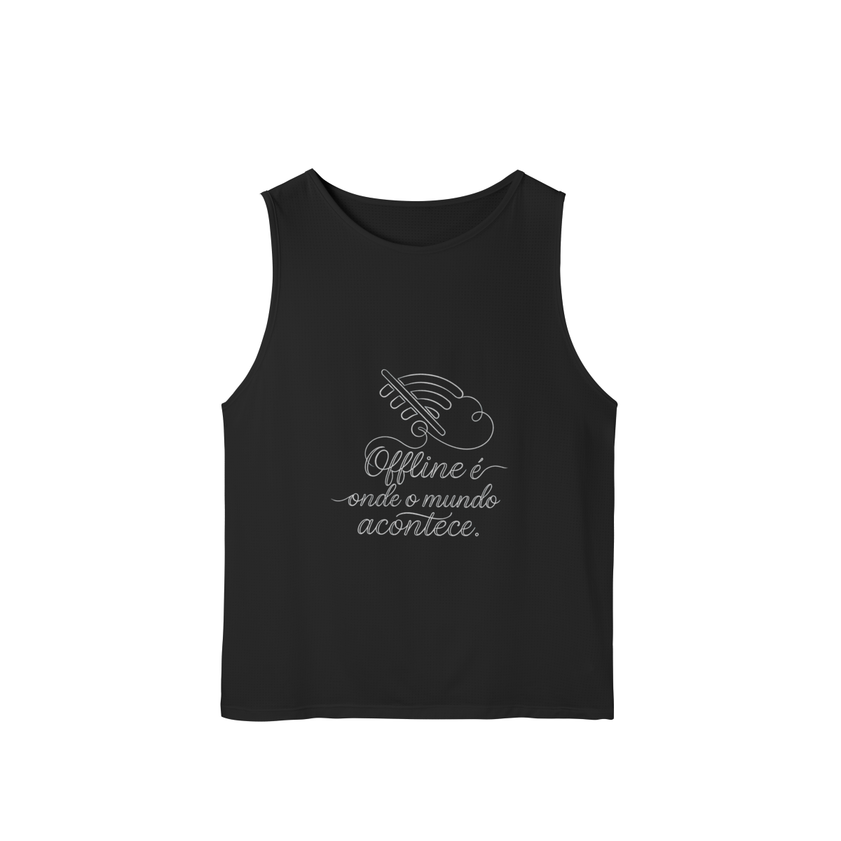OFFLINE É ONDE O MUNDO ACONTECE reforça que as experiências que realmente constroem não dependem de tela, registro ou validação. Uma estampa que convida a viver com mais presença e menos mediação digital.