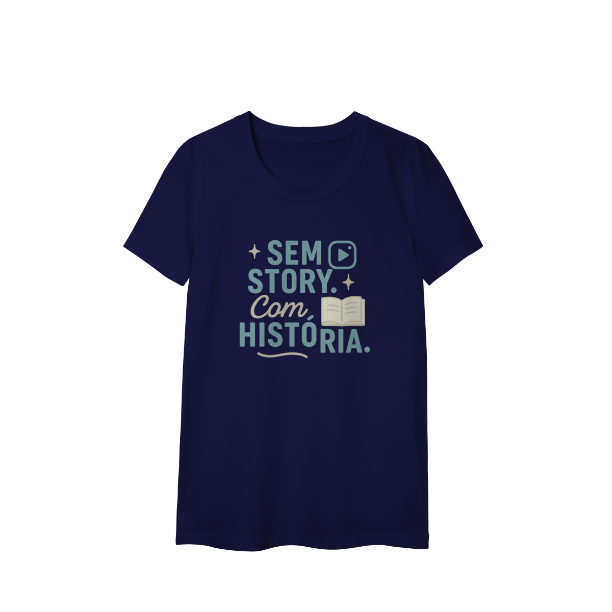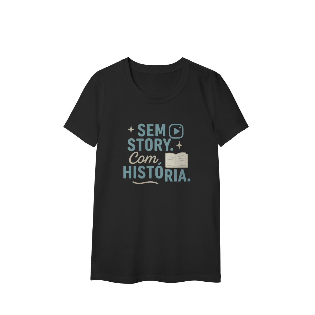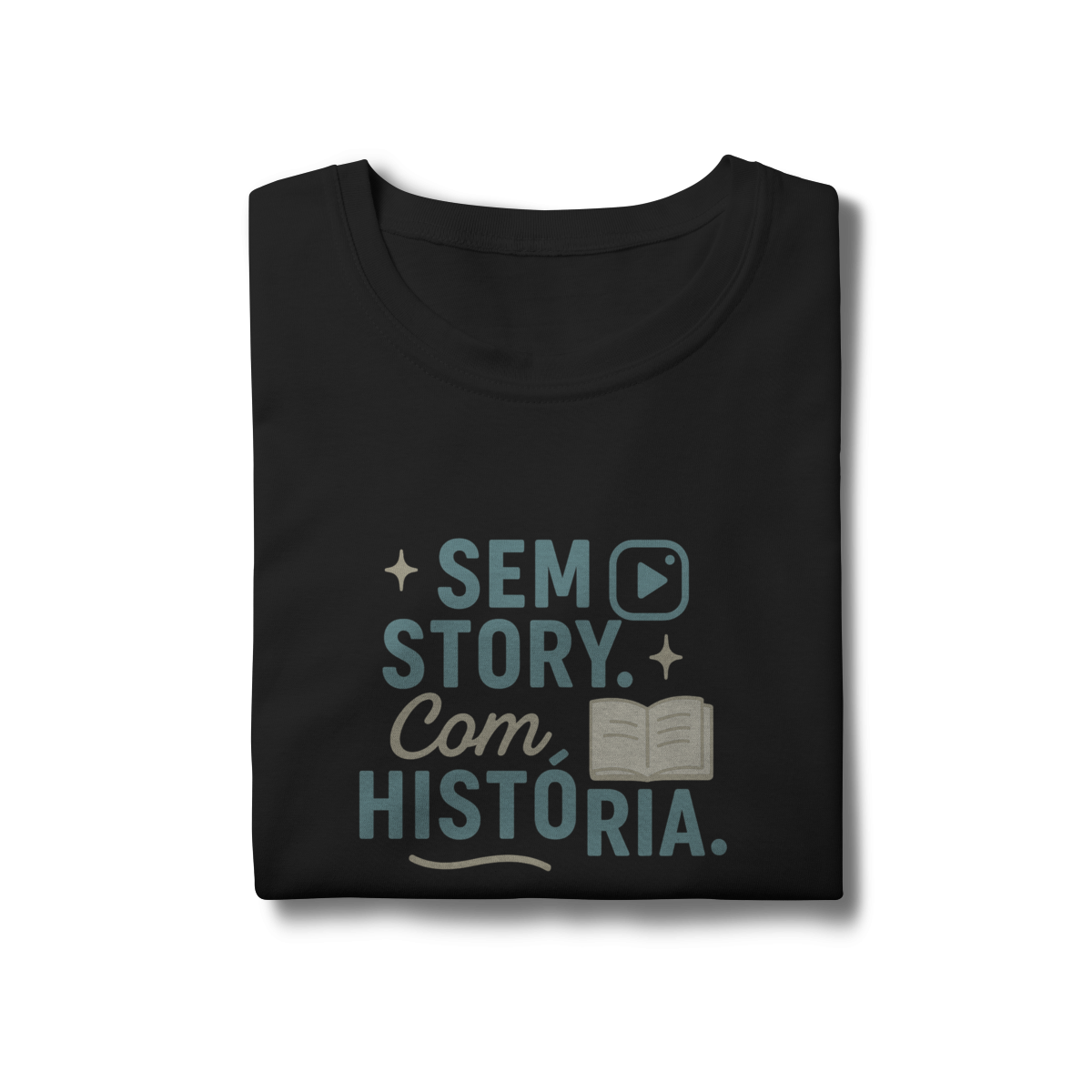 SEM STORY. COM HISTÓRIA. confronta a lógica da exposição imediata com o valor do vivido ao longo do tempo. A estampa afirma que experiências reais não precisam ser postadas para terem sentido. Uma peça que valoriza profundidade, memória e construção — não performance.