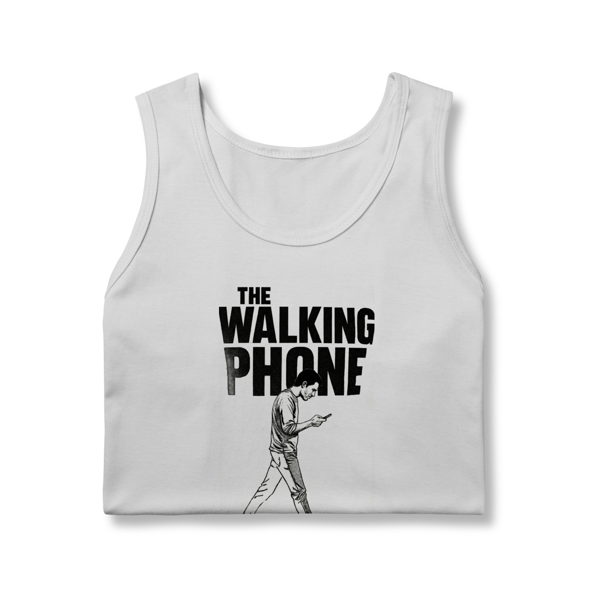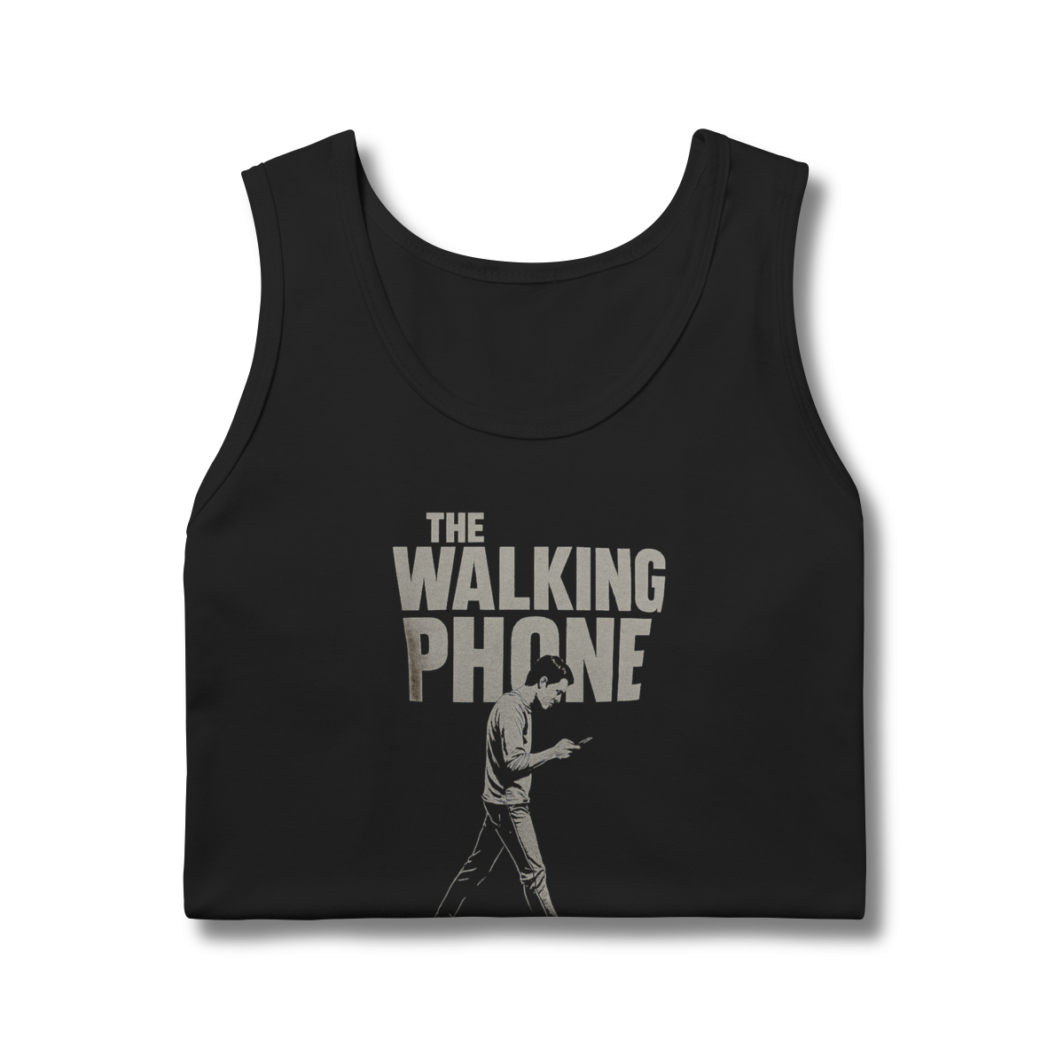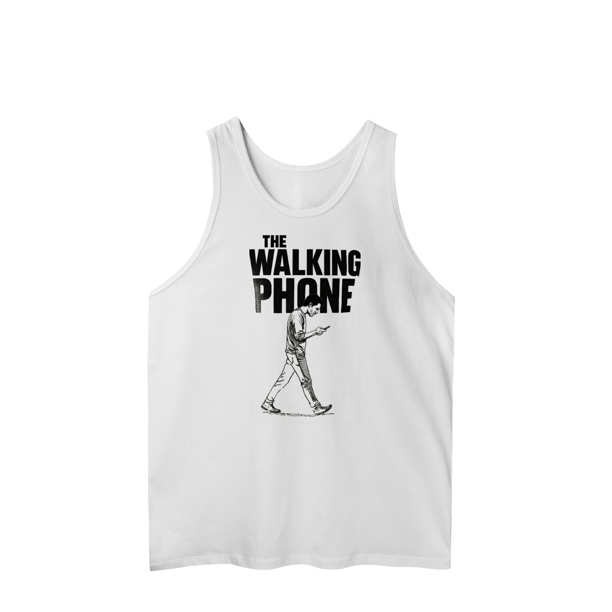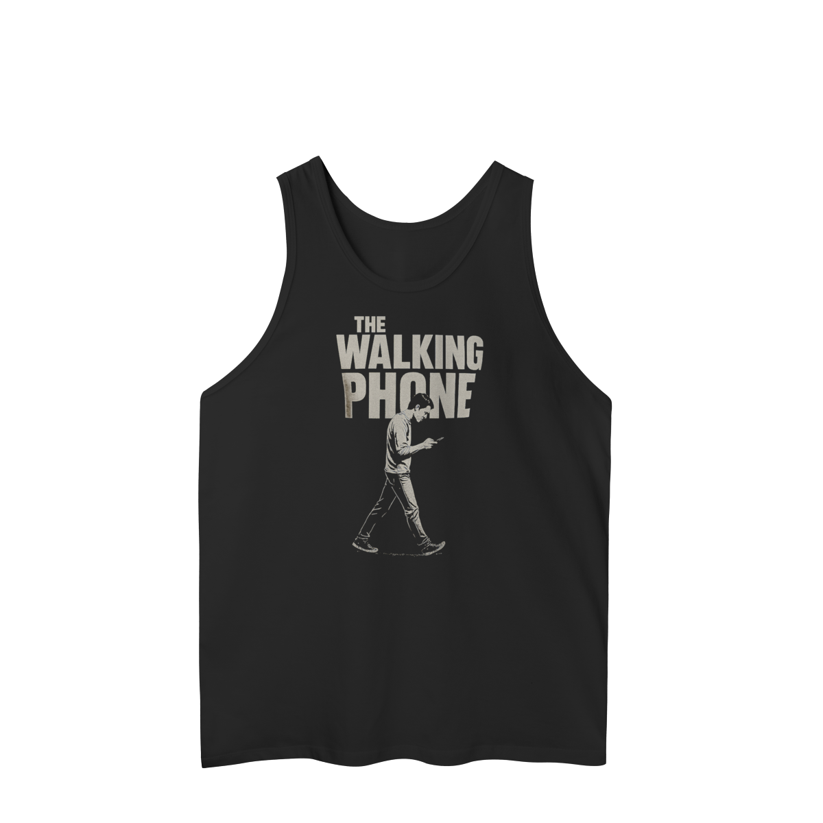 THE WALKING PHONE retrata o homem moderno andando no piloto automático, de cabeça baixa, guiado pela tela. Mais do que uma ironia visual, a estampa expõe um incômodo coletivo: uma sociedade viciada no celular. Esta peça comunica uma escolha clara — viver no real é melhor do que existir distraído.