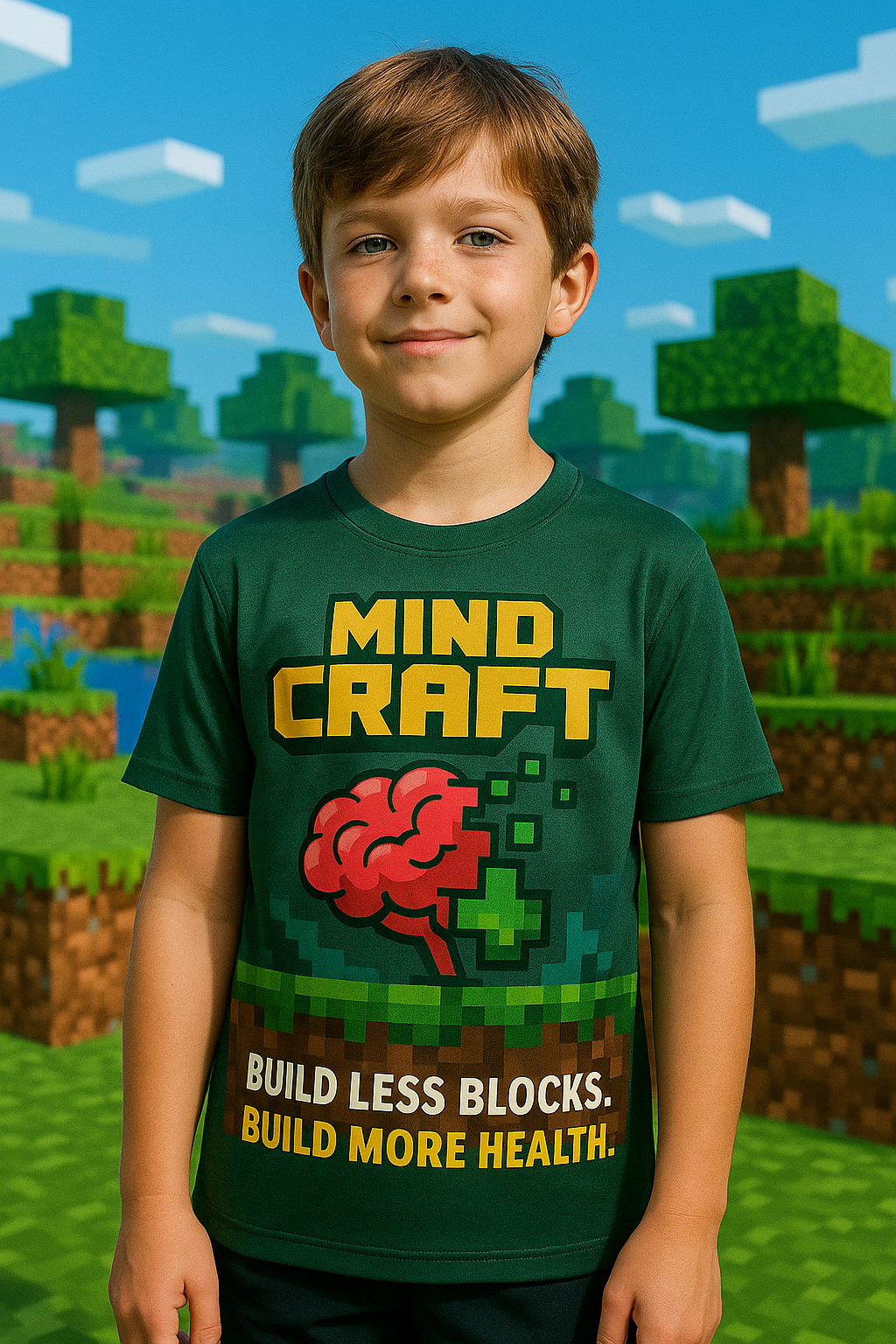 Inspirada no universo pixelado de Minecraft, esta estampa traz um cérebro formado por blocos para questionar a forma como o excesso de estímulos digitais molda (e bloqueia) nossa mente.